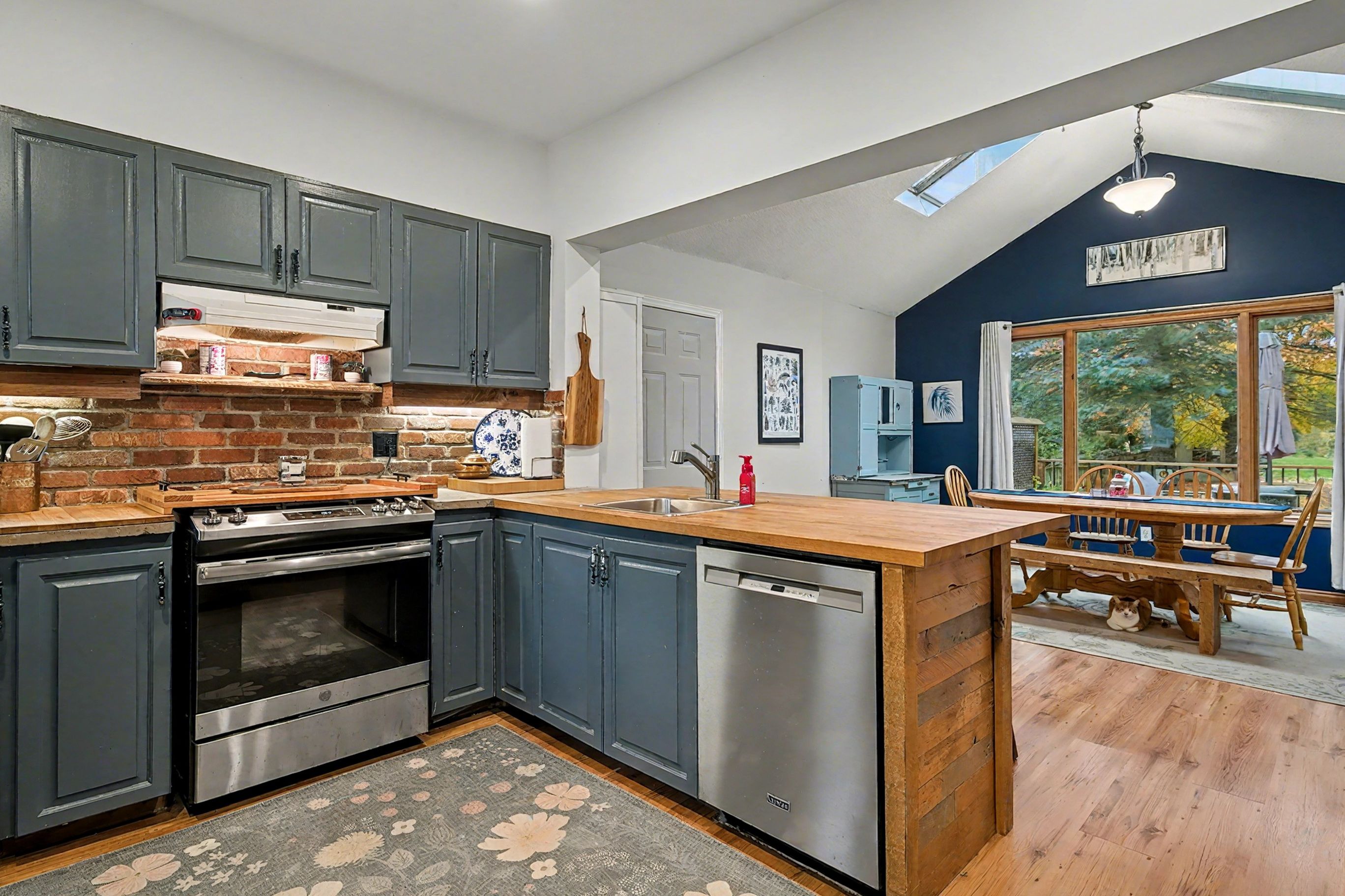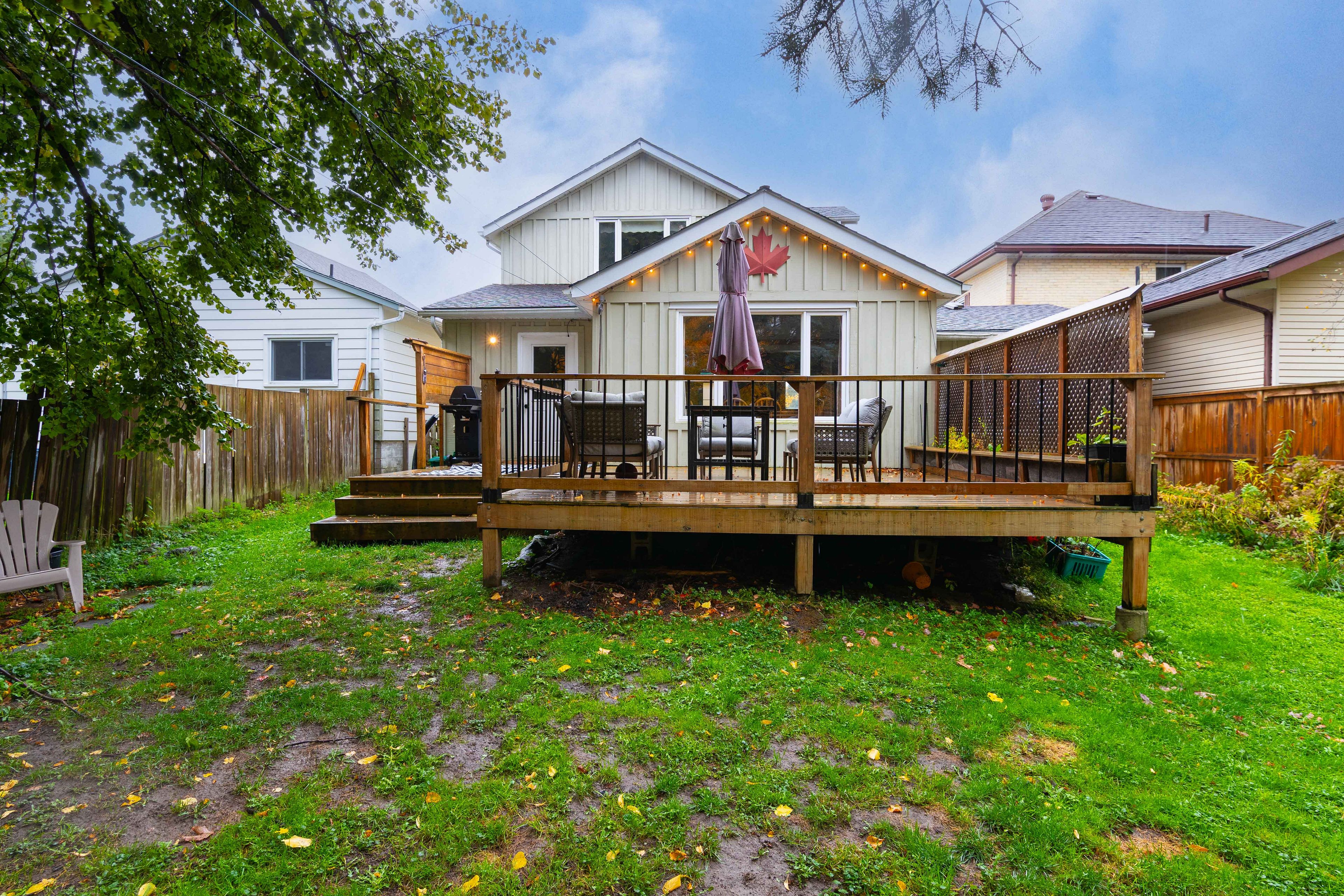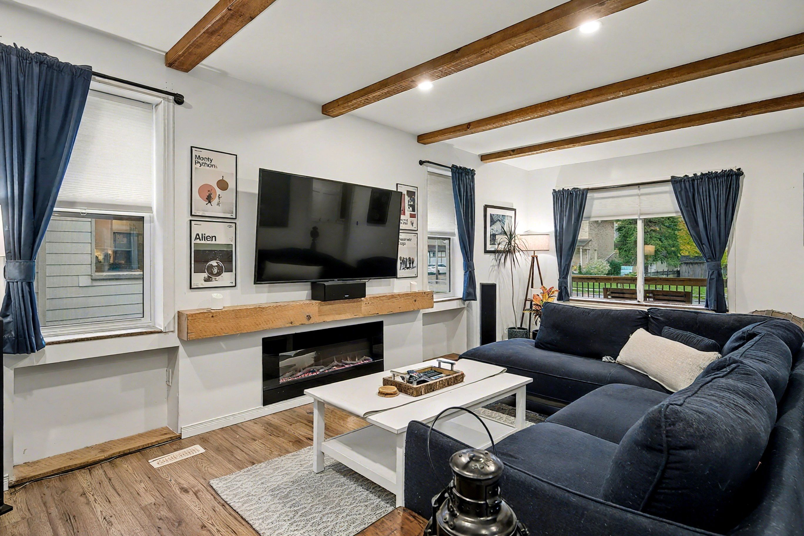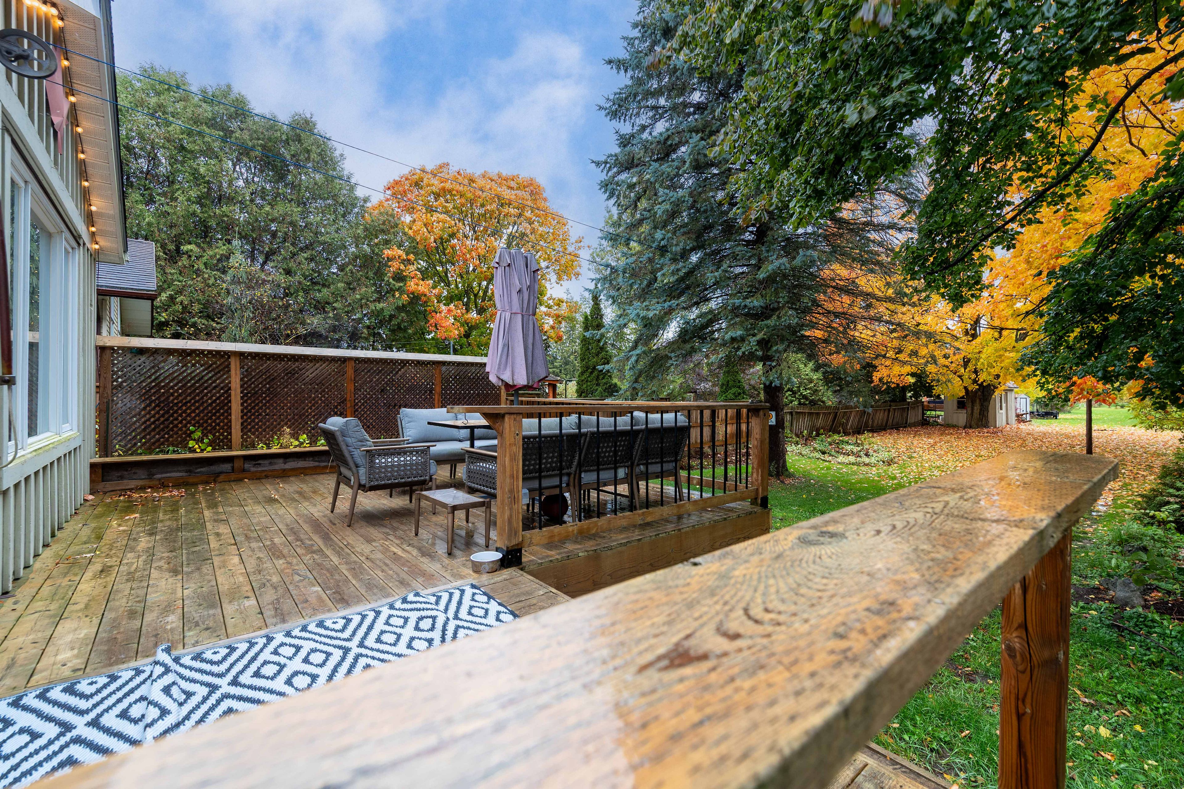 Welcome to this beautifully updated 2-bedroom plus den, 2-bathroom home located in the heart of drayton-just steps from the drayton festival theatre, drayton chop house, local schools, pharmacy, grocery store, and more. Originally built in 1895, this home has been thoughtfully renovated throughout, blending timeless charm with modern comfort. Inside, you'll find a fully refreshed main floor featuring an open-concept living room with exposed beams and an electric fireplace, creating a warm and inviting atmosphere. The kitchen combines modern and rustic touches, while the bright dining area with high ceilings and skylights fills the space with natural light. From here, enjoy views of your private backyard-and the peace of mind knowing no one can build behind, as conservation land runs along the back of the property. Just beyond, you'll find a nearby park perfect for relaxing or play. The main floor also includes a renovated mudroom with laundry, a full bathroom, and new flooring throughout, offering both style and functionality. Upstairs, there are two spacious bedrooms and a den, with the primary bedroom featuring a walk-in closet and a connected den-ideal for a home office or nursery. Notable updates include a complete renovation of the main floor living room, updated bathrooms and kitchen, new flooring and carpet throughout, a rebuilt porch, new garage door, paved driveway, and updated 200-amp electrical service/panel. Mechanical updates include a furnace and hot water tank (2017), offering added peace of mind. With its combination of thoughtful updates, character details, and unbeatable location, this home is truly move-in ready and full of charm. Book your showing today and discover the perfect mix of history, style, and small-town living in drayton!