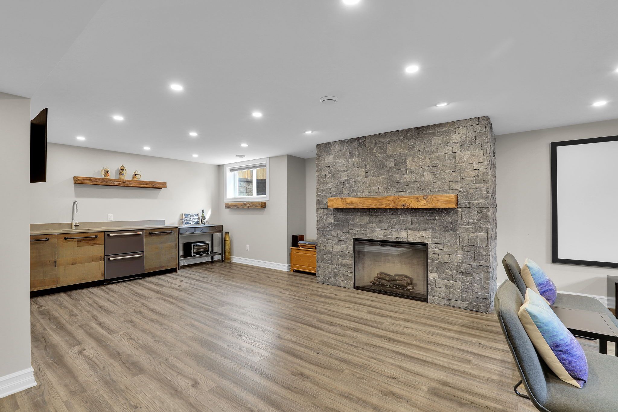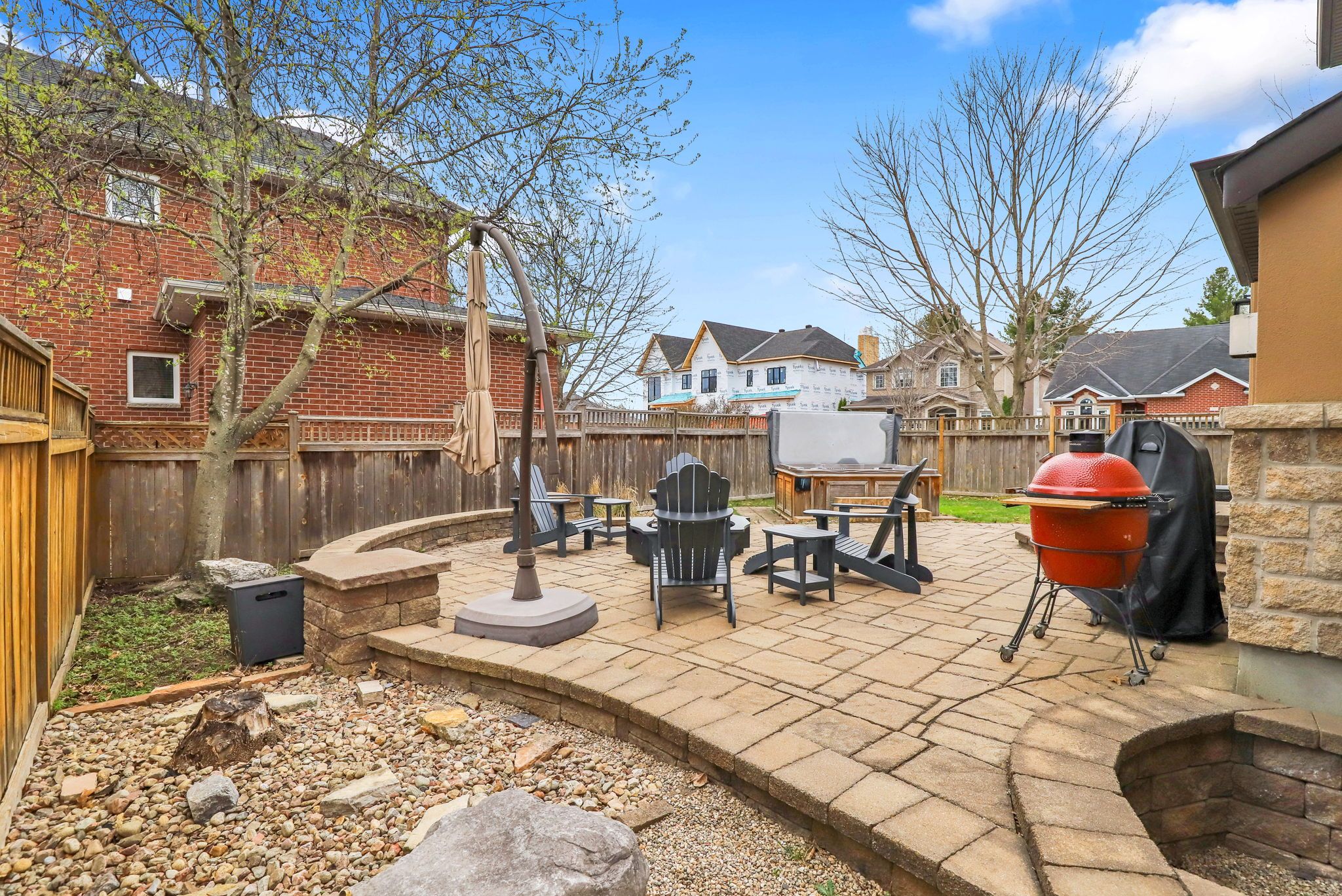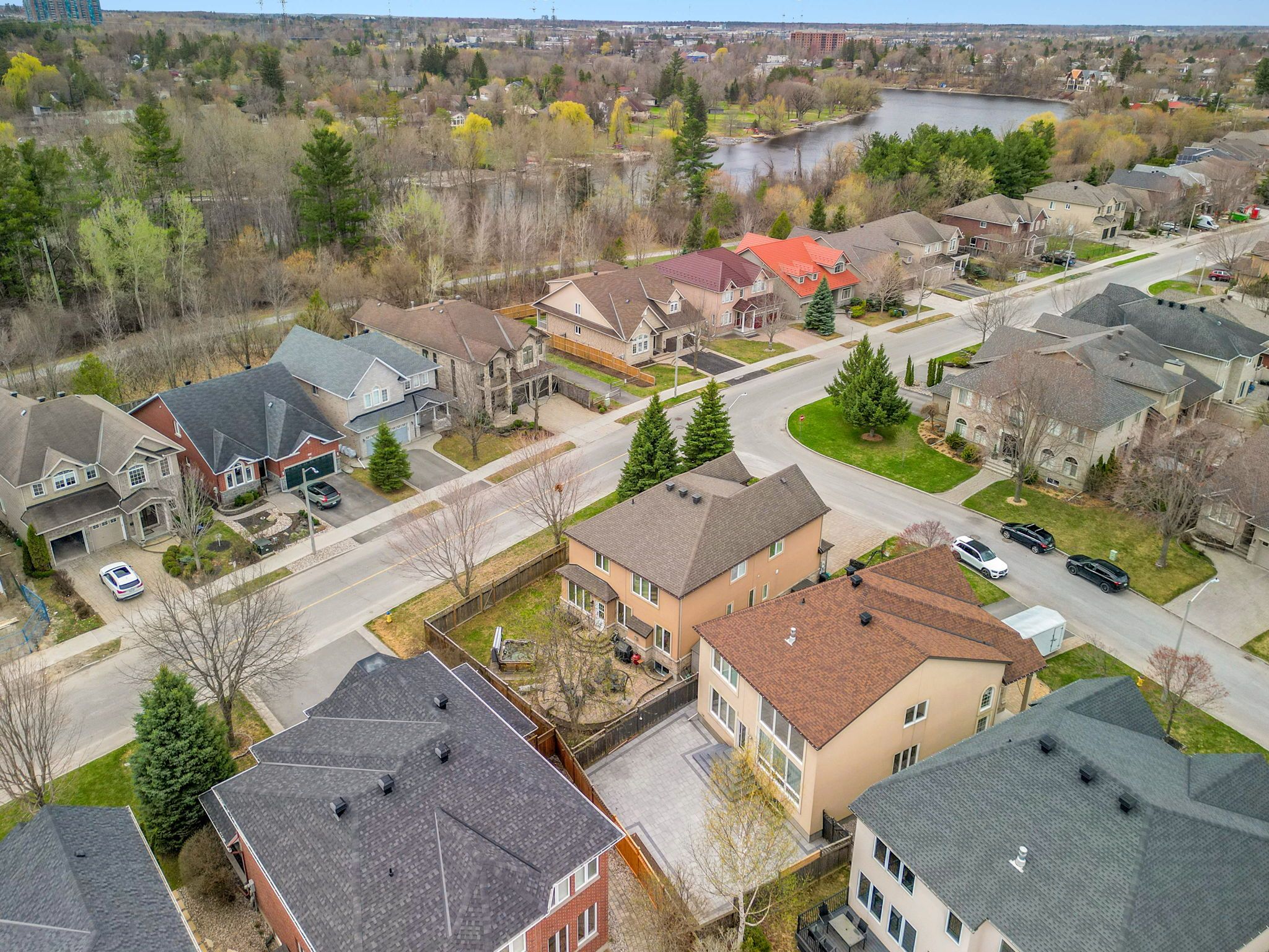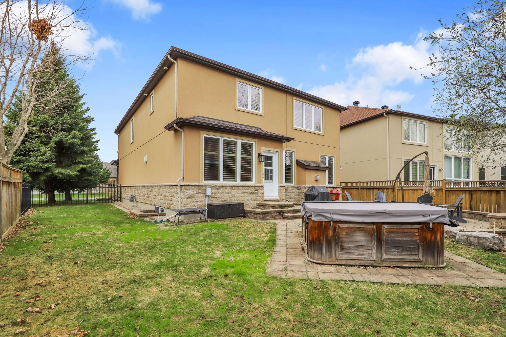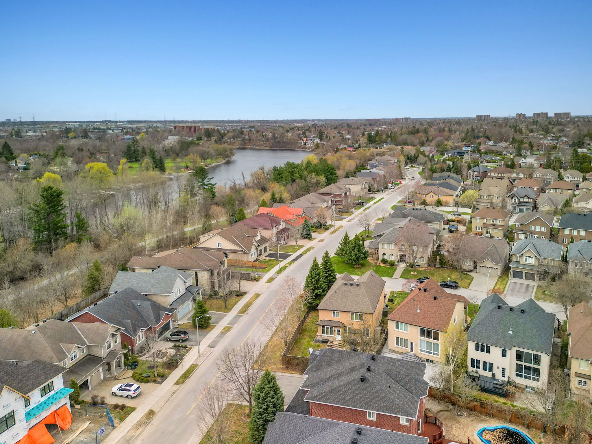 Moffat farm offers the best of all worlds-parks, riverfront access, scenic walking paths, and effortless connectivity across ottawa. Set on an oversized lot along a quiet, family-friendly street, this former cardel model home blends space, natural light, and timeless design with a true lifestyle focus. The versatile main floor is thoughtfully designed for modern living, featuring a formal living room ideal as a home office, a dining space with coffered ceilings (currently styled as a den), and a warm, open family room anchored by a gas fireplace. The spacious kitchen is both functional and inviting-offering ample prep space for everyday living or entertaining-paired with a bright breakfast area overlooking the backyard. California shutters throughout add a refined, cohesive finish. A striking custom circular staircase leads to the upper level, where an impressive front-facing bonus room adds flexibility, alongside four well-proportioned bedrooms. The primary suite is a private retreat, complete with a five-piece ensuite and walk-in closet, while a second full bath with double sinks and convenient second-floor laundry complete the level. The professionally finished lower level is a true extension of the home-flooded with natural light, elegant fireplace and designed for entertaining or extended living. A stylish wet bar featuring kitchenaid café fridge drawers anchors the space, ideal for hosting, movie nights, or relaxed evenings. The lower level also offers a dedicated bedroom area and a full three-piece bath with heated floors, creating a comfortable and functional space for guests. Thoughtful exterior upgrades further enhance everyday living and include fully fenced yard, interlock stone front and back has lawn irrigation system. A rare opportunity to enjoy space, comfort, and lifestyle in one of ottawa's most desirable communities.