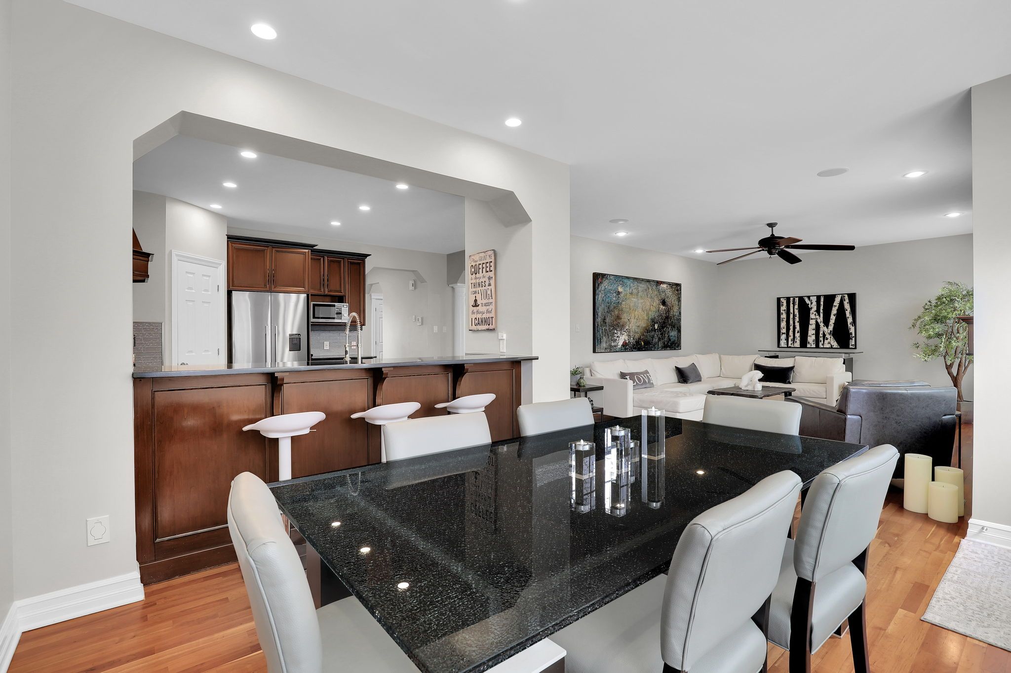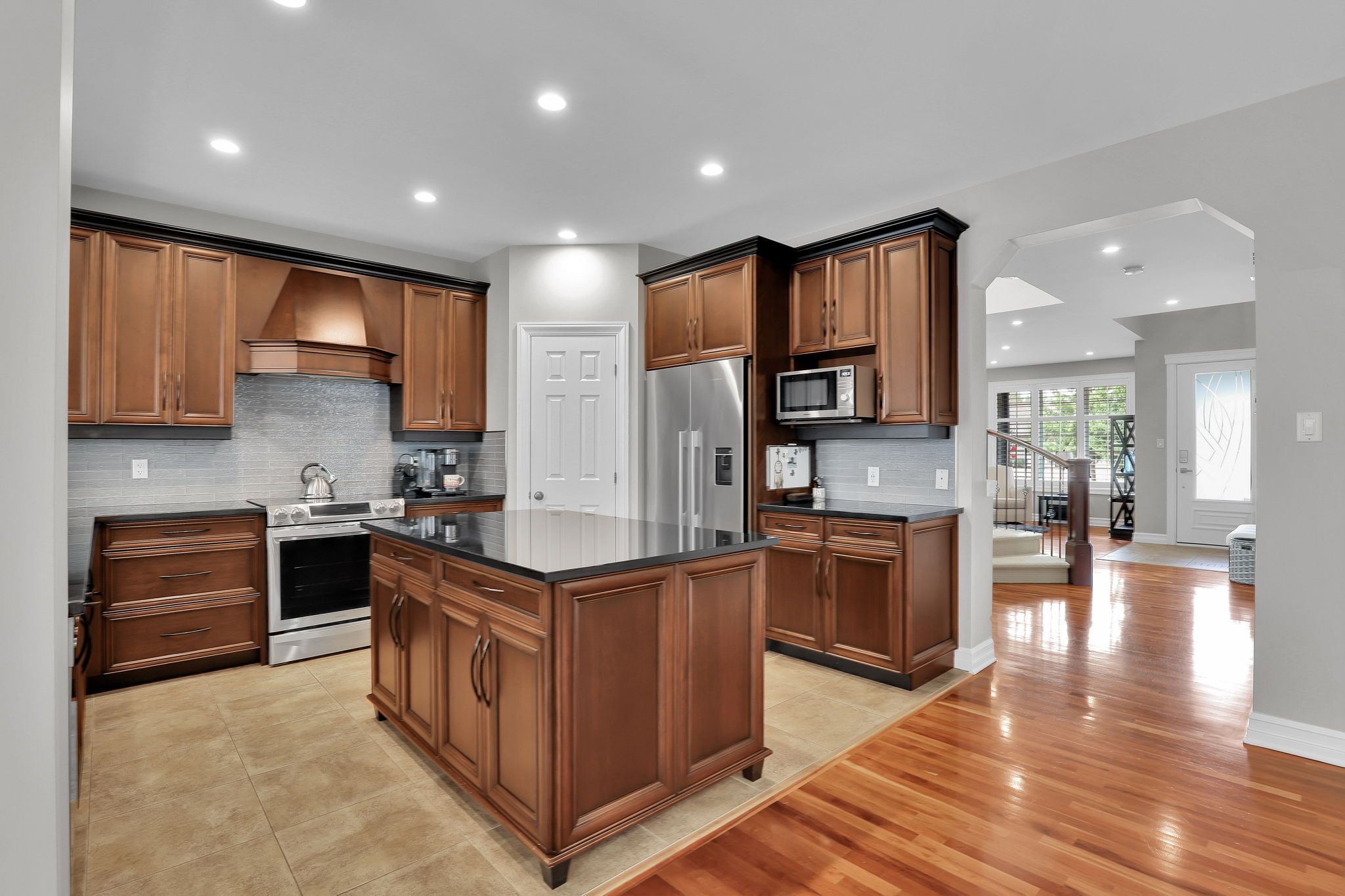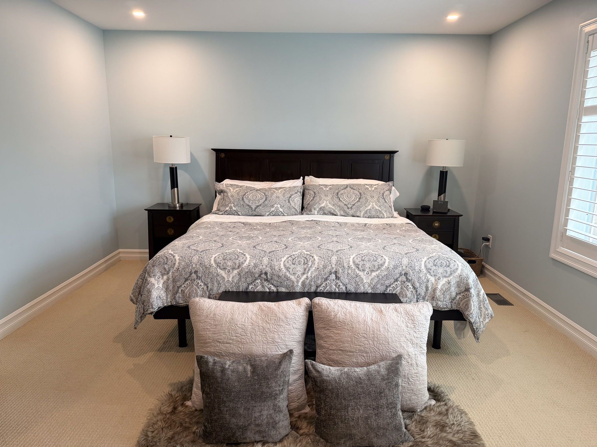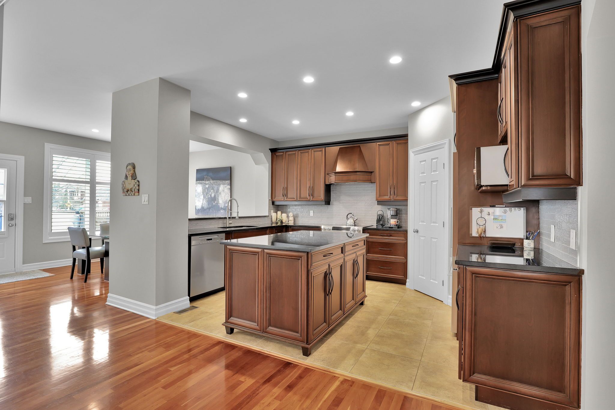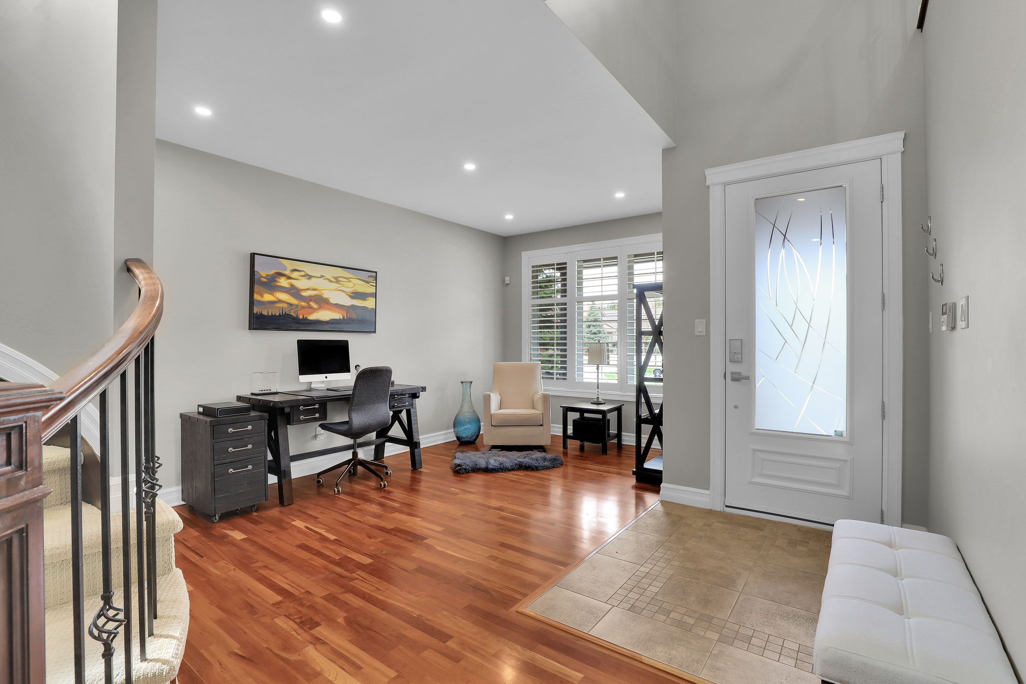 Moffat farm offers the best of all worlds-parks, riverfront access, scenic walking paths, and effortless connectivity across ottawa. Set on an oversized lot along a quiet, family-friendly street, this former cardel model home blends space, natural light, and timeless design with a true lifestyle focus. The versatile main floor is thoughtfully designed for modern living, featuring a formal living room ideal as a home office, a dining space with coffered ceilings (currently styled as a den), and a warm, open family room anchored by a gas fireplace. The spacious kitchen is both functional and inviting-offering ample prep space for everyday living or entertaining-paired with a bright breakfast area overlooking the backyard. California shutters throughout add a refined, cohesive finish. A striking custom circular staircase leads to the upper level, where an impressive front-facing bonus room adds flexibility, alongside four well-proportioned bedrooms. The primary suite is a private retreat, complete with a five-piece ensuite and walk-in closet, while a second full bath with double sinks and convenient second-floor laundry complete the level. The professionally finished lower level is a true extension of the home-flooded with natural light, elegant fireplace and designed for entertaining or extended living. A stylish wet bar featuring kitchenaid café fridge drawers anchors the space, ideal for hosting, movie nights, or relaxed evenings. The lower level also offers a dedicated bedroom area and a full three-piece bath with heated floors, creating a comfortable and functional space for guests. Thoughtful exterior upgrades further enhance everyday living and include fully fenced yard, interlock stone front and back has lawn irrigation system. A rare opportunity to enjoy space, comfort, and lifestyle in one of ottawa's most desirable communities.