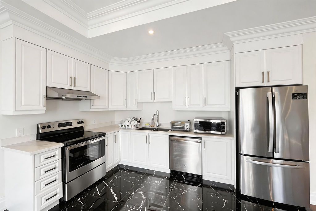 Stunning & modern upper-level suite - move-in ready! Experience contemporary living in this beautifully finished 3-bedroom, 2-bathroom upper unit. The bright, open-concept floor plan features a spacious living area and a modern kitchen equipped with premium stainless steel appliances (fridge, stove, dishwasher). Enjoy three generously sized bedrooms with ample natural light. Unbeatable location: steps to humber river hospital, top-rated schools, recreation centres, and minutes to hwy 401/400. Includes one dedicated parking space and convenient full-size, shared coin-operated laundry. Shared main entrance. Tenant responsible for 1/3 of total utilities.