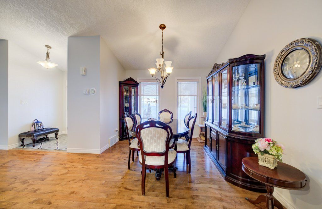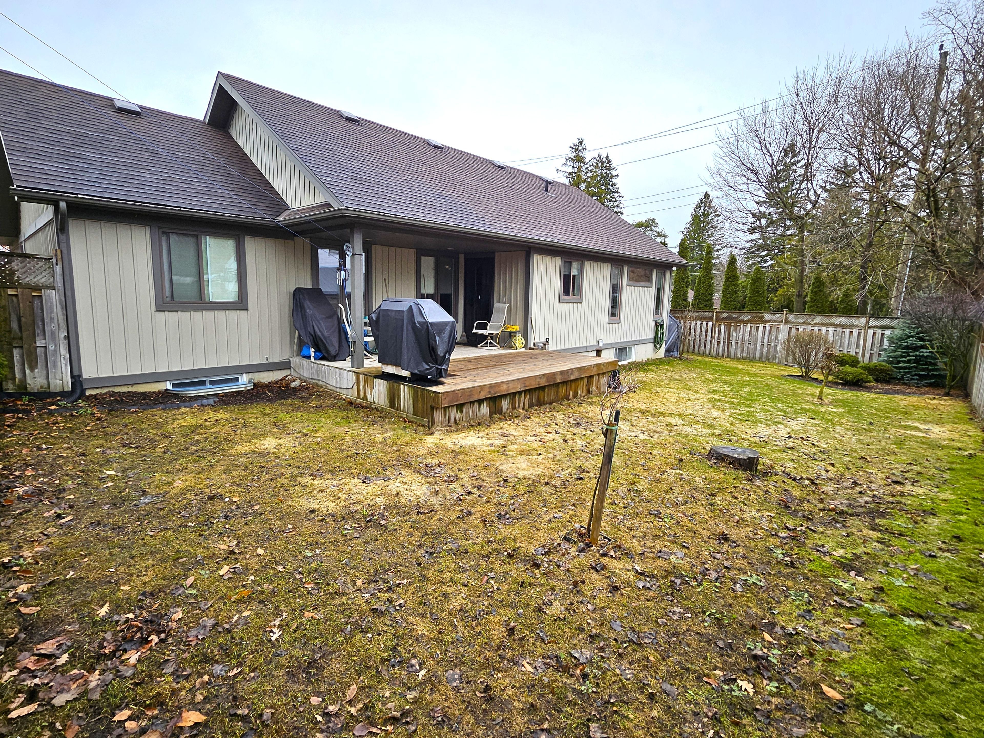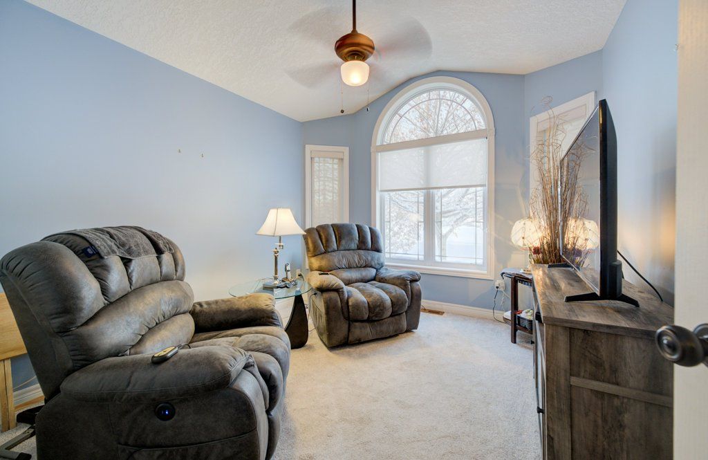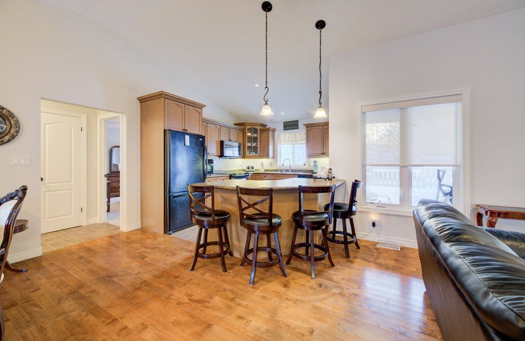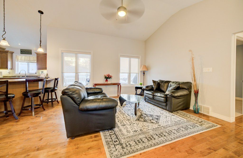 Great curb appeal welcomes you home to this beautifully maintained bungalow, designed for easy living and effortless entertaining. Step inside and you're greeted by soaring vaulted ceilings, warm maple hardwood floors, and a bright, open feel that instantly puts you at ease. The maple kitchen is the heart of the home - perfect for morning coffee, weeknight dinners, or hosting friends - with direct access to the back deck so summer bbqs and outdoor gatherings flow naturally. Main floor laundry adds everyday convenience, while three comfortable bedrooms and 2 full bathrooms, including a private ensuite, provide space and privacy for the whole family. The ensuite is built for unwinding with a large soaker tub. Downstairs, the finished basement becomes your go-to retreat. Imagine cozy movie nights or game days around the gas fireplace, with the added bonus of a two-piece bath for convenience. Step outside to a fully fenced, landscaped yard ready for kids, pets, and relaxing evenings under the stars. Located directly across from the public school, mornings are simpler, afternoon pickups are a breeze, and the playground is just steps away. The paved driveway even offers room for your 5th wheel trailer, making weekend adventures easy to plan. With central air, central vac, and every detail already taken care of, you can simply move in and start enjoying the lifestyle this home offers.