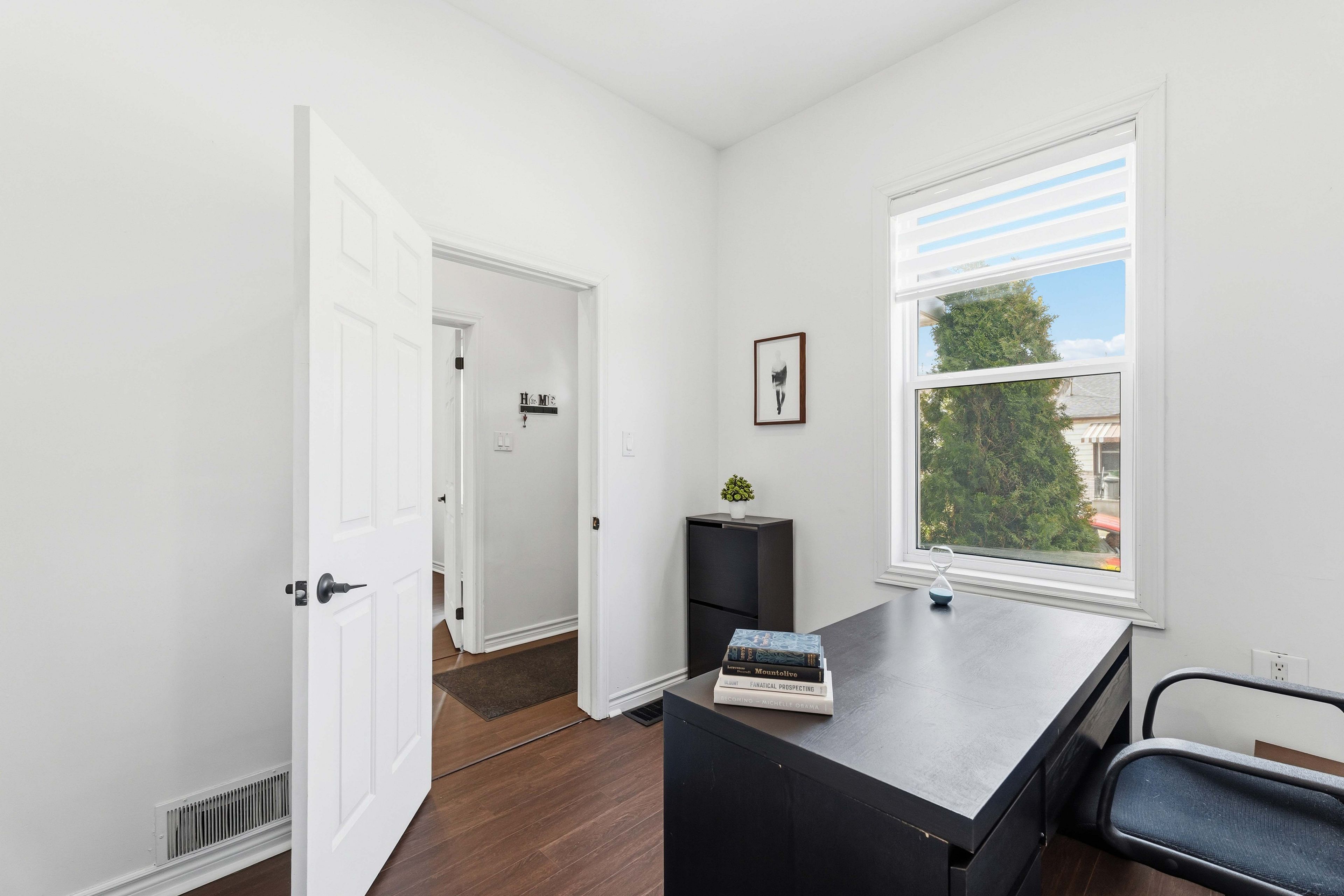 Welcome to this beautifully renovated home offering incredible value in today's market! Featuring numerous updates completed in 2025, including new windows, entry door, garage door, garage entry door, and stylish new flooring. Enjoy soaring ceilings of over 9 feet, creating a bright and spacious feel, along with a cozy electric fireplace perfect for relaxing evenings. Features a main level primary bedroom, perfect for anyone who wants to avoid stairs. Step outside to a private backyard complete with a charming pergola-ideal for entertaining or unwinding. With great curb appeal and located on a quiet, family-friendly street, this property offers both comfort and convenience. An amazing opportunity for first-time home buyers, as well as new or seasoned investors. Offered at an attractive price point for today's mortgage qualification environment, this is the perfect starter home with strong potential. Conveniently located close to transit, amenities, and hamilton general hospital. Potential for a driveway at the front of the house.