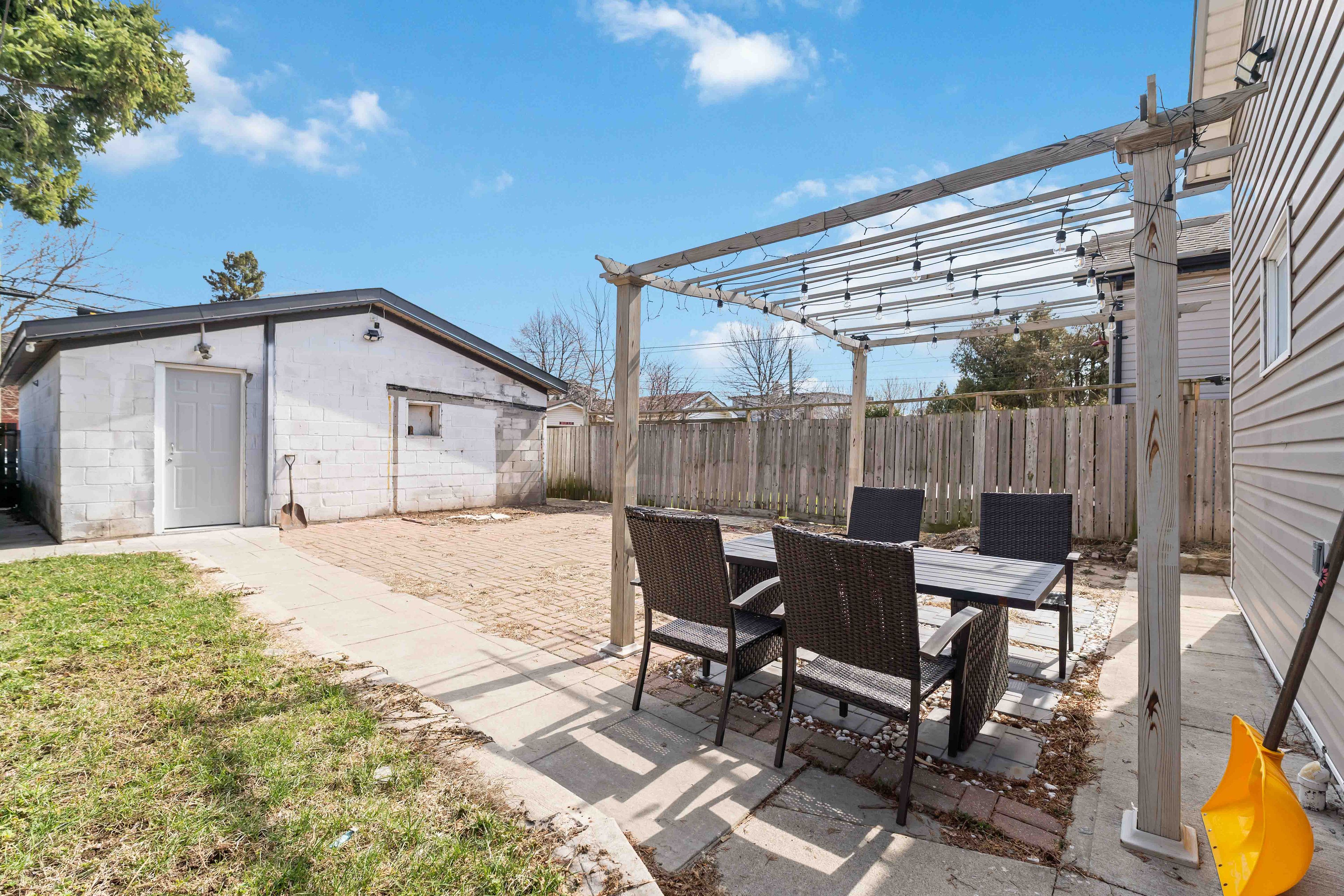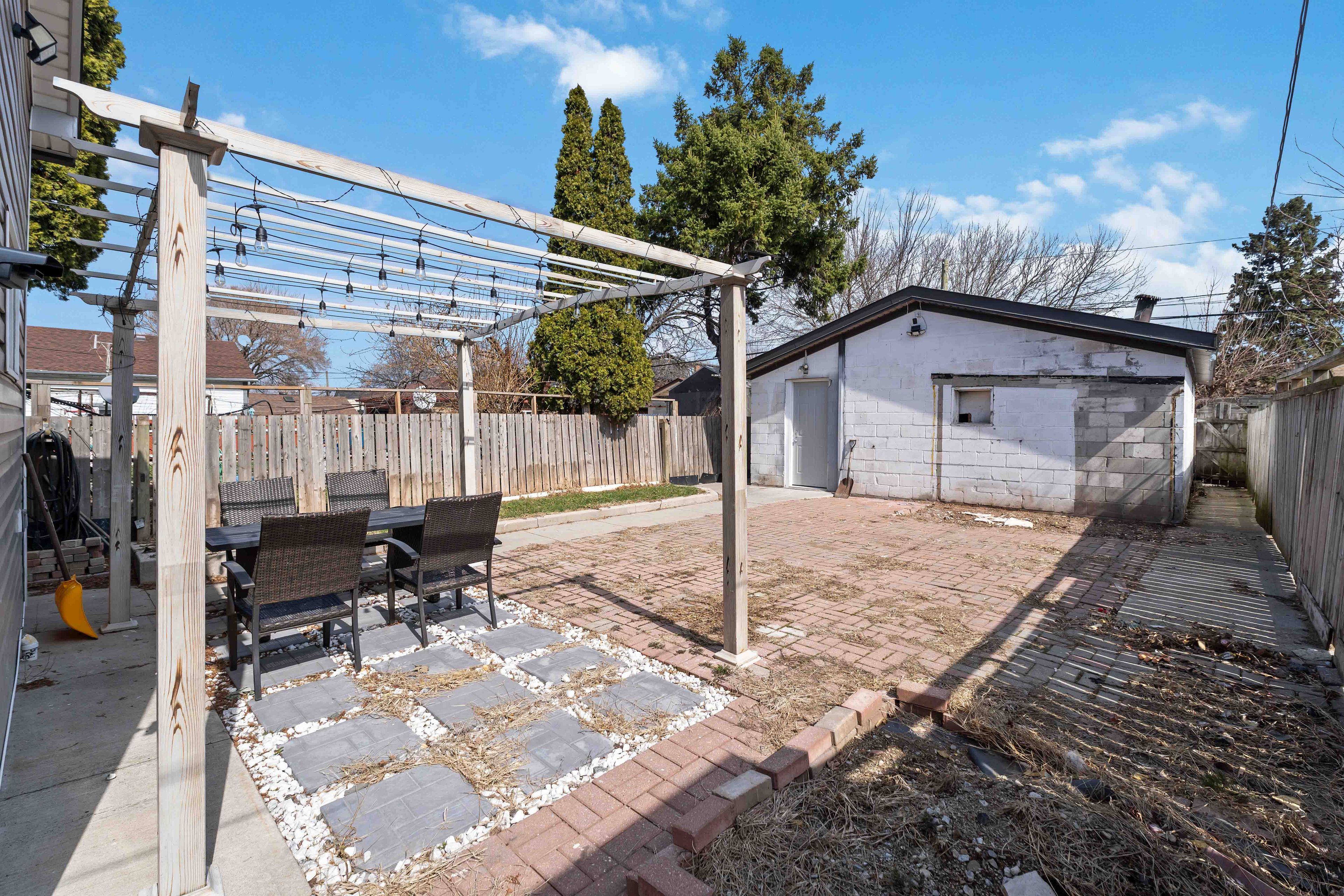 • Private backyard with a charming pergola for entertaining or relaxing.