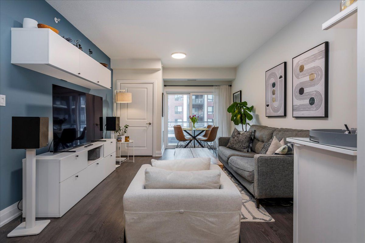 • Spacious living room with a walkout to a private balcony.