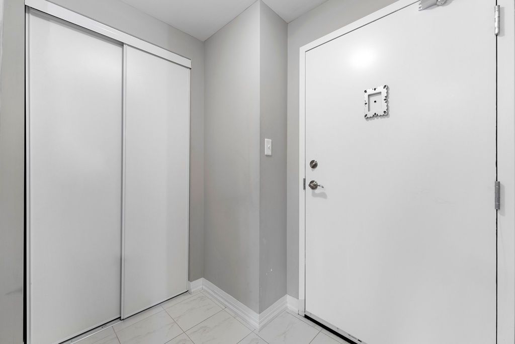 Welcome to the top-floor 2 bed & 1 bath condo in the art-inspired gallery condominiums, set on14 acres of forested grounds with walking trails. This 880 sqft open-concept suite features stainless steel appliances, updated backsplash, pot lights throughout, in-suite laundry (2021),underground parking, and a storage locker. The primary bedroom offers his and hers closets with a large window w/plenty of natural light. Additional spacious 2nd bedroom and updated 4-piecebath. Enjoy a covered balcony with bbqs permitted, community rooftop terrace (building 302),ample visitor parking, onsite superintendent, security system, elevator, and landscape gardens. Conveniently located close to hwy 400, go train, shopping, restaurants, and all amenities.