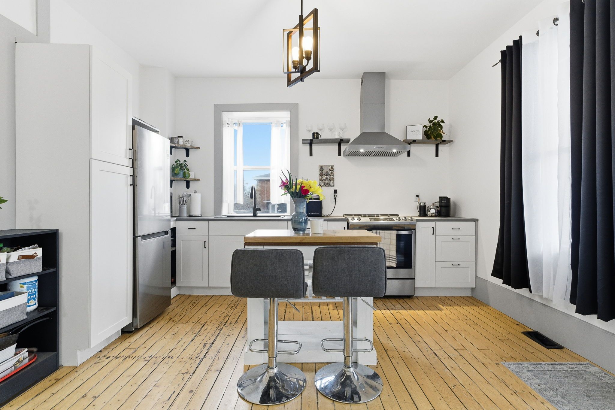 Welcome to 300 george st in cobourg, an updated all-brick legal duplex built in 1910 and thoughtfully designed to blend historic character with modern functionality. Set in the heart of the downtown core, this property is just steps from the beach and marina, the train station, schools, and cobourg's vibrant restaurants and shops, offering a truly walkable lifestyle. The home features 2 self-contained interior units that are separately metered and have separate heating, making it an excellent investment opportunity or an ideal option to live in one unit while renting the other. Both units offer in-suite laundry centres for added convenience and showcase a stylish mix of exposed brick, stainless steel appliances, and tiled 3-piece bathrooms that complement the home's original charm. Walk-outs from each unit lead to their own decks, providing an easy extension of the living space outdoors. The upper unit spans approximately 1,400 sq ft across the 2nd and 3rd floors and offers 2 bedrooms and 1. 5 baths, with an open concept living and dining area and a kitchen finished with quartz countertops. The 3rd floor, measuring over 600 sq ft, is dedicated to the primary suite and features a half bath with a skylight, along with a large walk-in closet with its own skylight, plus ample space for a home office or quiet retreat. The bright main floor unit is approximately 800 sq ft with 1 bedroom and 1 bathroom, showcasing original hardwood flooring and direct access to a full, unfinished basement that provides excellent storage. Offering flexibility, location, and lasting value, 300 george st is a rare opportunity to own a versatile property in the centre of downtown cobourg. *note: units are separately metered for hydro - main floor unit heated by gas forced air & upper unit is heated by electric baseboard + both units are currently owner occupied, so vacant possession will be ensured on closing, providing the new owner the opportunity to set their own rental rates and terms.*