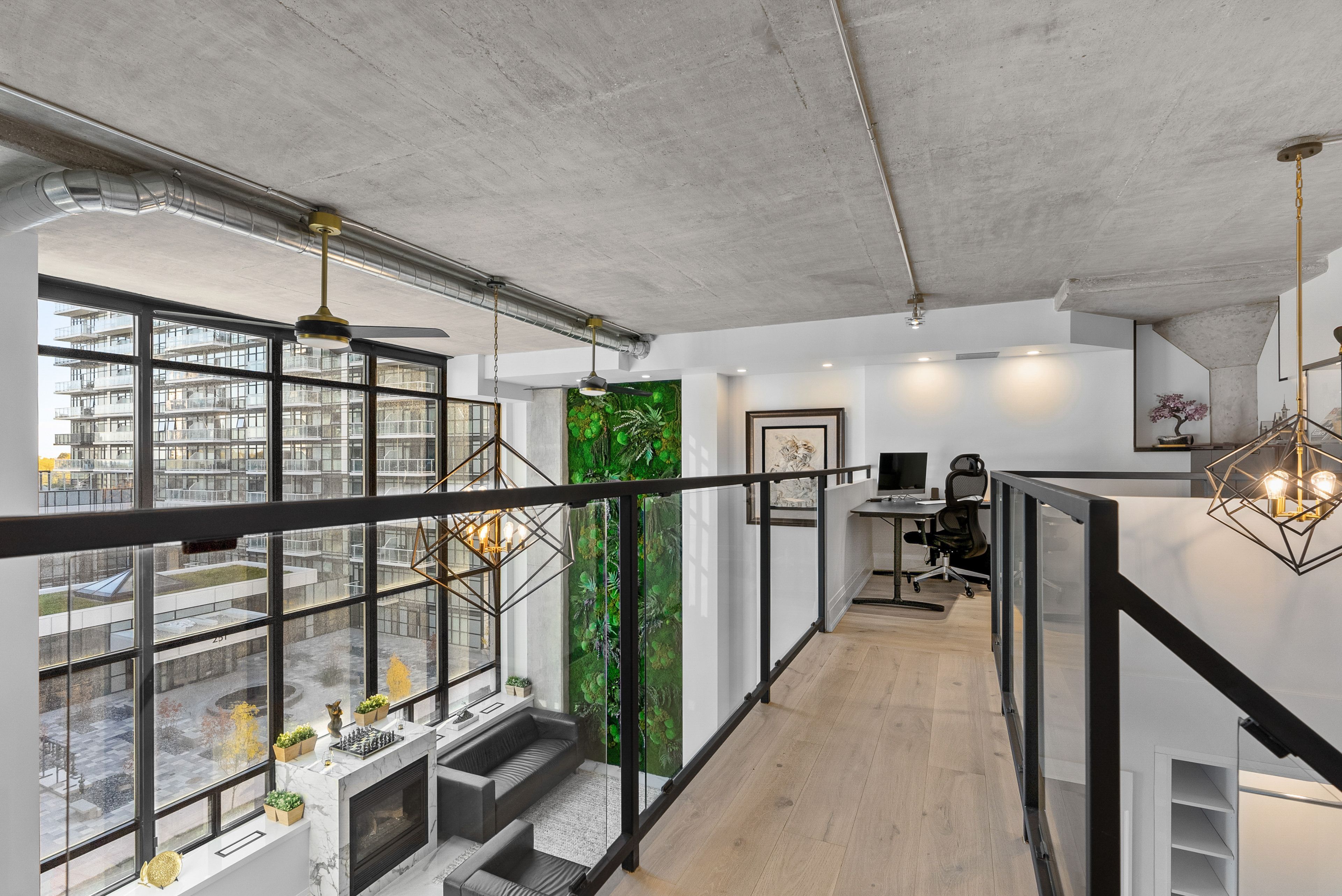Experience luxurious urban living with this exclusive 2 bedroom, 2 bath, & 2 parking hard loft. Meticulously redesigned and equipped with all the bells and whistles one seeks. Breathtaking from the entrance! Soaring 18 ft ceilings & a wall of windows pour an abundance of south-facing natural light inside further reflected by the lavish heated marble floors and cladded gas fireplace & walls. A one-of kind purifying garden wall spans the height of 2-storeys joined with exposed concrete ceilings and grand posts. Built with thick concrete walls, additional soundproofing, top-of-the-line hunter douglas automatic smart shades, and remarkable sonos speakers throughout, combined witha smart home automation making this dwelling into a complete theater-on-demand. Have full control of your environment with the rarely offered individual in-suite furnace and two premium ceiling fans. The warehouse lofts is beautifully positioned in a calm family & pet-friendly community, yet moments from all the city has to offer. Breeze right in off the gardiner expressway to your gated residence and take a walk to the newly updated humber bay shores park, lakeshore strip of restaurants, marinas & yacht clubs, and various locally authentic & big-name shops. Perfectly positioned 15 minutes from bustling downtown toronto and both toronto airports.