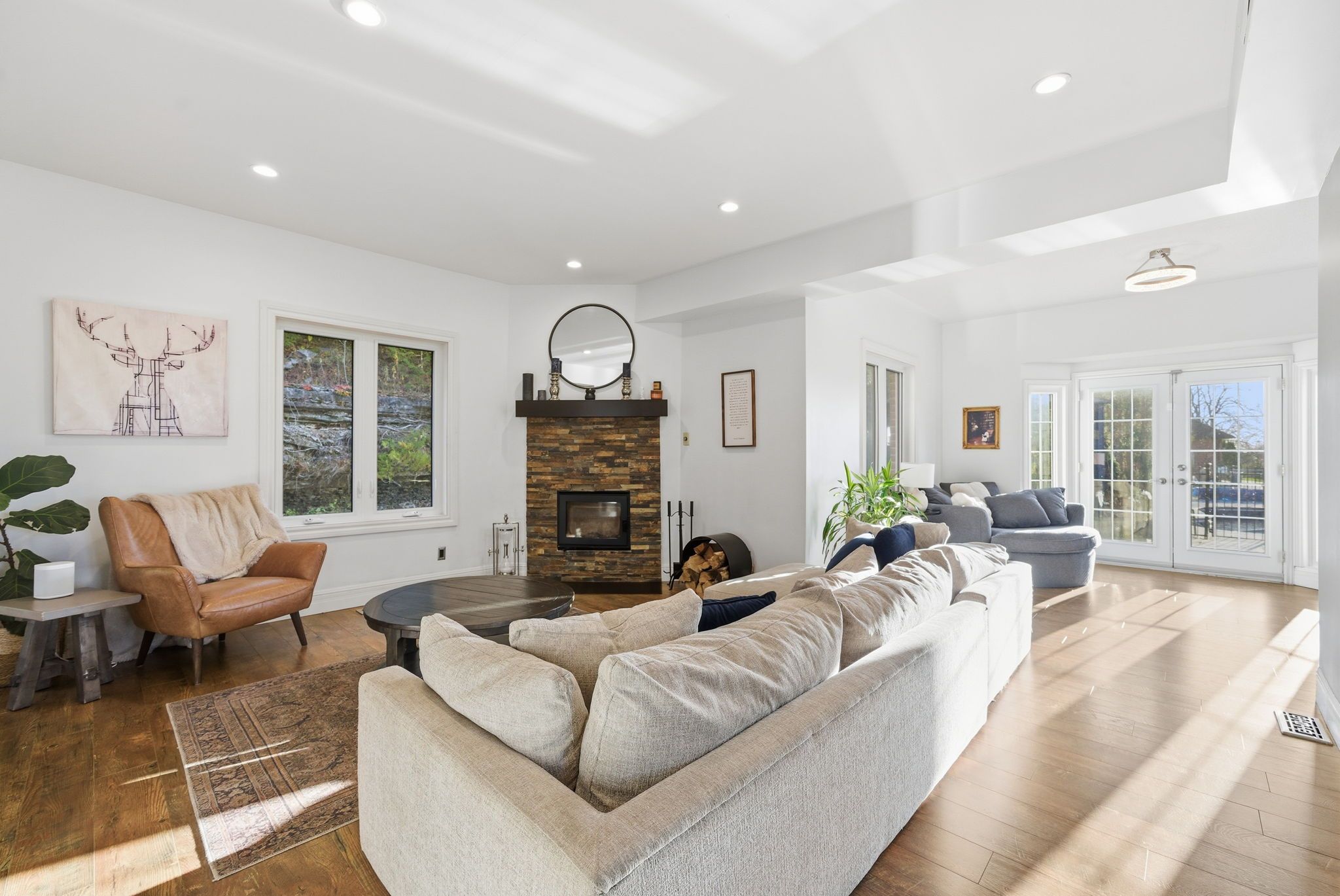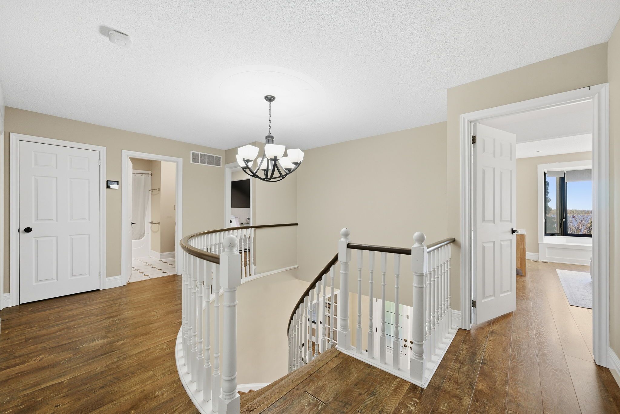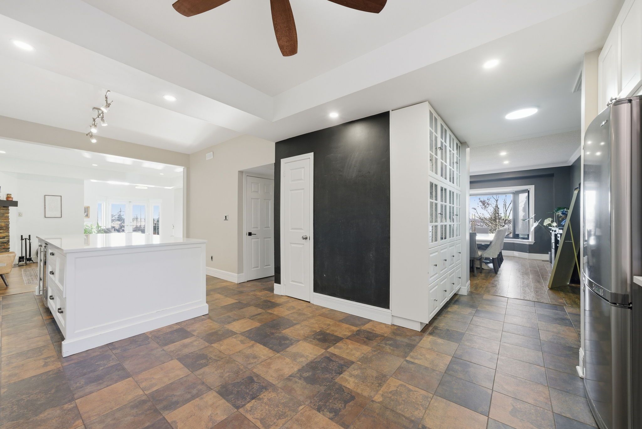 Sitting high on the hill with commanding lake views on almost two acres, this bold 4-bedroom, 3-bath home delivers space, presence, and a lifestyle that's hard to match. The backyard is a full outdoor haven. An inground pool, gazebo, firepit, tree-lined privacy, and space to host every gathering you can imagine. Inside, a grand foyer and a main floor designed for living large. You'll find a dedicated office/den, a massive dining room, a bright living room, and an entertainer's kitchen with room to move. A sunken family area adds even more space, complete with garage access and a cozy propane fireplace. The first upper level forms the bedroom wing, offering four bedrooms, a convenient laundry room, and a second full bathroom. The private primary suite stands out with its spa-like ensuite, picture window overlooking the lake and a walk-in closet. A second upper level expands your possibilities even further - perfect for a potential 6th bedroom, office, home gym, studio, or multi-generational living. This property offers the rare combination of views, size, and neighbourhood charm. Updated and elevated since 2020 - electrical panel, ev charger, generac installation, new pool liner, ac, heat pumps, and more. This home delivers!