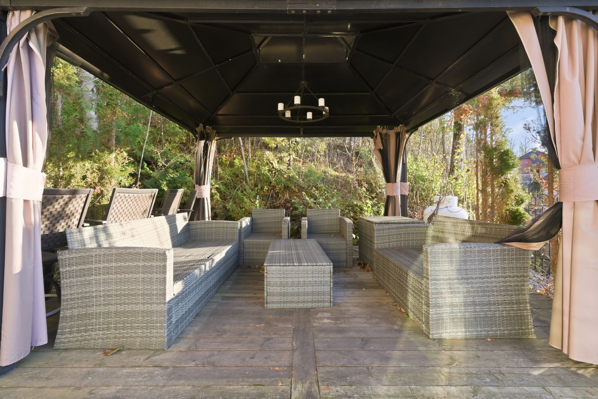 • Outdoor oasis featuring a pool, gazebo, firepit, and ample hosting space.