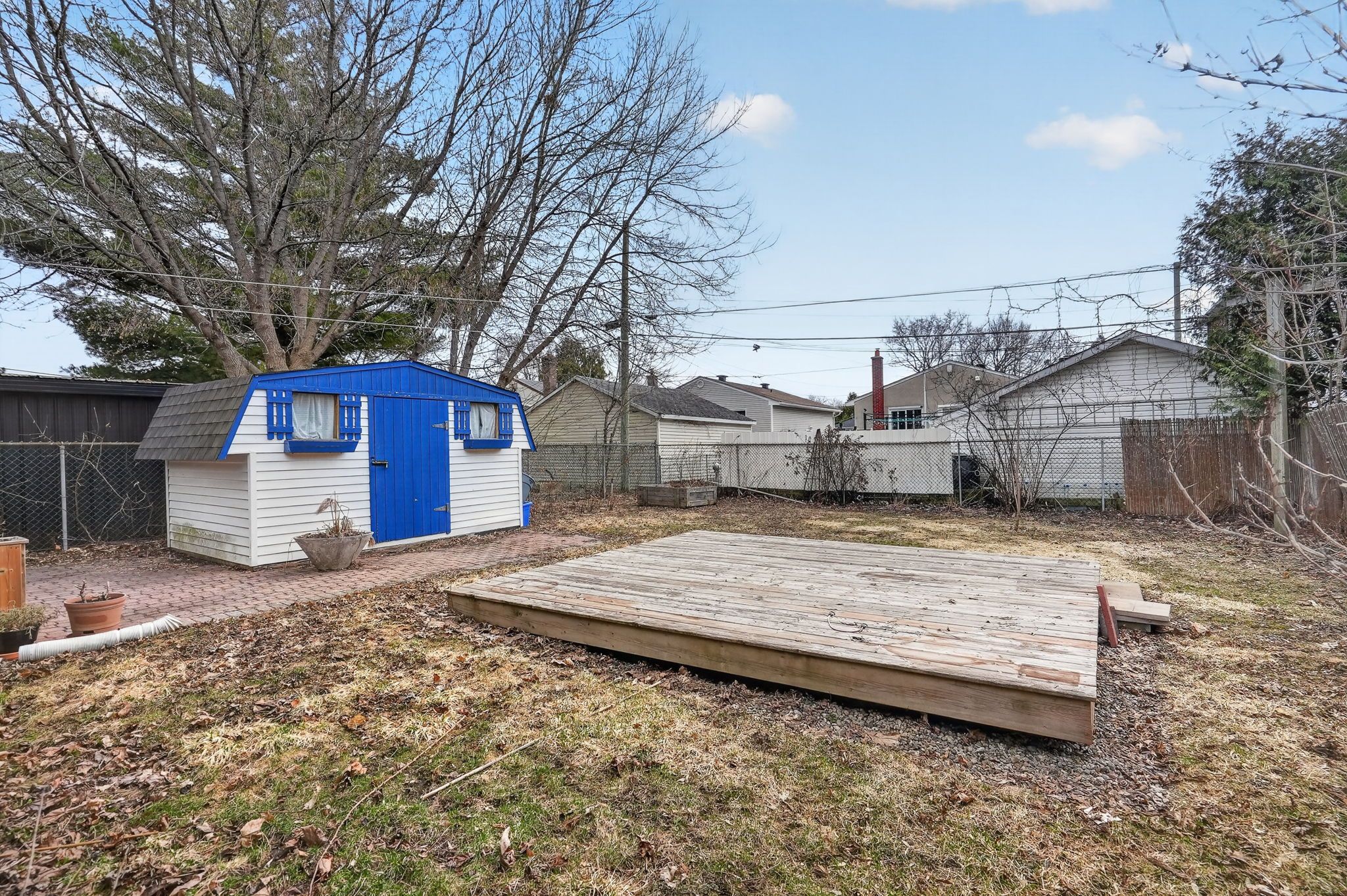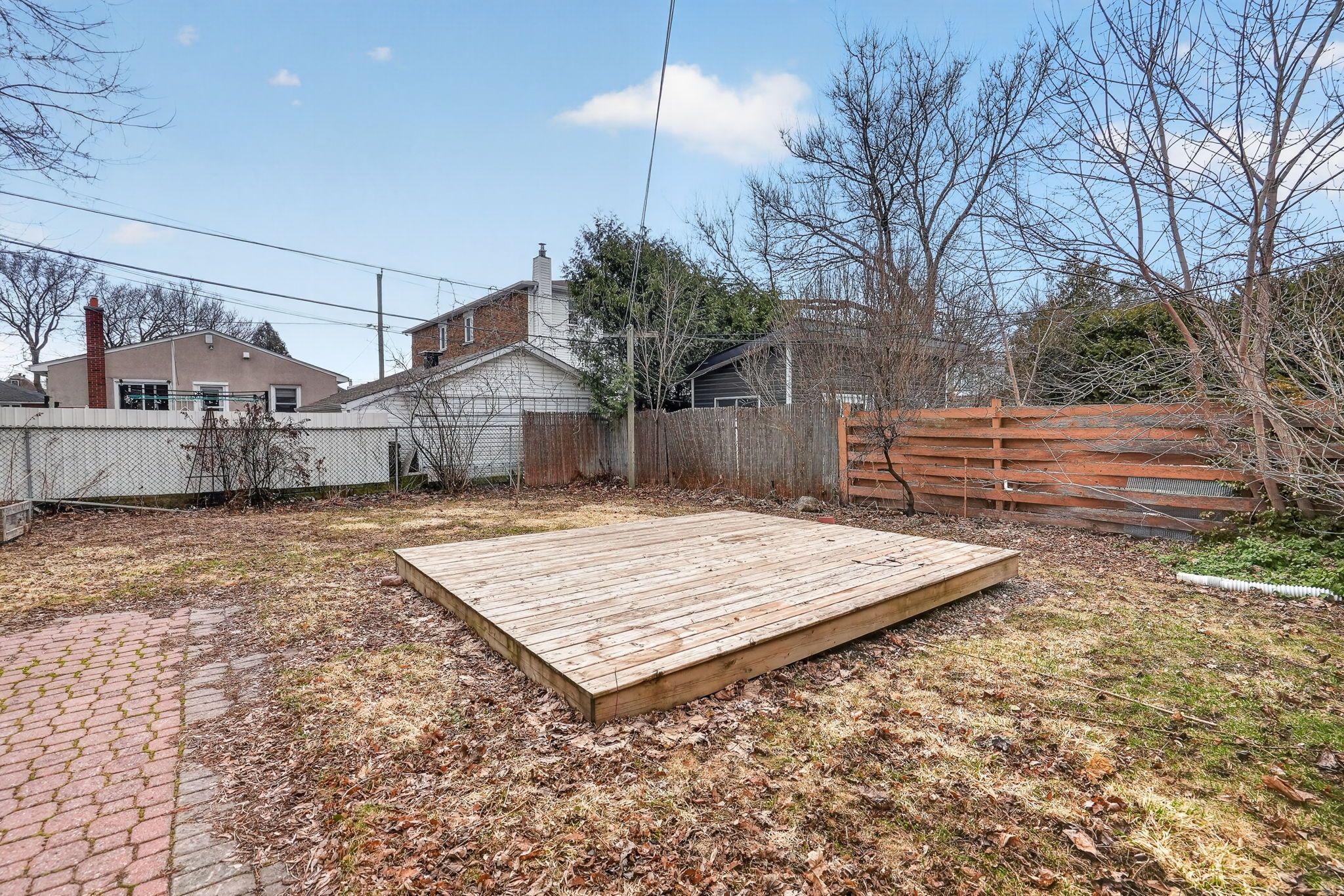 • Fenced yard with a large deck and power for storage options.