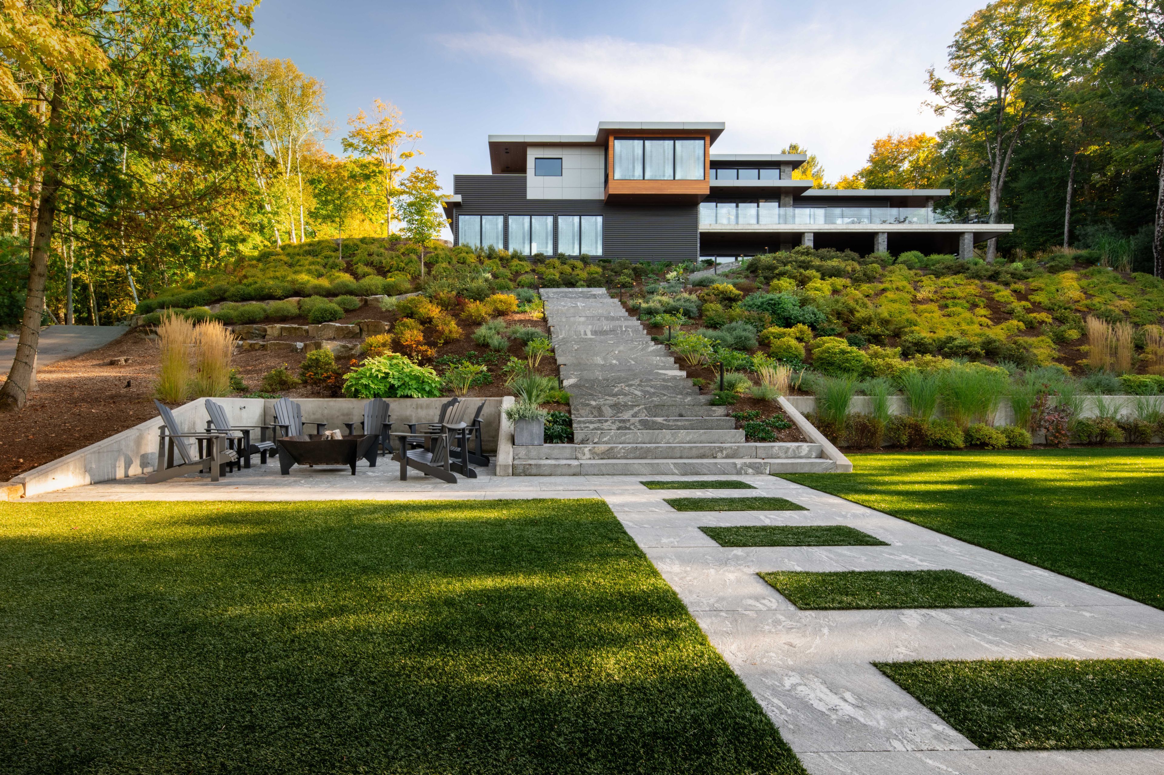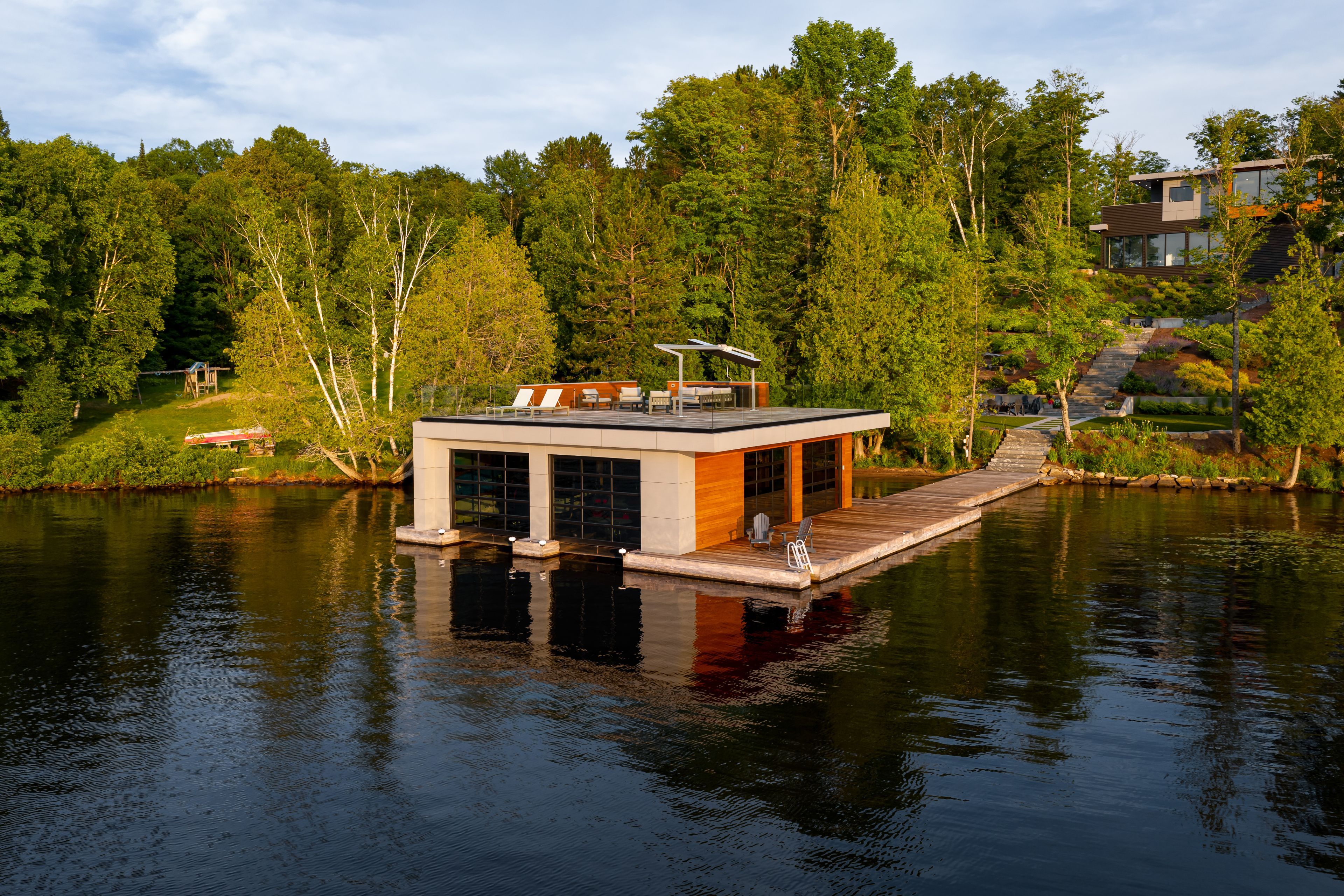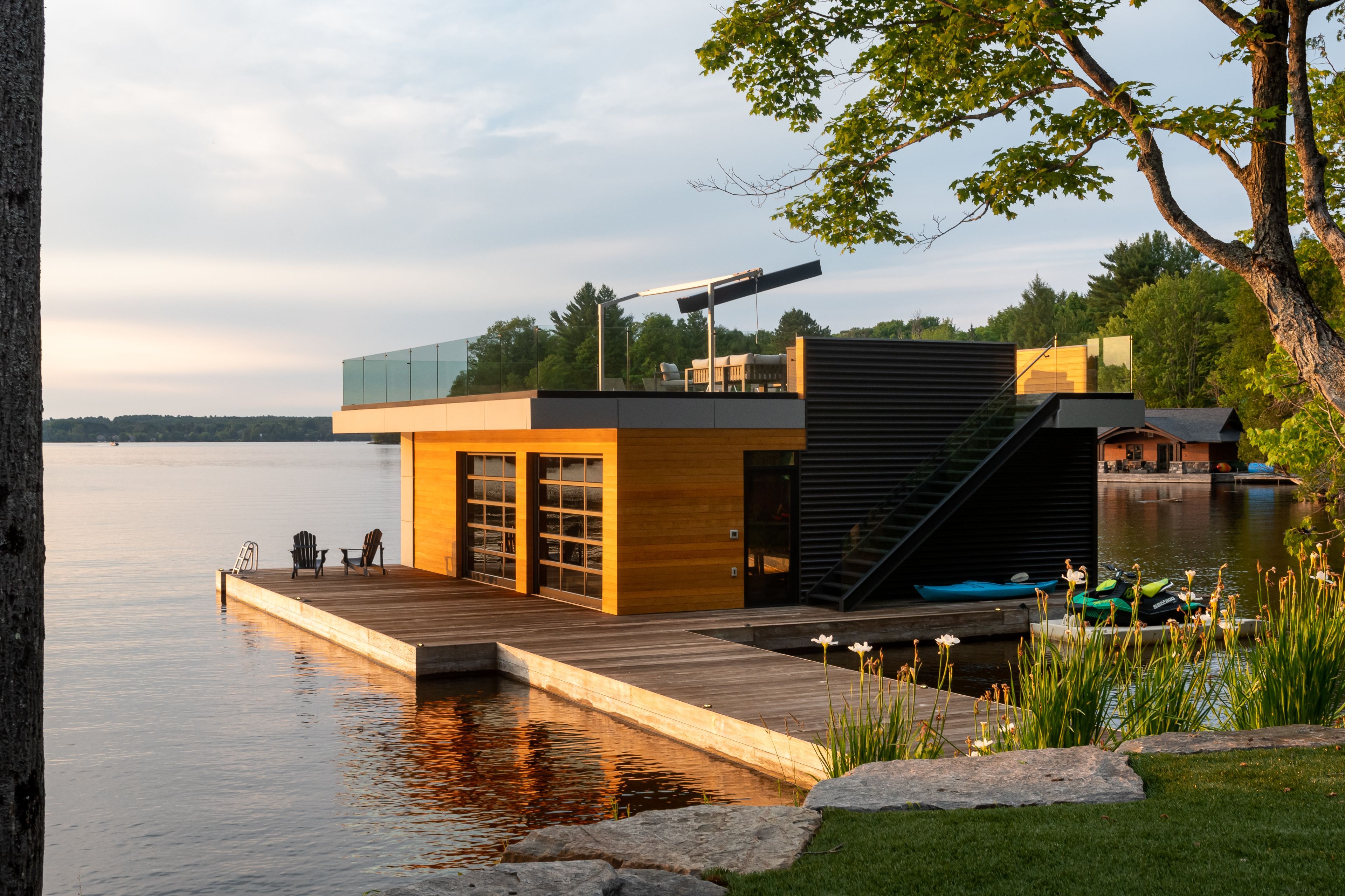 • Private waterfront oasis with low-maintenance turf and boathouse.