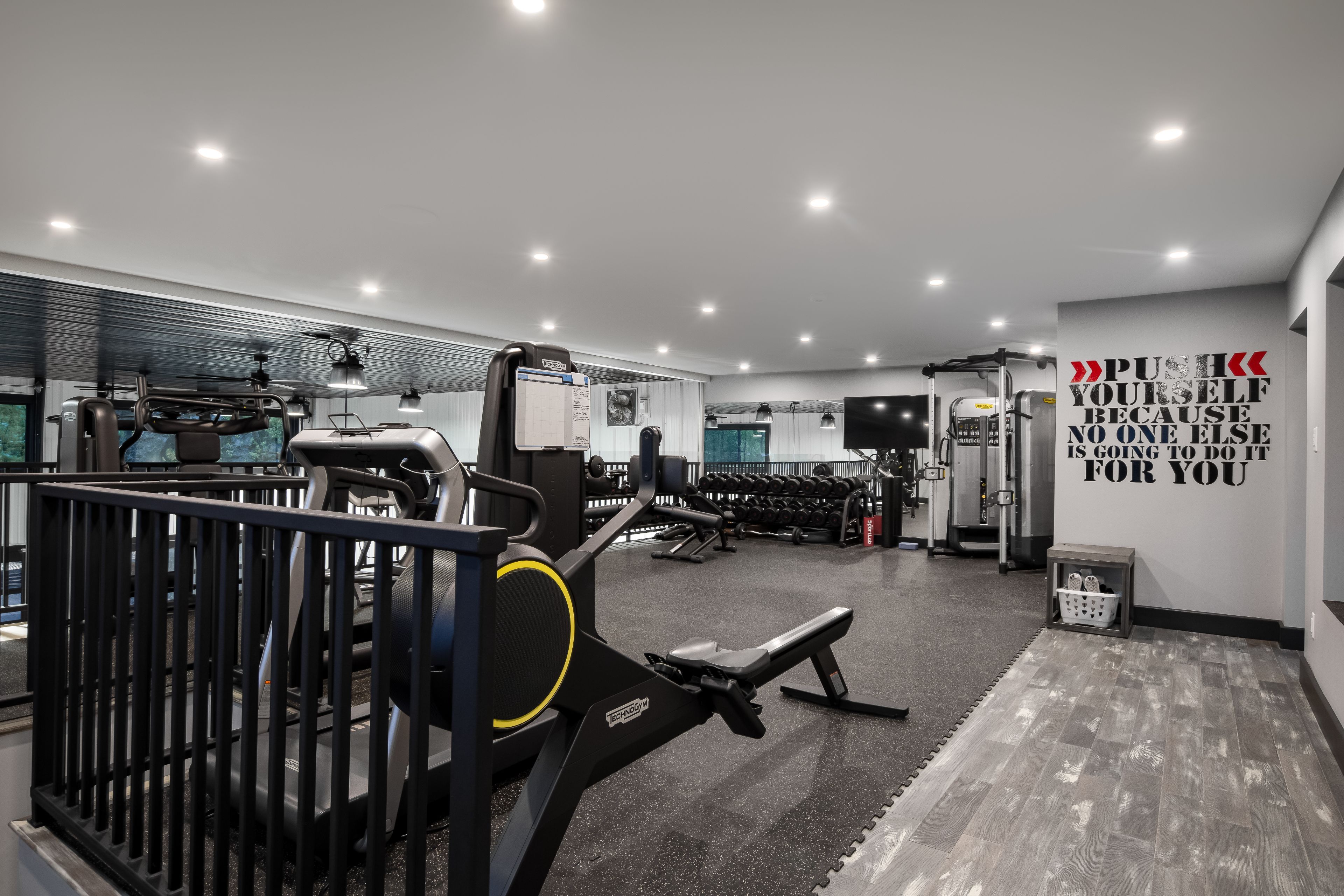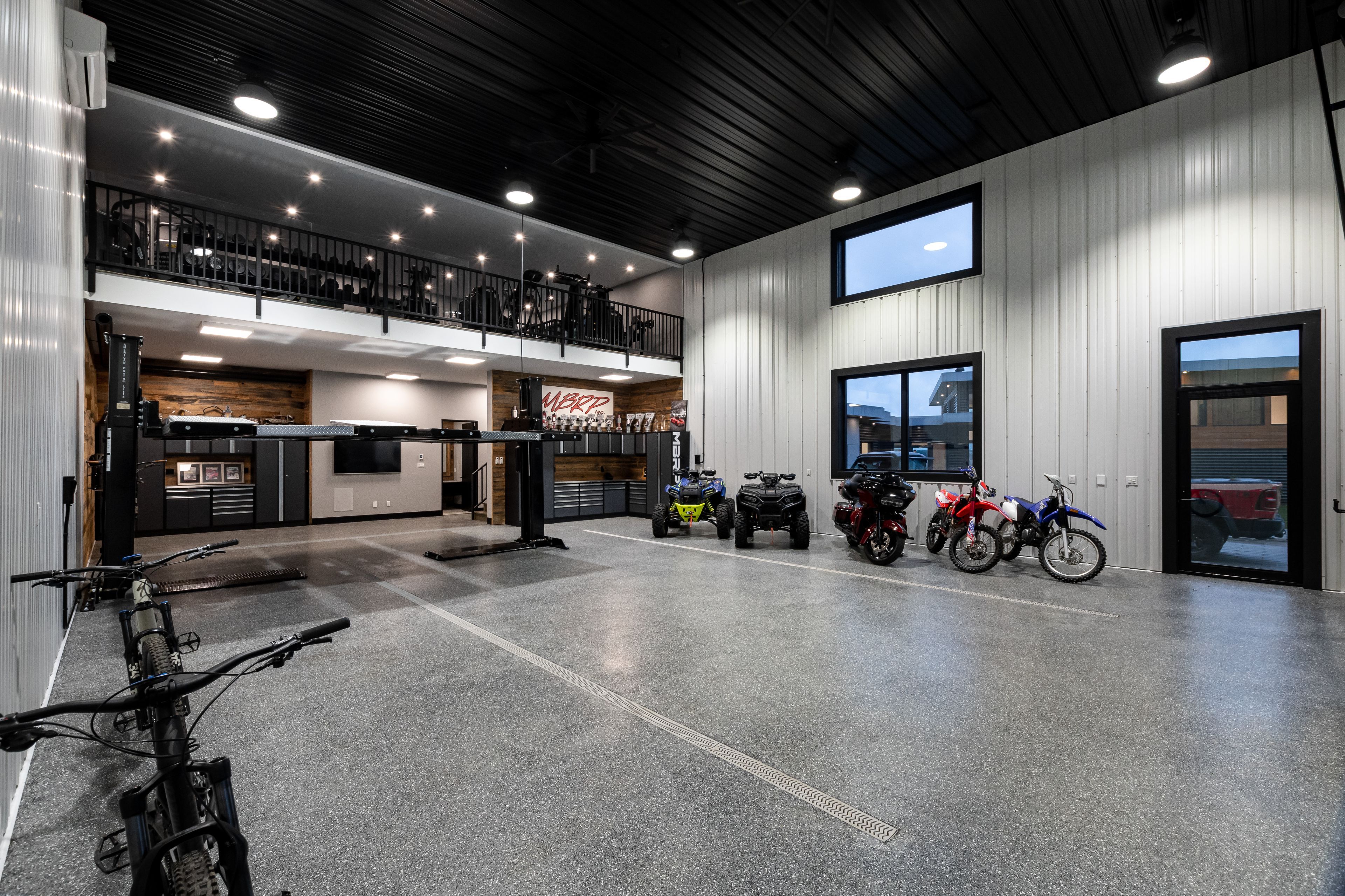 • Fully equipped home gym and detached garage with bathroom for versatility.