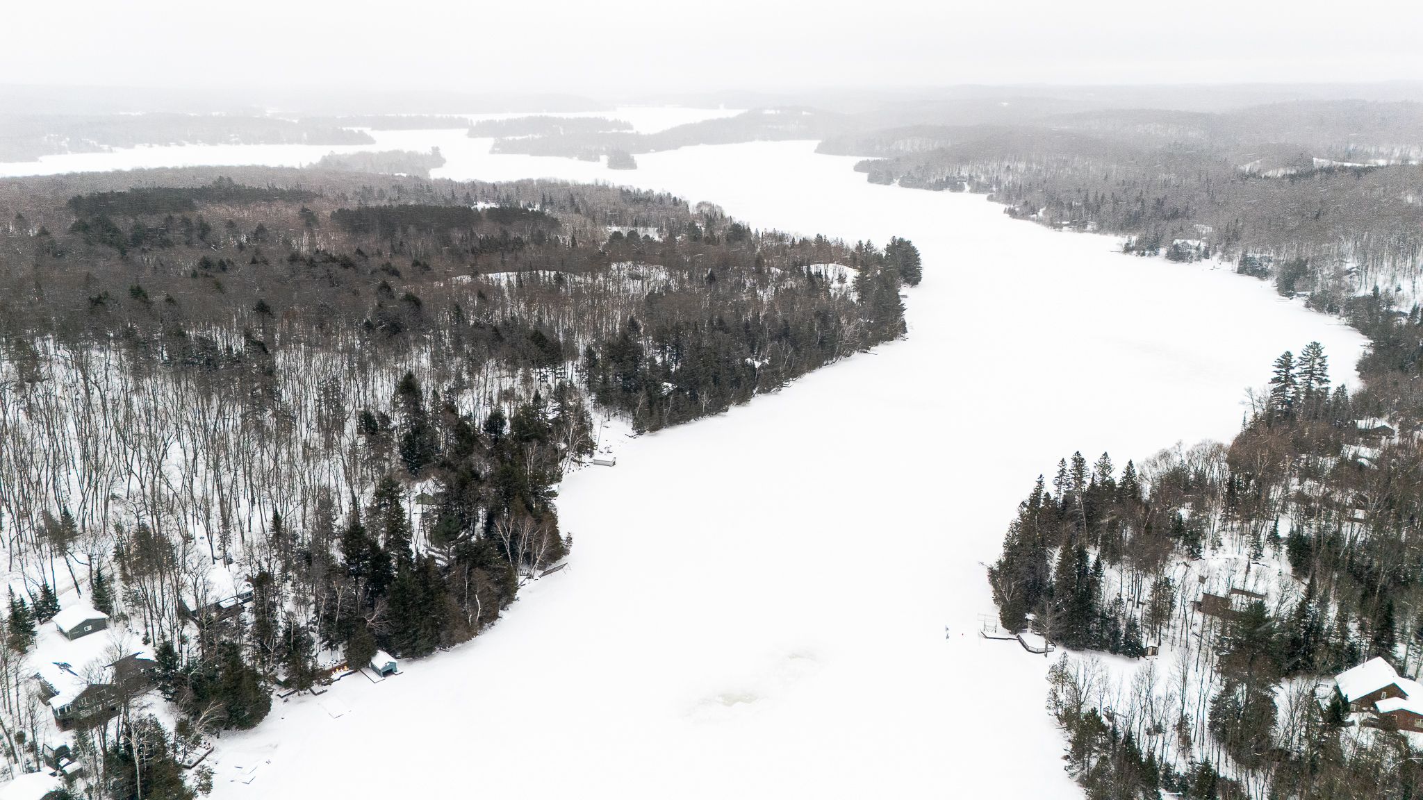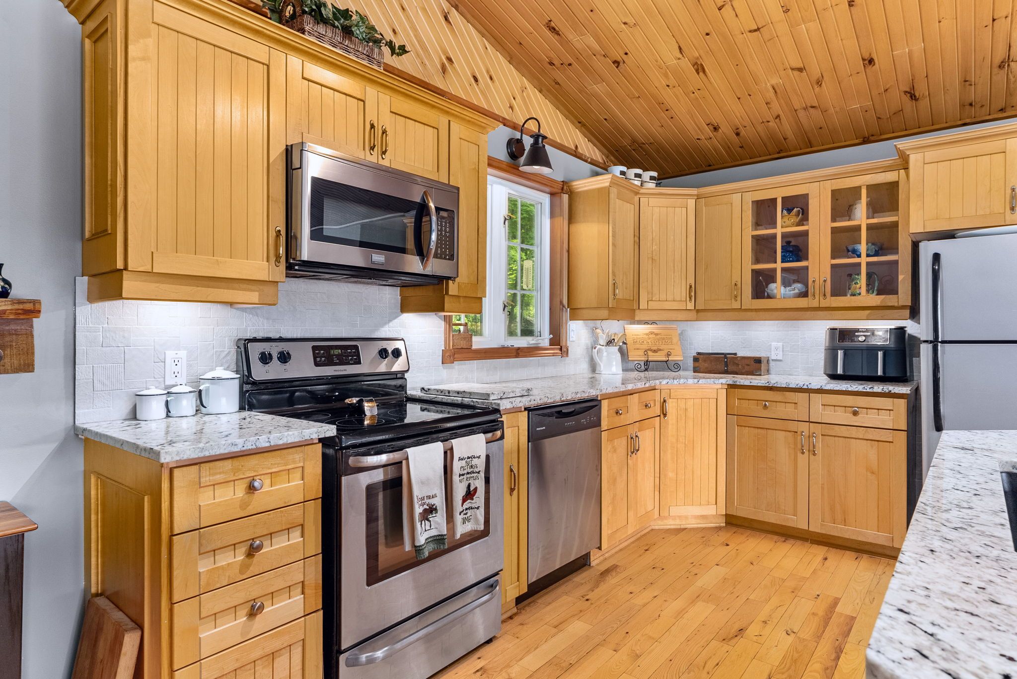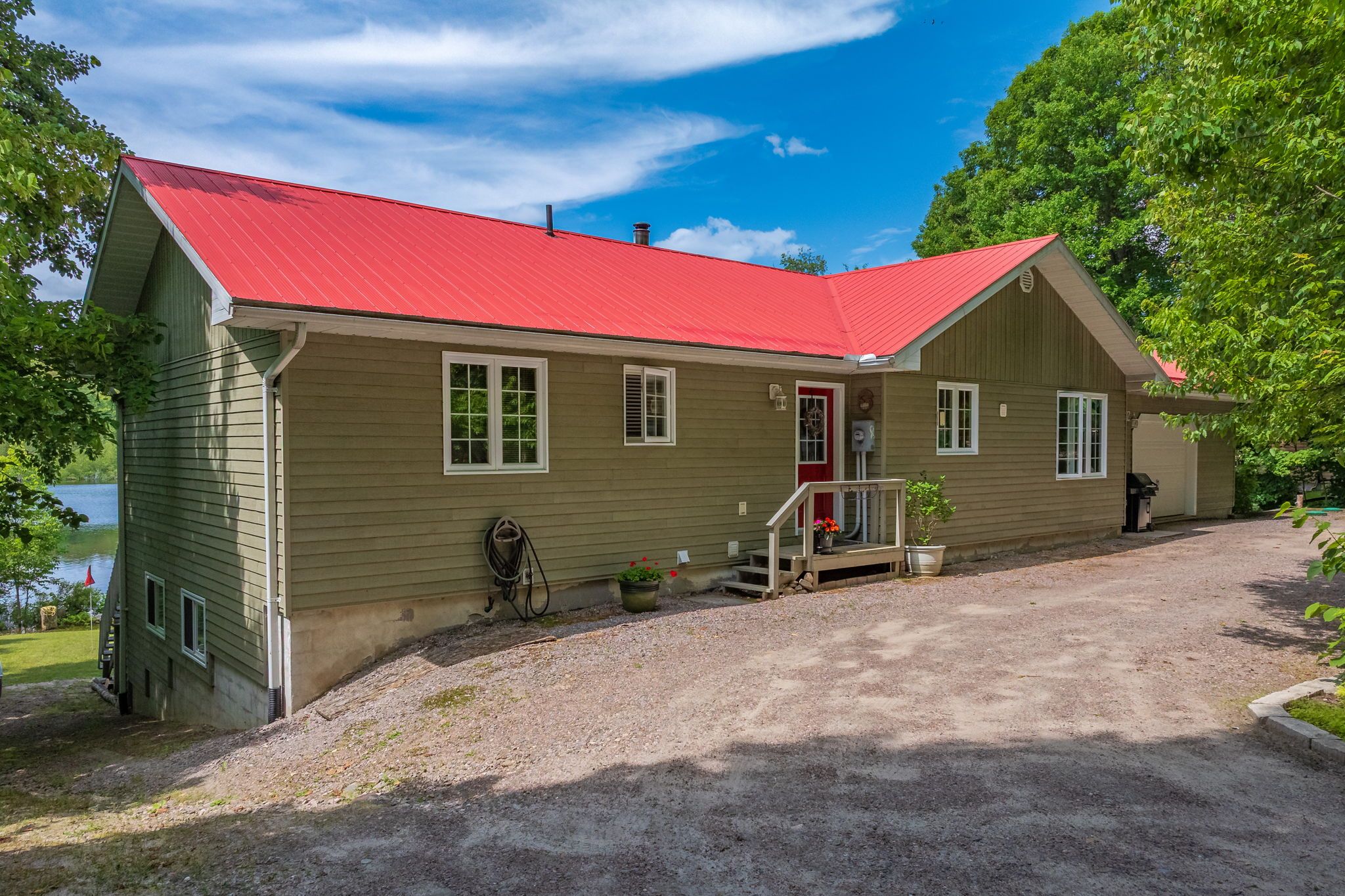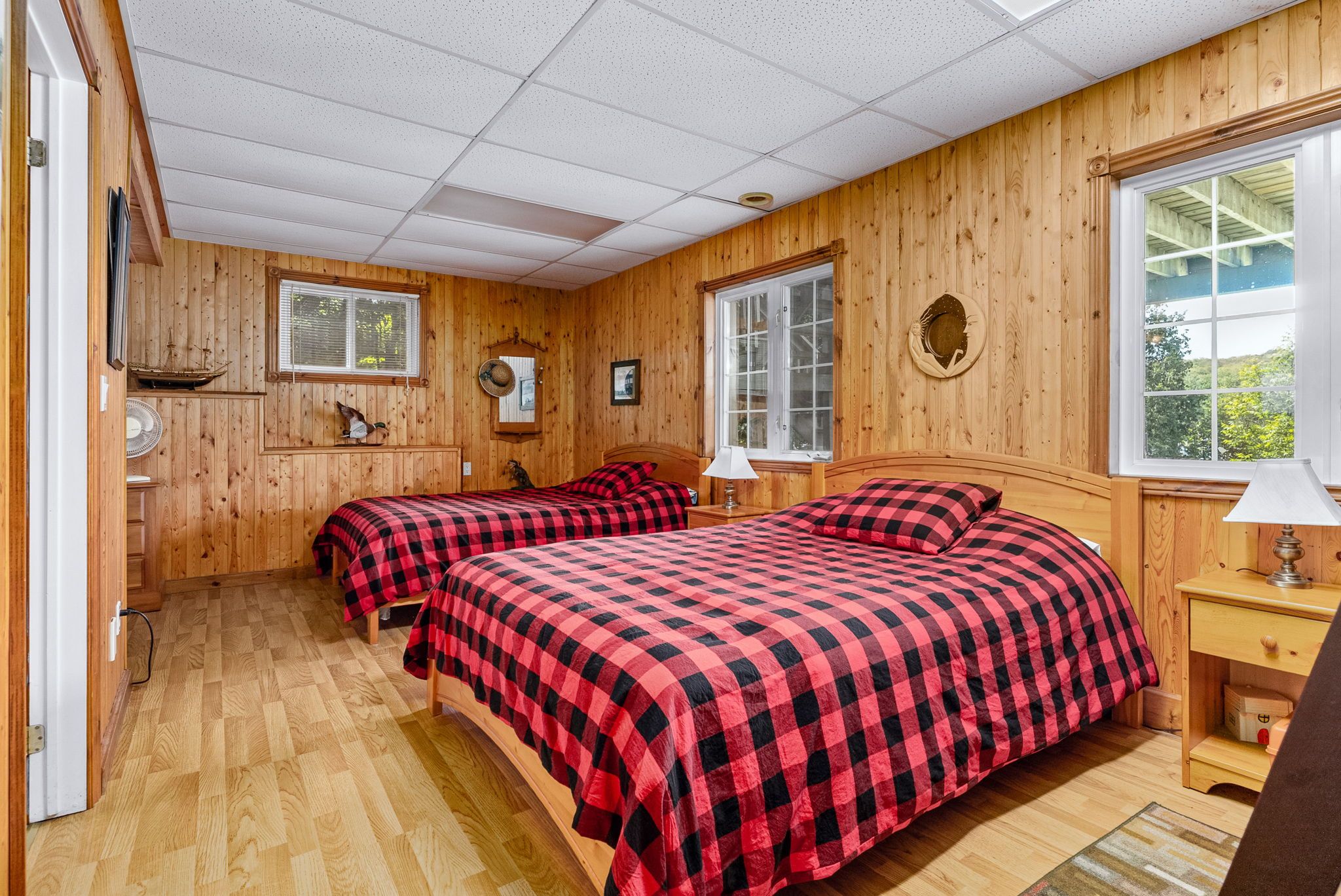 • Bright open concept with warm pine accents and stunning lake views.