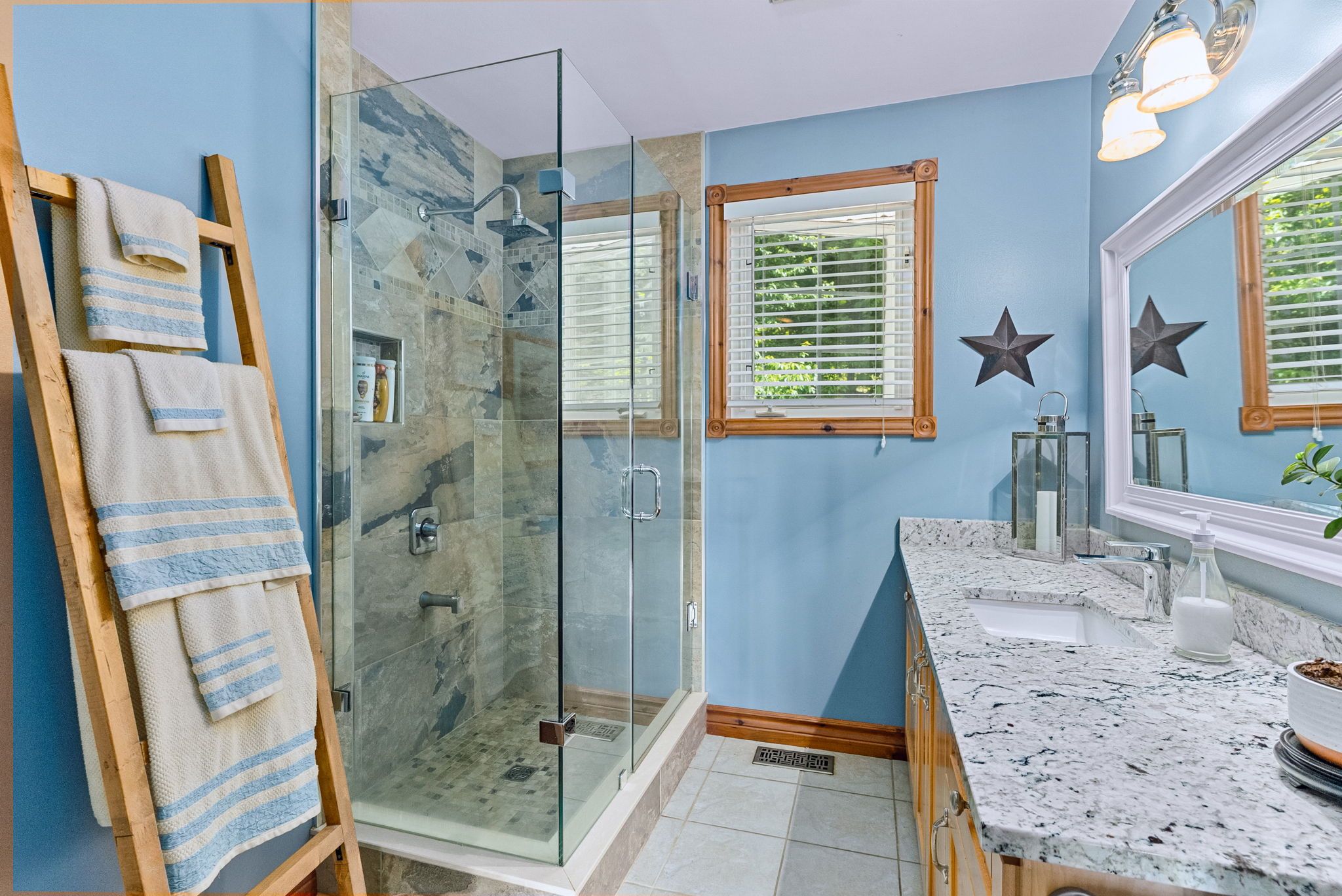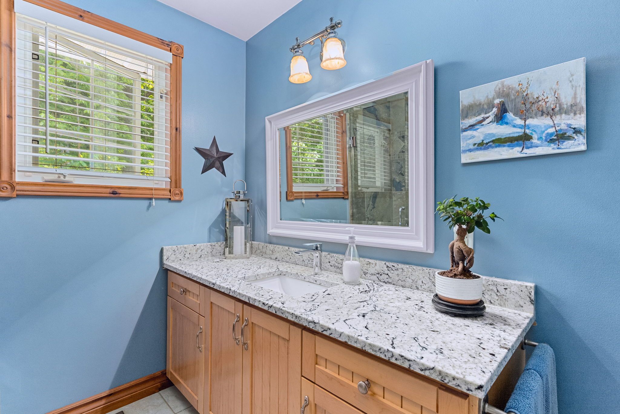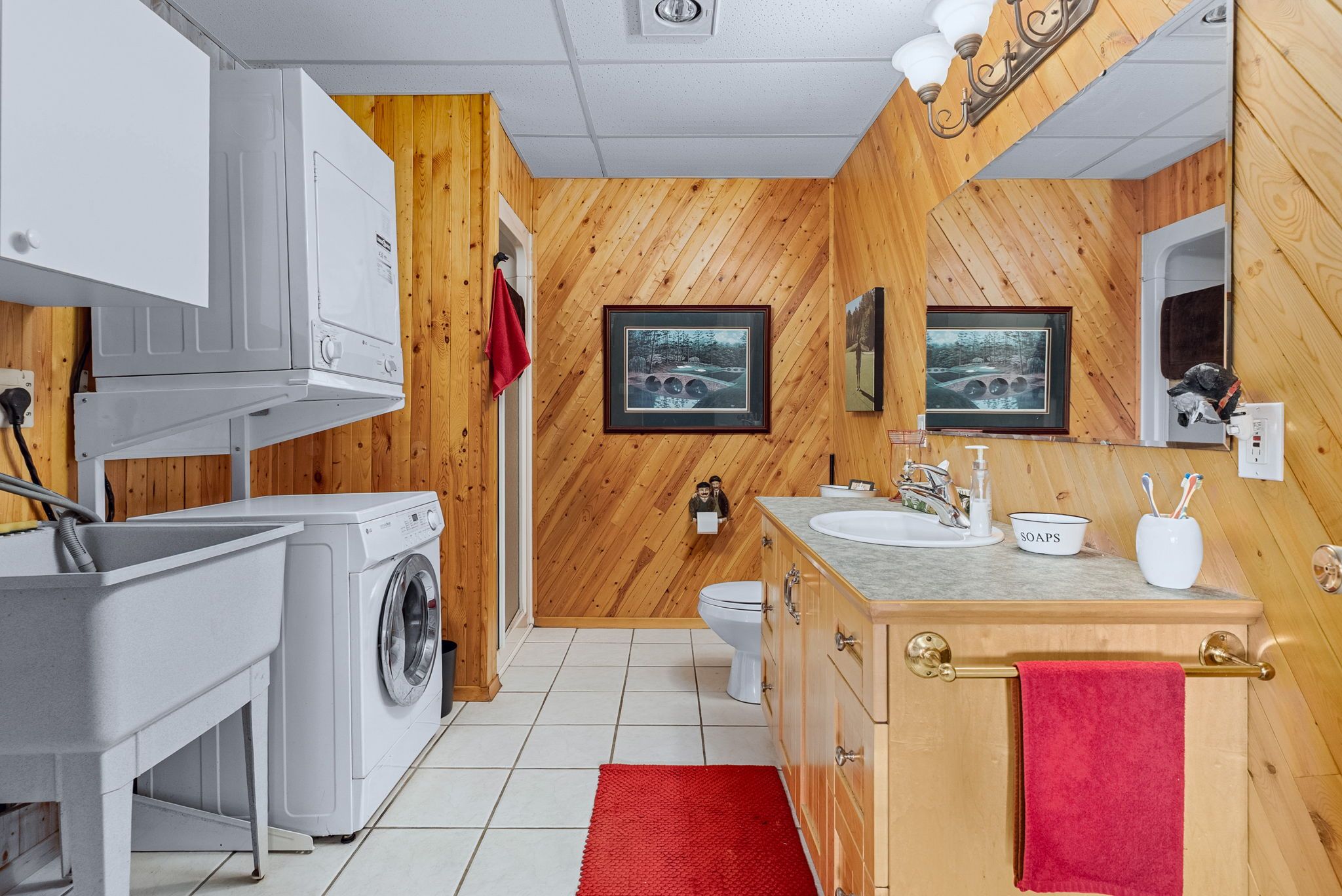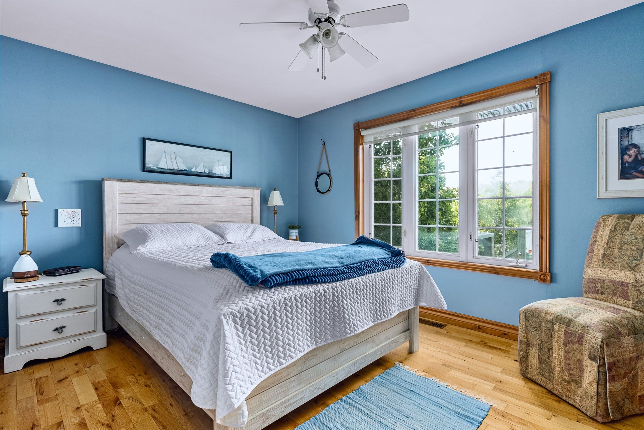 • Bright open concept with warm pine accents and stunning lake views.