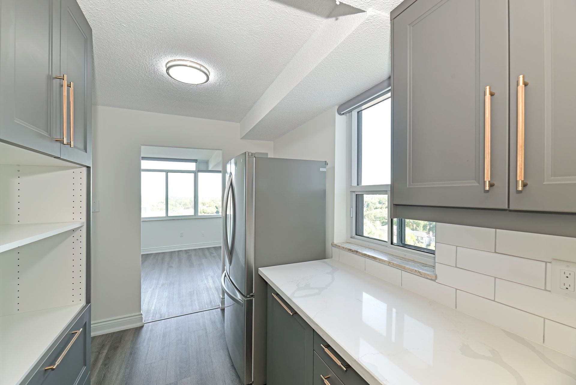 Elevate your lifestyle in a sought-after building. Discover approximately 810 sq. Ft. Of thoughtfully designed living space in this freshly painted and renovated 1-bedroom plus office, 1-bathroom condo. Move-in ready. Open concept living/dining rooms. The new kitchen features sleek cabinetry and stainless steel appliances, complemented by additional stainless steel appliances in the laundry room. The bathroom has been updated. Modern vinyl flooring throughout brings a fresh, contemporary feel to the entire suite. The spacious layout offers versatility with the option to reimagine the office as an expanded kitchen area. Oversized windows, recently replaced, flood the home with natural light and frame unobstructed city views. The expansive bedroom is equally impressive, with a large picture window and generous closet space. Additional conveniences include ensuite laundry with extra storage, an oversized parking space and a separate locker. This well maintained building has undergone extensive upgrades, including a completed generator project, fresh exterior paint, new landscaping along the north side park area, and new carpets, tiles, and wallpaper currently being installed in the corridors. More enhancements for the common elements are being planned. There is an electric car charging station in the underground parking which is shared with the residents of the neighbouring building. Residents need to open their own account and pay at the station just like any other charging station. Amenities include a 24-hour concierge, sabbath elevator, visitor parking, fully equipped gym, and sauna. Ideally located steps from ttc, major highways, lawrence plaza, shops, restaurants, and parks, this condo offers unmatched value in a prime location. Entrance lobby and corridors have undergone a complete renovation. The current photo of the lobby represents the former lobby. Some photos have been virtually staged.