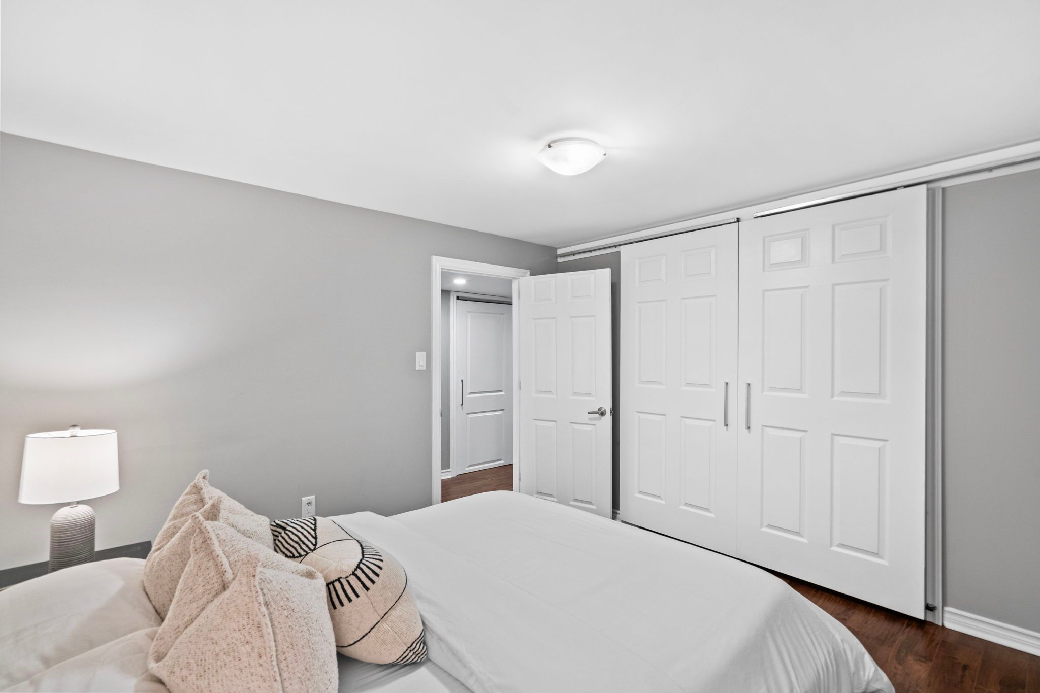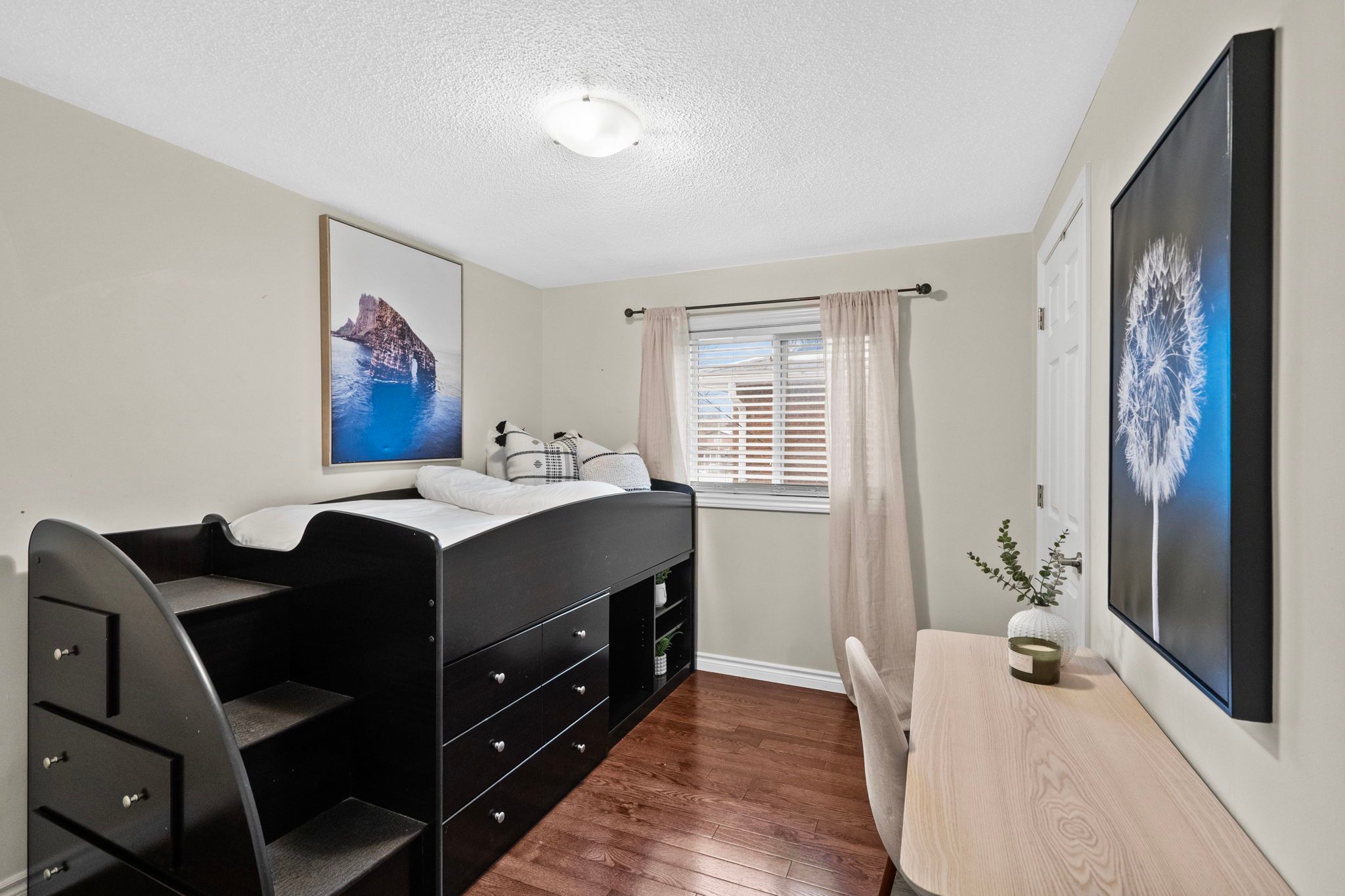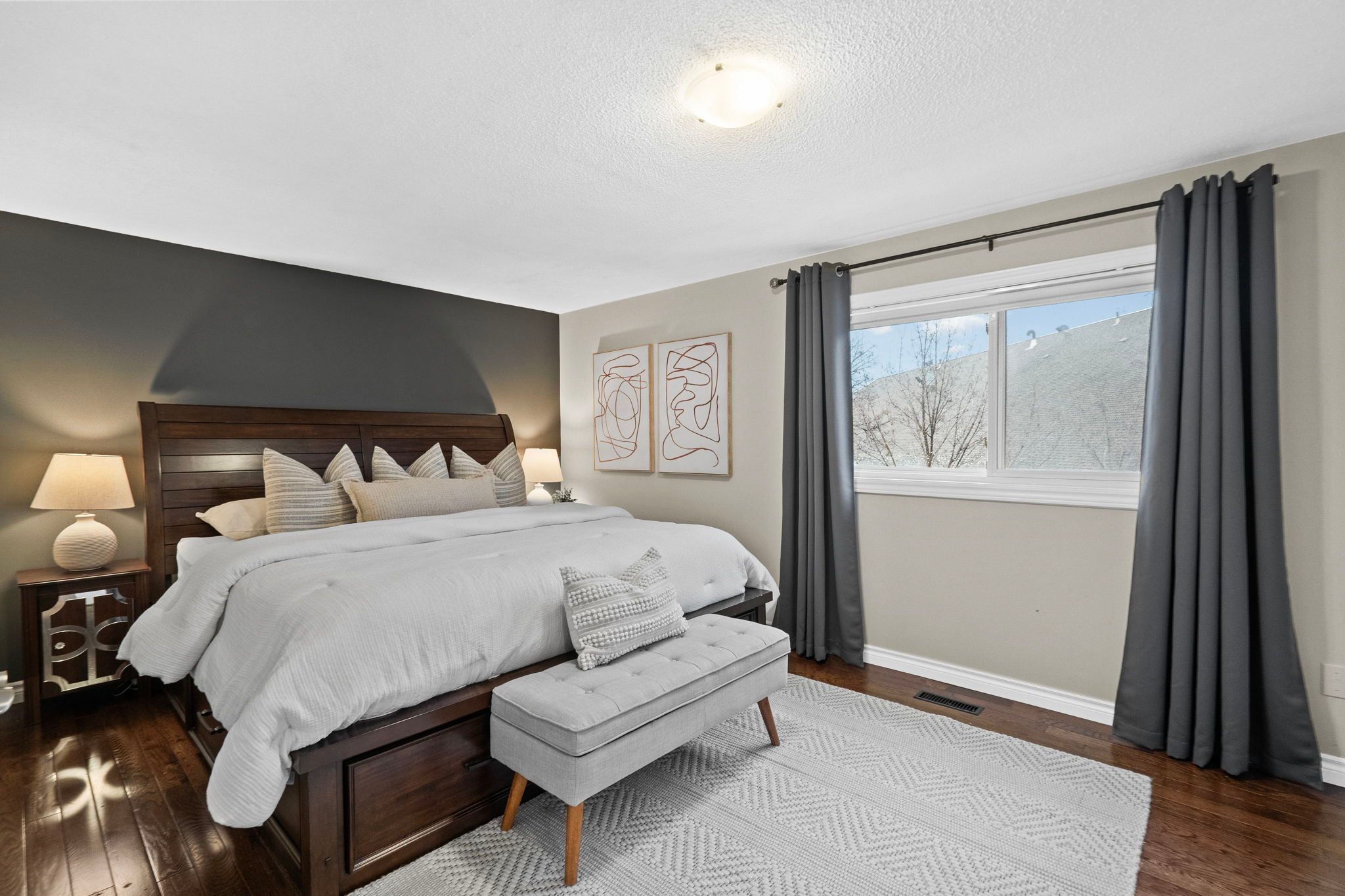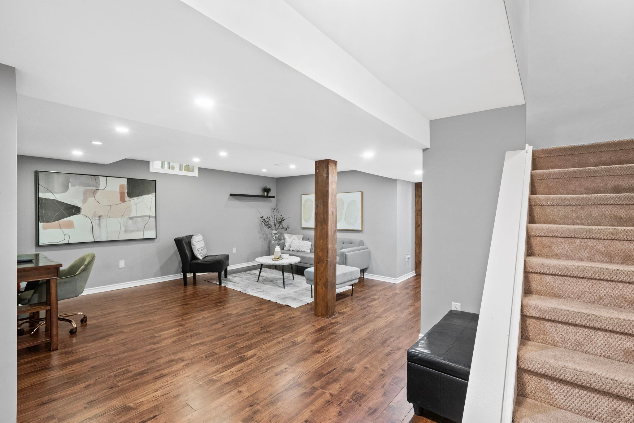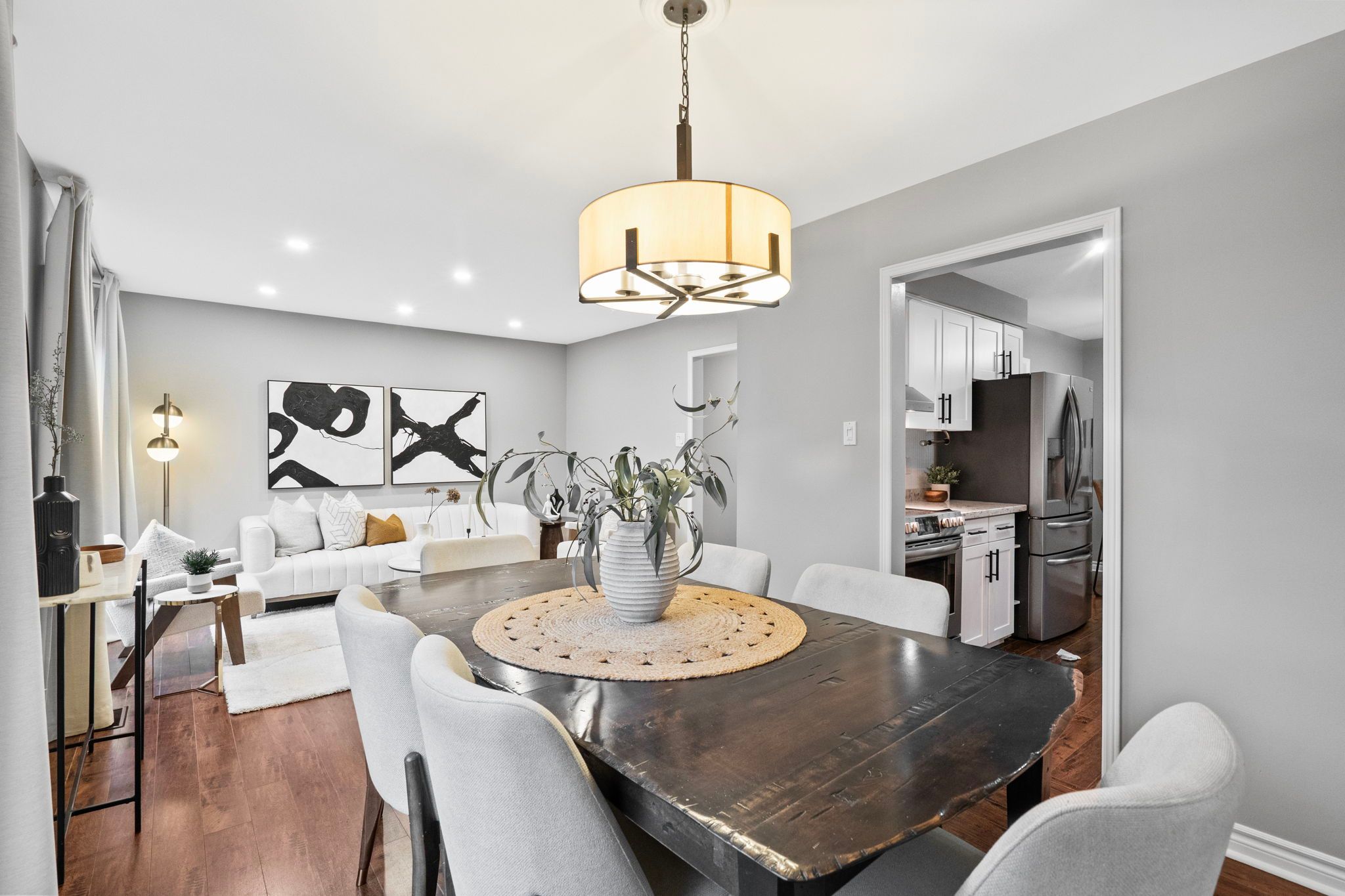 Welcome to 3005 olympus mews in the heart of meadowvale. Located on a quiet dead-end street, this beautifully maintained detached home offers 3 plus 1 bedrooms, 4 bathrooms, and flexible living space within the highly sought-after plum tree park public school boundary. The renovated front entrance features upgraded stonework along with a redone porch and steps, creating impressive curb appeal. The roof was replaced in 2021, providing added peace of mind for years to come. Inside, the open-concept main floor showcases laminate flooring, pot lights, and a thoughtfully updated kitchen with quartz countertops, refaced cabinetry, a newly added island, and newer stainless steel frigidaire appliances. The layout flows seamlessly into the dining area with walkout to an oversized deck featuring updated railings. The backyard has been completely redesigned with artificial grass and surrounding stone landscaping, creating a clean, modern, and low-maintenance outdoor space perfect for children and entertaining. A portable shed adds convenient additional storage. A highly desirable main floor laundry room with exterior access adds everyday convenience. Upstairs offers three spacious bedrooms with hardwood flooring, including a primary suite with two walk-in closets and a 4-piece ensuite. The large family room above the garage provides exceptional flexibility and can easily be modified to suit your needs such as an additional bedroom, home office, or playroom. The finished basement includes a fourth bedroom, a full 4-piece bathroom, and separate access through the garage, offering ideal space for multi-generational living or guests. Additional highlights include a dual climate-controlled garage for year-round comfort. Conveniently located near lake aquitaine, meadowvale town centre, meadowvale go station, and major highways.