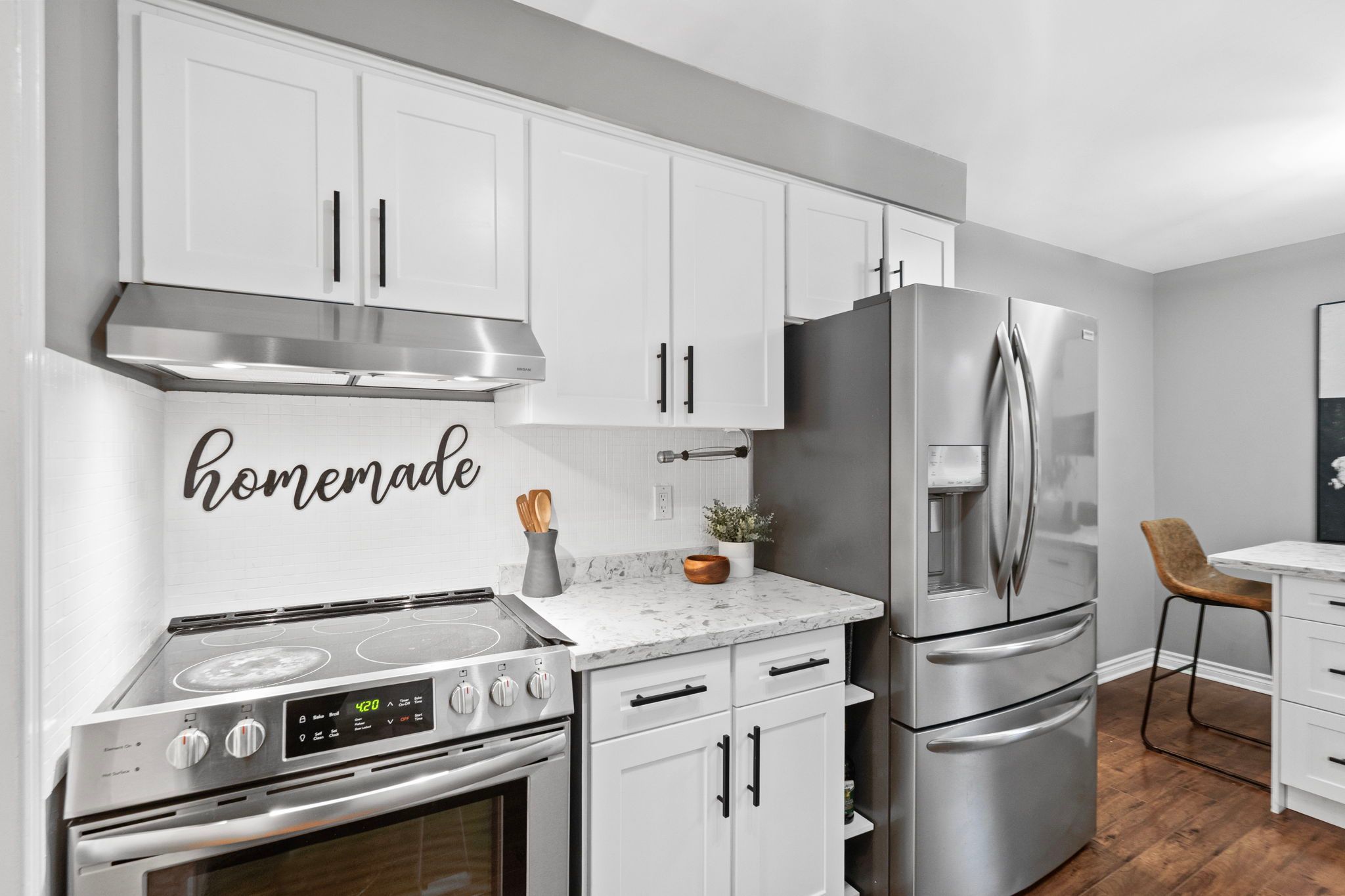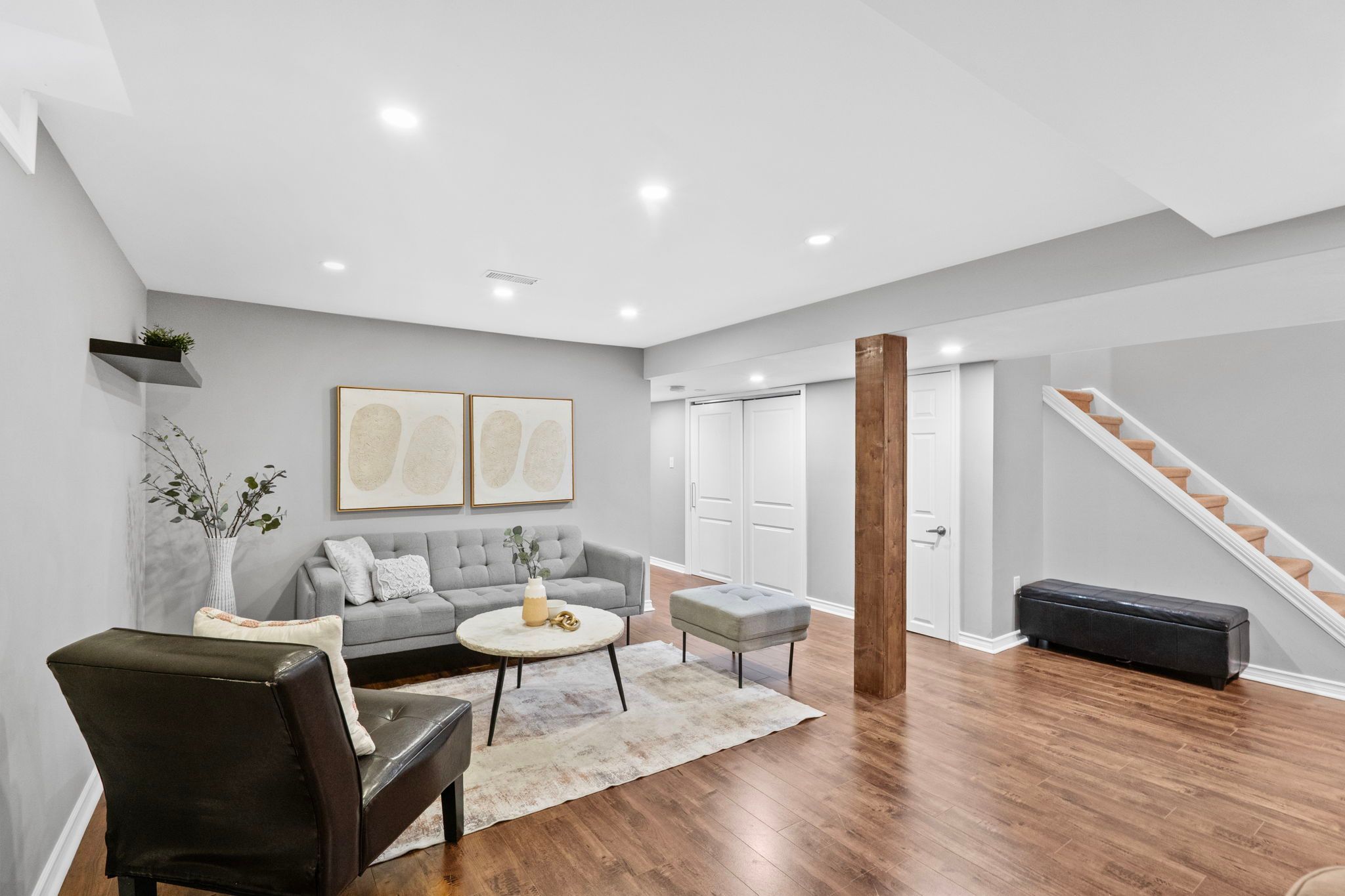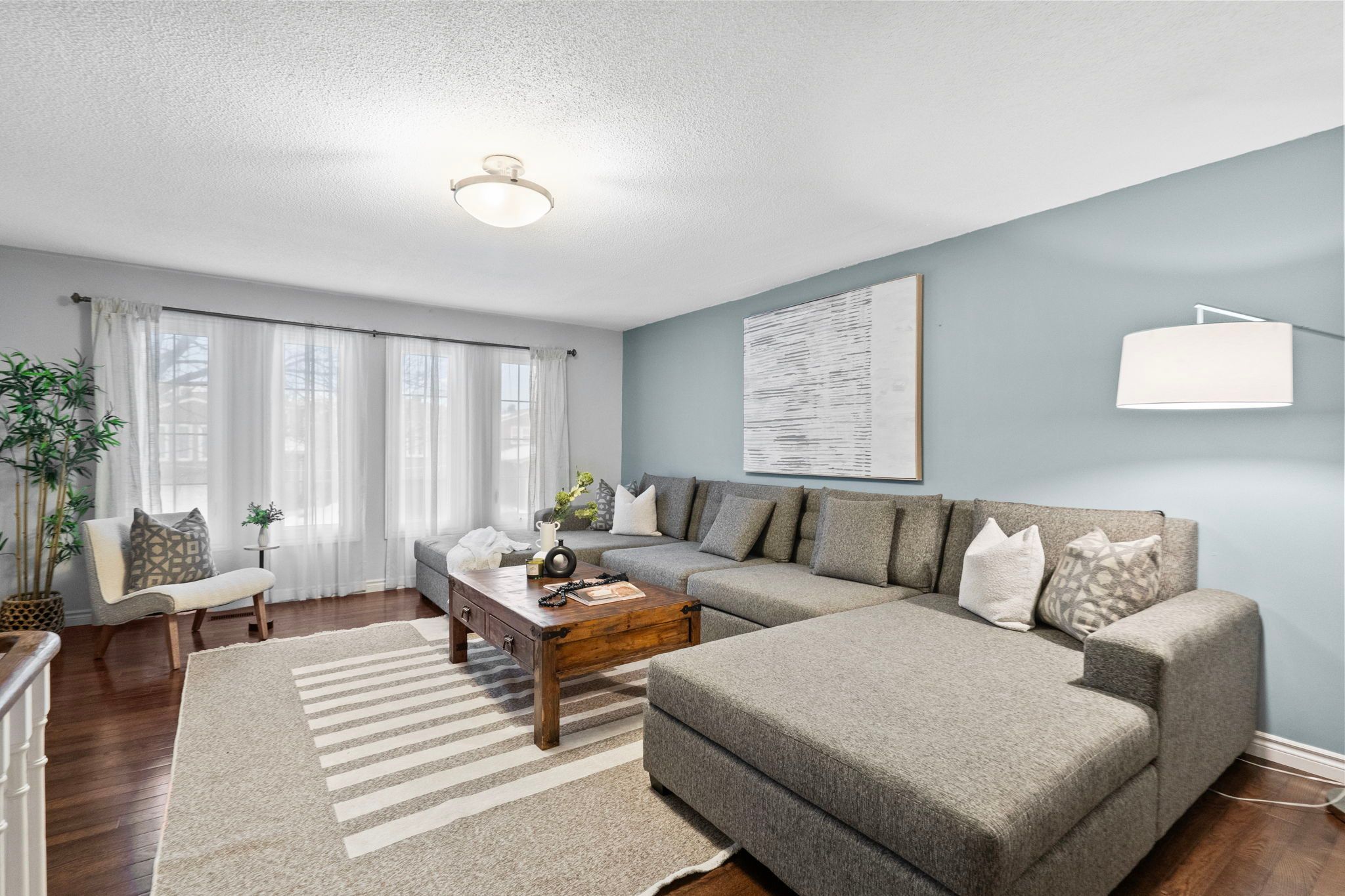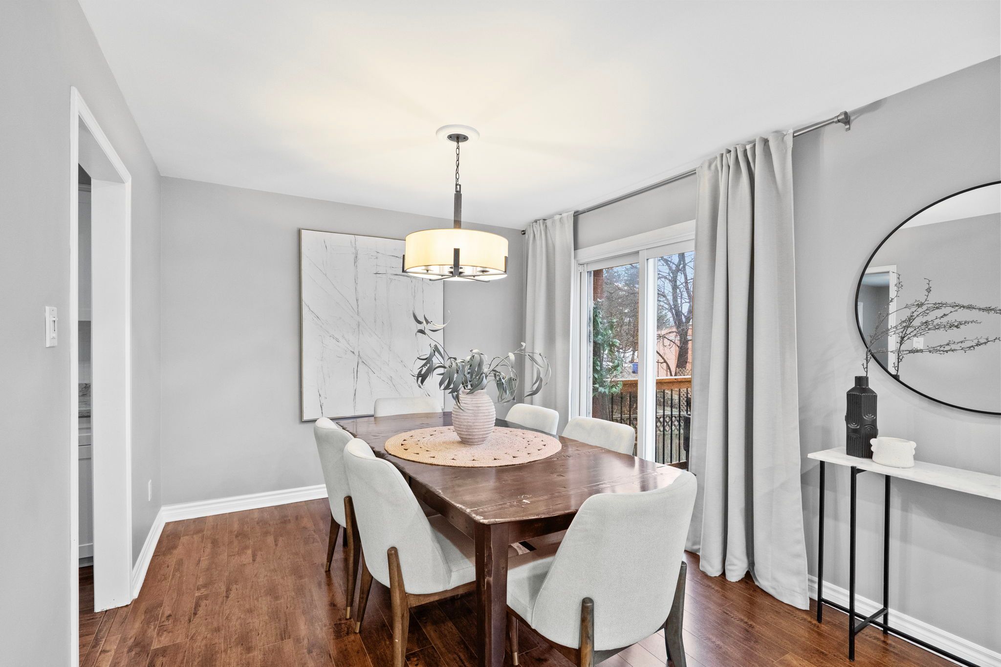 Welcome to 3005 olympus mews in the heart of meadowvale. Located on a quiet dead-end street, this beautifully maintained detached home offers 3 plus 1 bedrooms, 4 bathrooms, and flexible living space within the highly sought-after plum tree park public school boundary. The renovated front entrance features upgraded stonework along with a redone porch and steps, creating impressive curb appeal. The roof was replaced in 2021, providing added peace of mind for years to come. Inside, the open-concept main floor showcases laminate flooring, pot lights, and a thoughtfully updated kitchen with quartz countertops, refaced cabinetry, a newly added island, and newer stainless steel frigidaire appliances. The layout flows seamlessly into the dining area with walkout to an oversized deck featuring updated railings. The backyard has been completely redesigned with artificial grass and surrounding stone landscaping, creating a clean, modern, and low-maintenance outdoor space perfect for children and entertaining. A portable shed adds convenient additional storage. A highly desirable main floor laundry room with exterior access adds everyday convenience. Upstairs offers three spacious bedrooms with hardwood flooring, including a primary suite with two walk-in closets and a 4-piece ensuite. The large family room above the garage provides exceptional flexibility and can easily be modified to suit your needs such as an additional bedroom, home office, or playroom. The finished basement includes a fourth bedroom, a full 4-piece bathroom, and separate access through the garage, offering ideal space for multi-generational living or guests. Additional highlights include a dual climate-controlled garage for year-round comfort. Conveniently located near lake aquitaine, meadowvale town centre, meadowvale go station, and major highways.