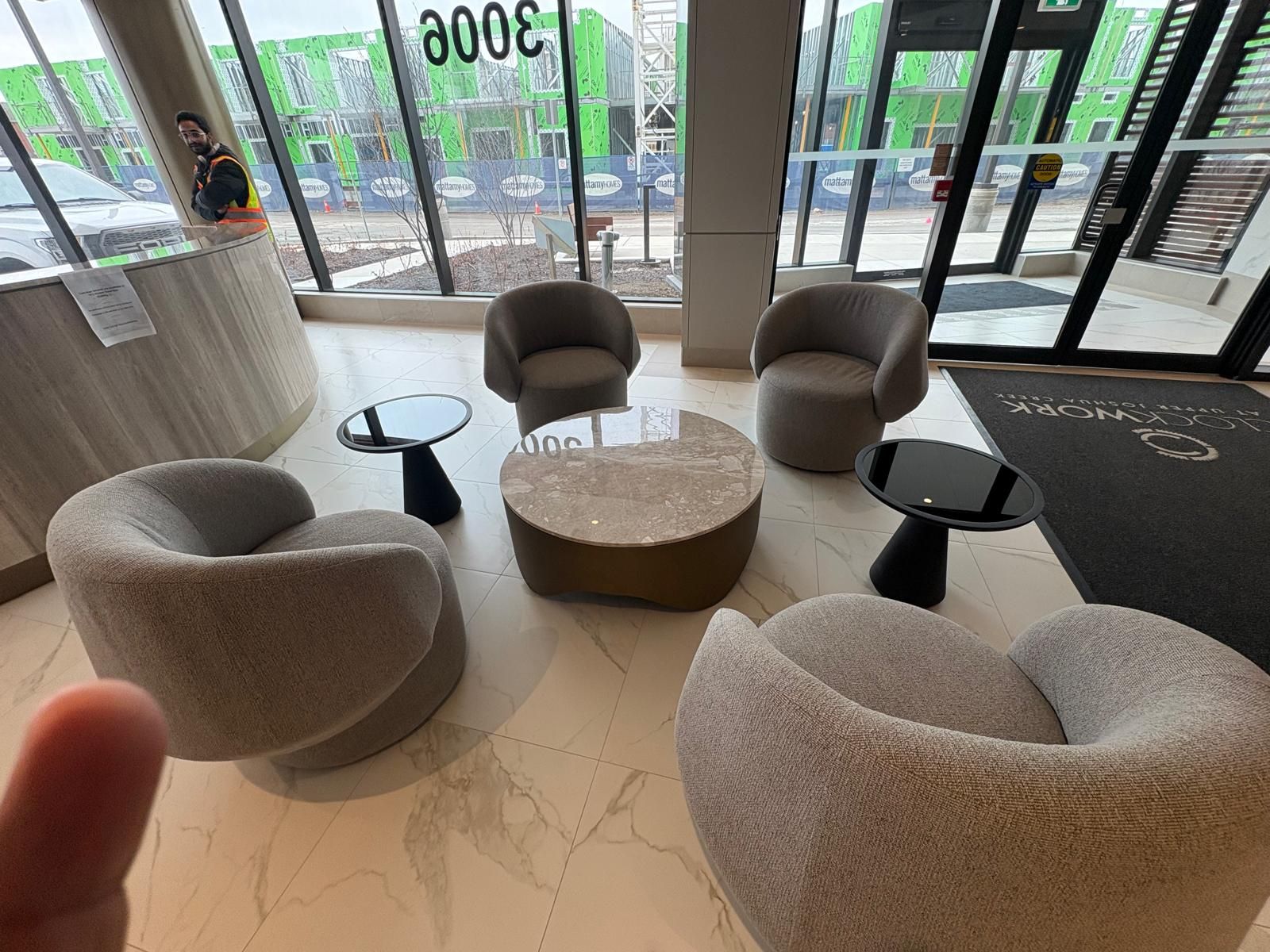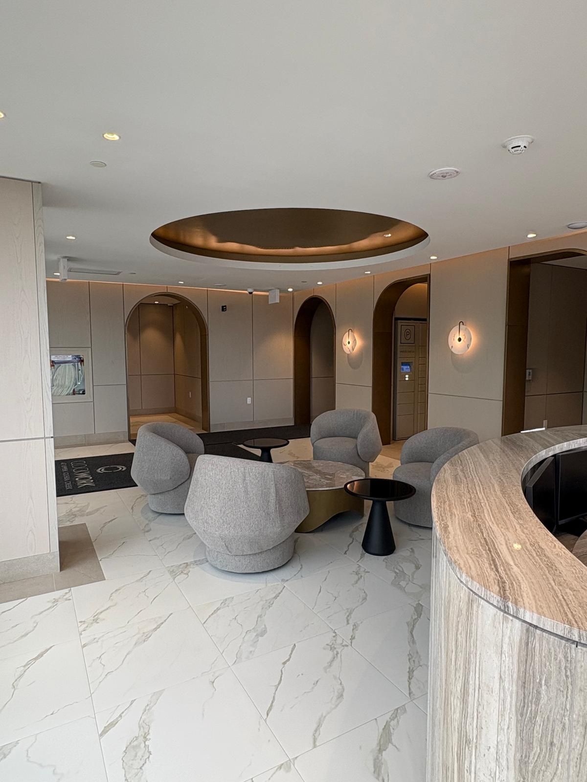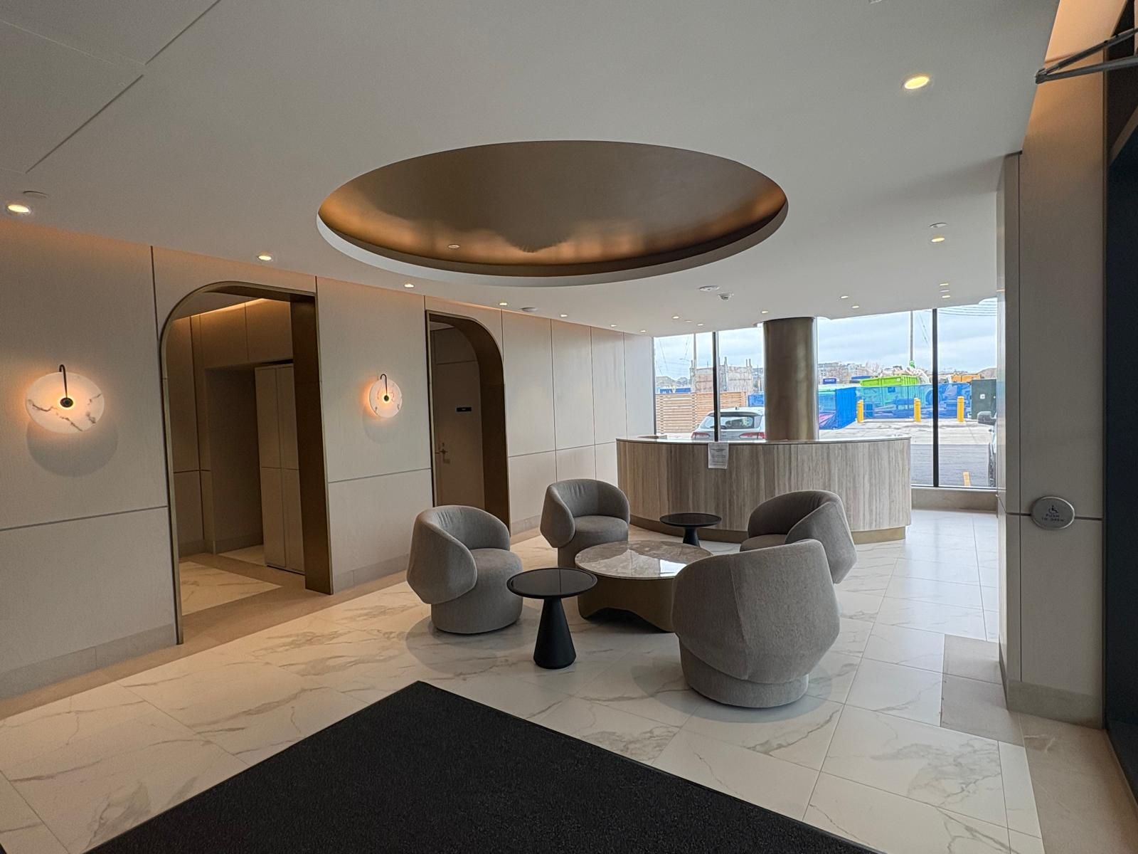 • Bright open-concept layout with 9-foot ceilings and large windows.