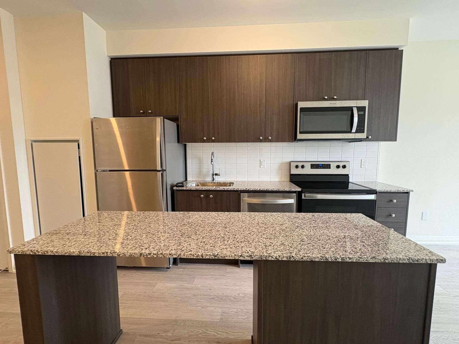 Welcome to exceptional modern living in the heart of oakville's prestigious community. Built by mattamy homes, 1-bedroom plus den condo offers the perfect blend of style, comfort, and functionality. Thoughtfully designed with an open-concept layout, this bright and spacious suite features soaring 9-foot smooth ceilings, elegant laminate flooring, and expansive windows that fill the space with natural light. The sleek contemporary kitchen is equipped with premium stainless steel appliances, quartz countertops, stylish backsplash, and a large centre island with additional storage ideal for both everyday living and entertaining. The versatile den provides a perfect space for a home office or study area, catering to today's work-from-home lifestyle. Enjoy the convenience of in-suite laundry, one underground parking spot, and a private storage locker. Residents will love access to exceptional building amenities including a fully equipped fitness centre, pet spa, party room, and more. Perfectly located just minutes from major highways (403, qew & 407), top-rated schools, parks, shopping, dining, and public transit this is a rare opportunity to experience stylish, carefree condo living in one of oakville's most desirable neighbourhoods. Experience luxury living, a must see to believe, this stunning condo is guaranteed to surpass your every expectation!