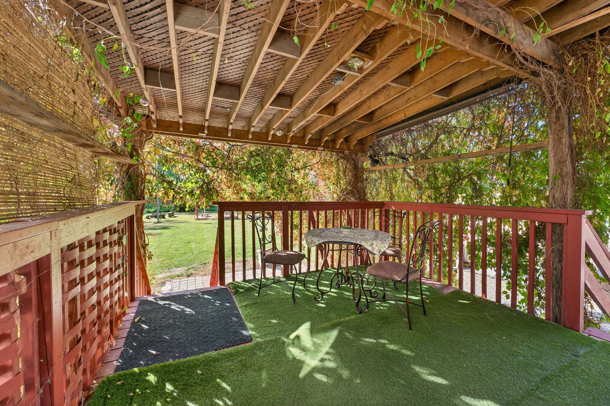 • Outdoor deck with pergola, ideal for entertaining and relaxing.