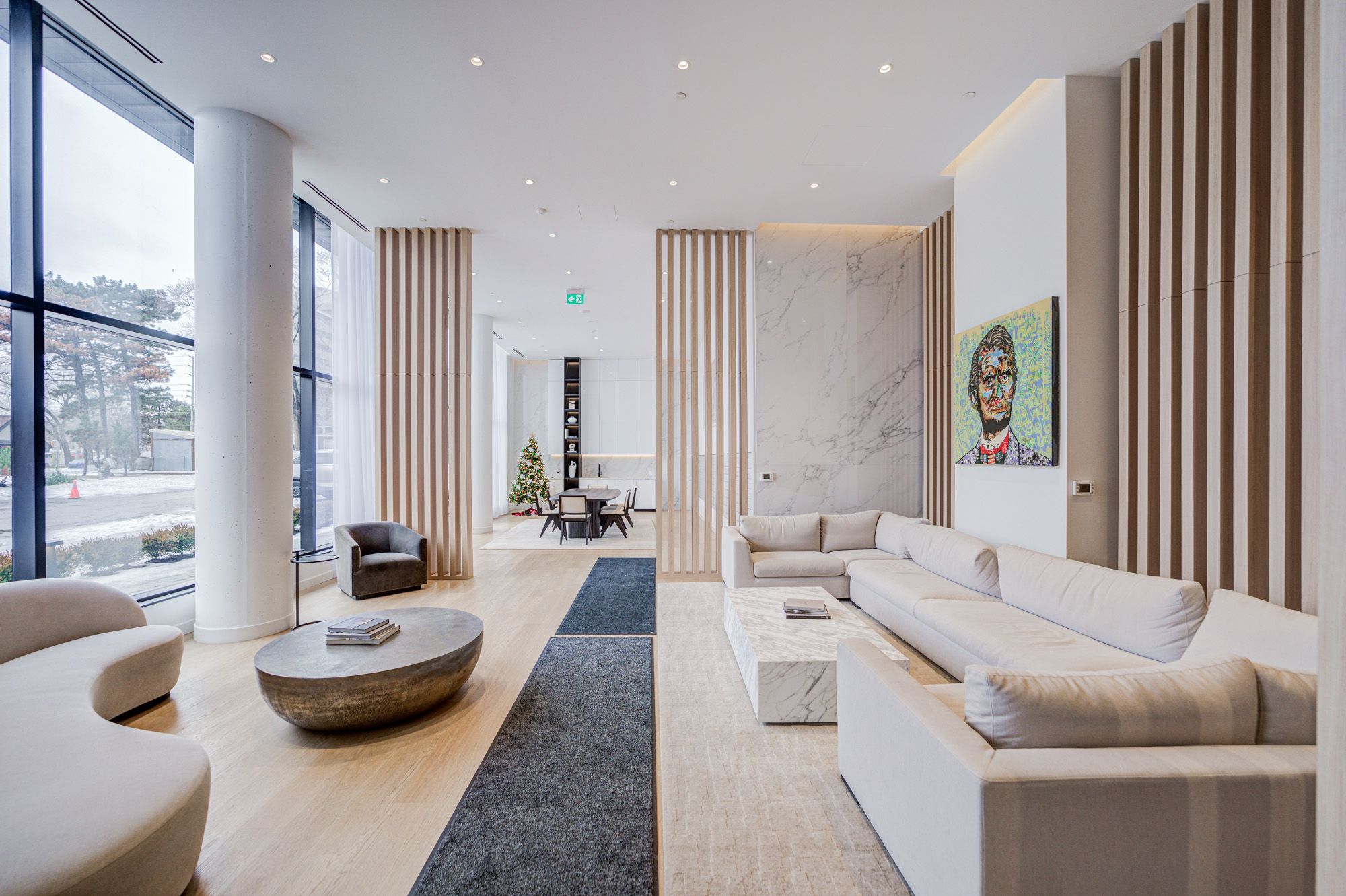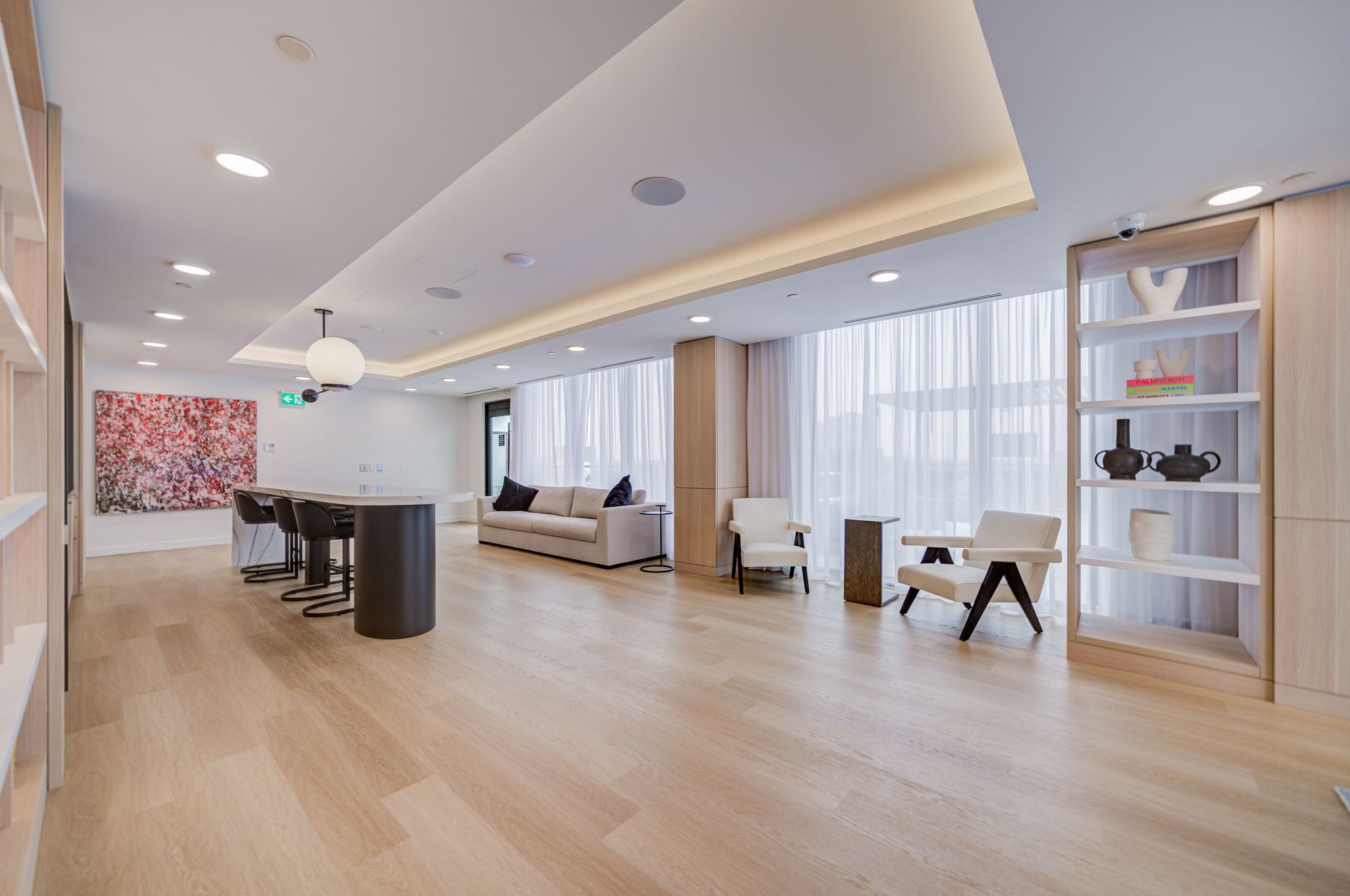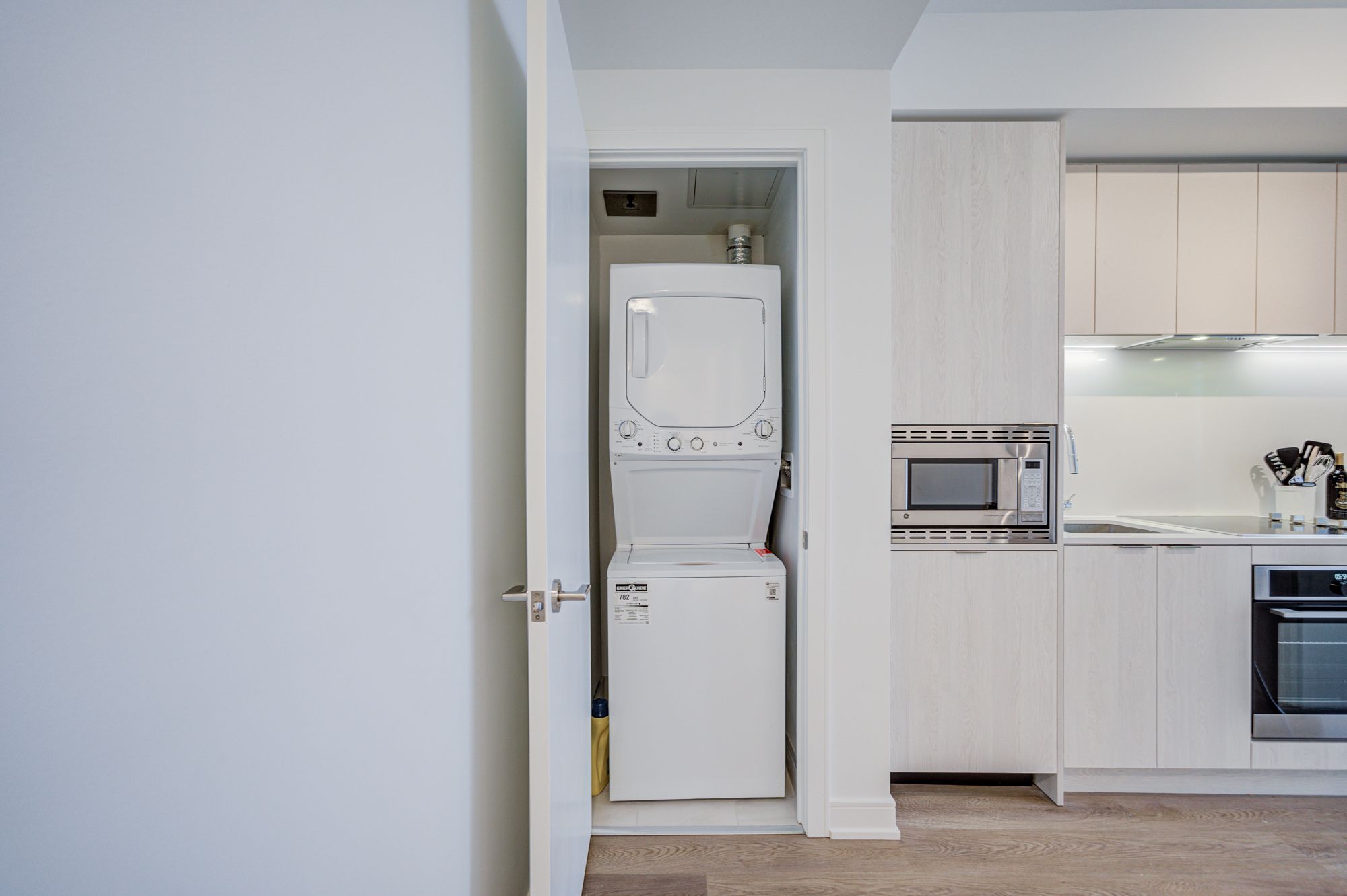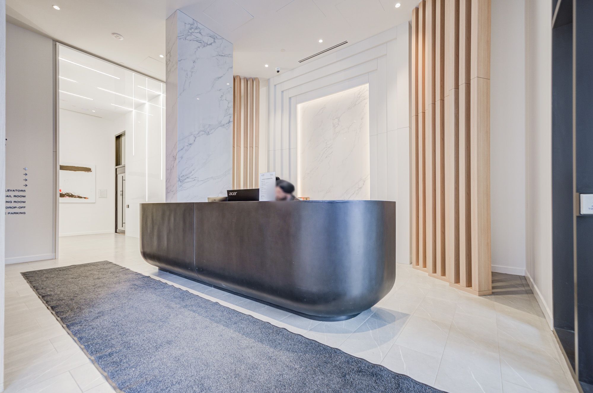 • Building amenities include fitness room, co-working lounge, and rooftop BBQ area.