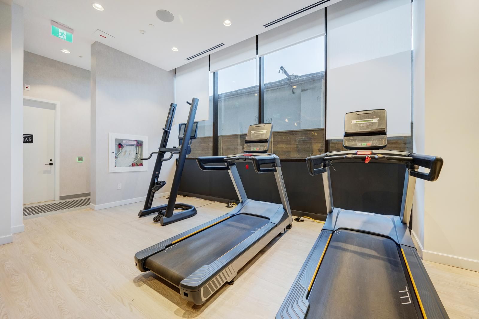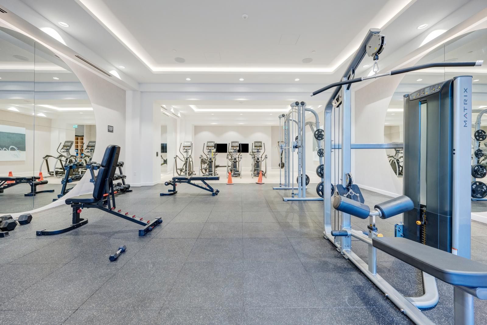 • Upscale building amenities include fitness center, concierge, and rooftop terrace.
