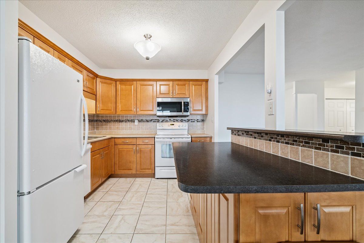 • Generous living room connects to bright, updated eat-in kitchen with ample space.