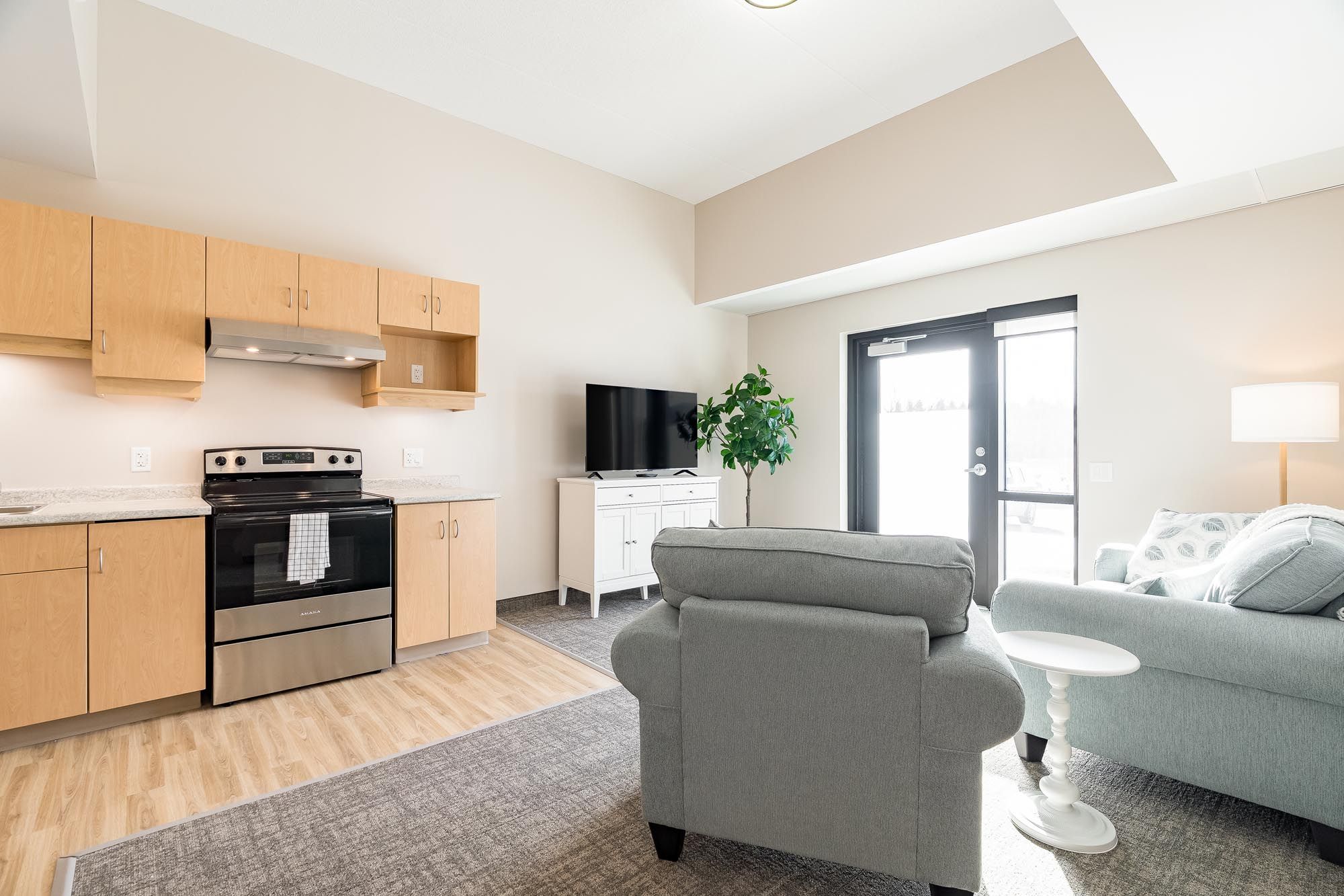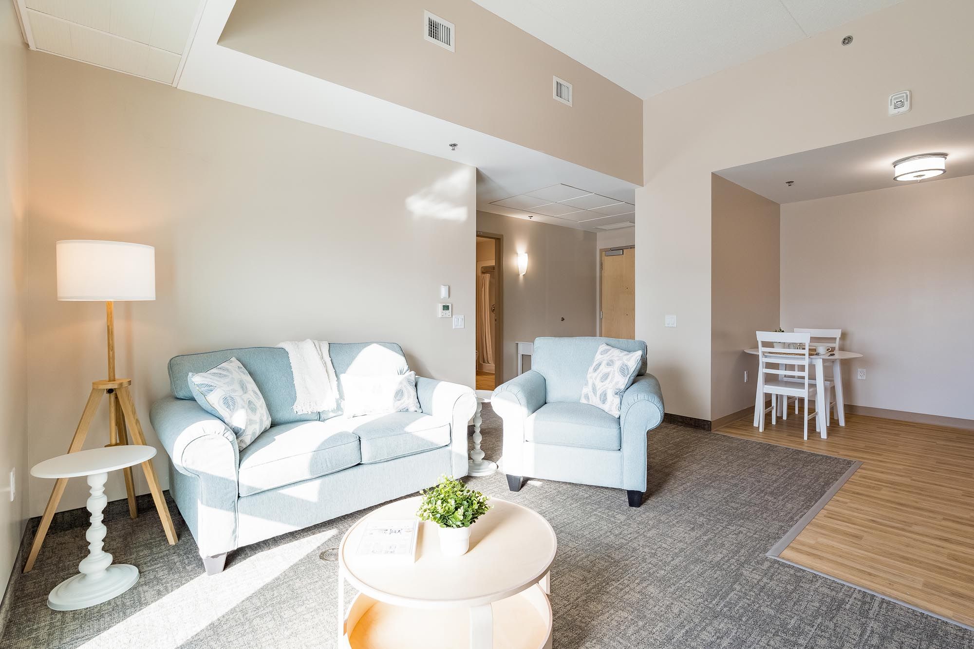 • Inviting one-bedroom suite designed for senior-inspired living with a shared courtyard.