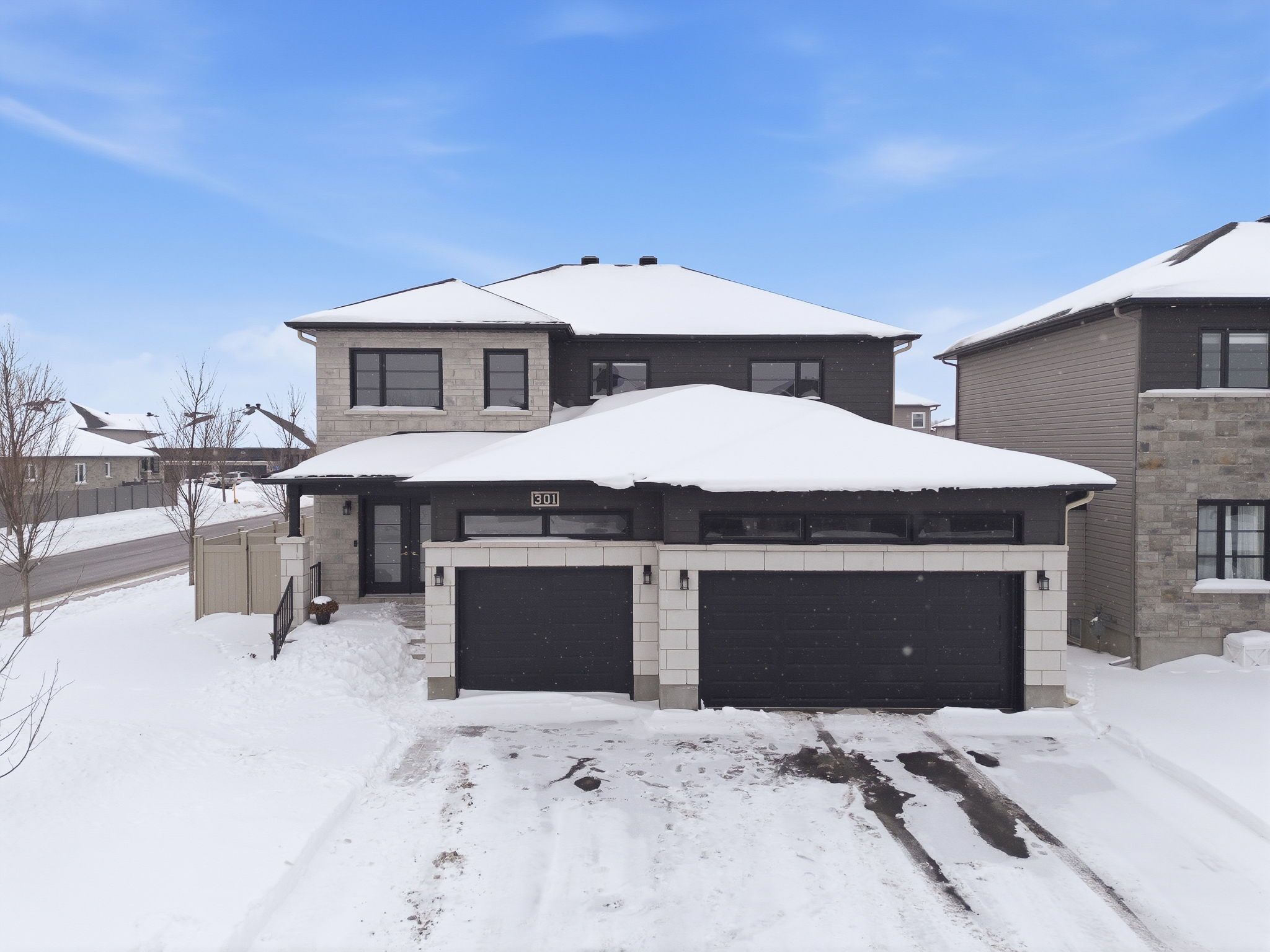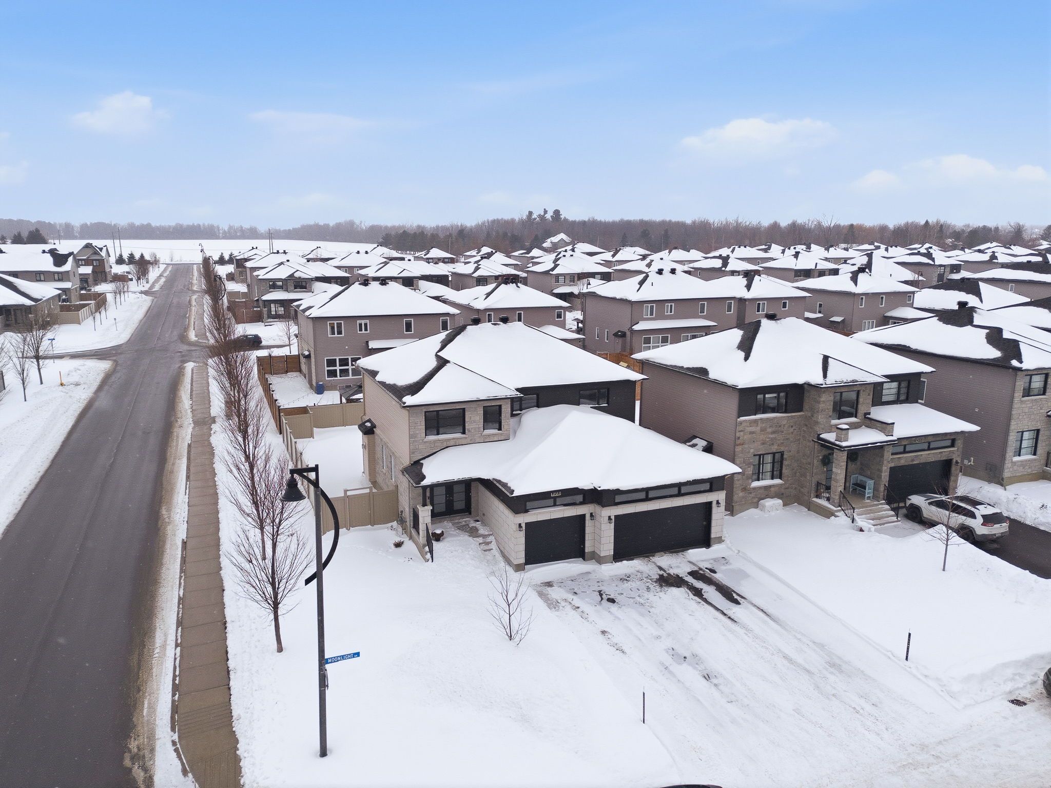 Welcome to 301 moonlight drive in the growing, family-friendly community of russell. This newly built 4-bedroom, 3-bathroom home offers a perfect blend of modern finishes, thoughtful design, and everyday functionality. Step inside to find luxury vinyl flooring flowing seamlessly through the living, dining, kitchen, and office spaces. A vertically stacked fireplace brings warmth and contemporary style to the living room. The kitchen is both stylish and practical, featuring matte luxe black velvet cabinetry, a double bowl black sink, and ample workspace for daily living and entertaining. Convenience continues with a dedicated laundry room, a spacious double car garage, and a well-designed layout ideal for families or professionals working from home. Upstairs, the primary bedroom offers a private ensuite, while the unfinished basement provides endless potential to create the space you've always wanted. Located in a safe, welcoming neighbourhood close to schools, groceries, and everyday amenities, and just 20 minutes from ottawa, this home offers the perfect balance of comfort, style, and location.