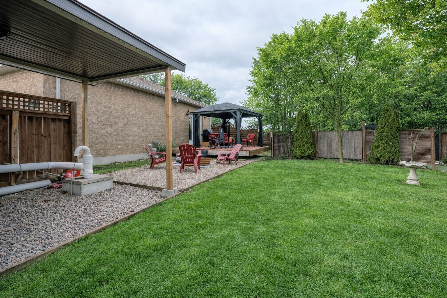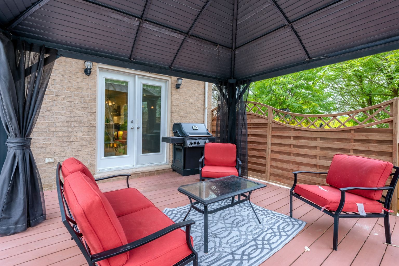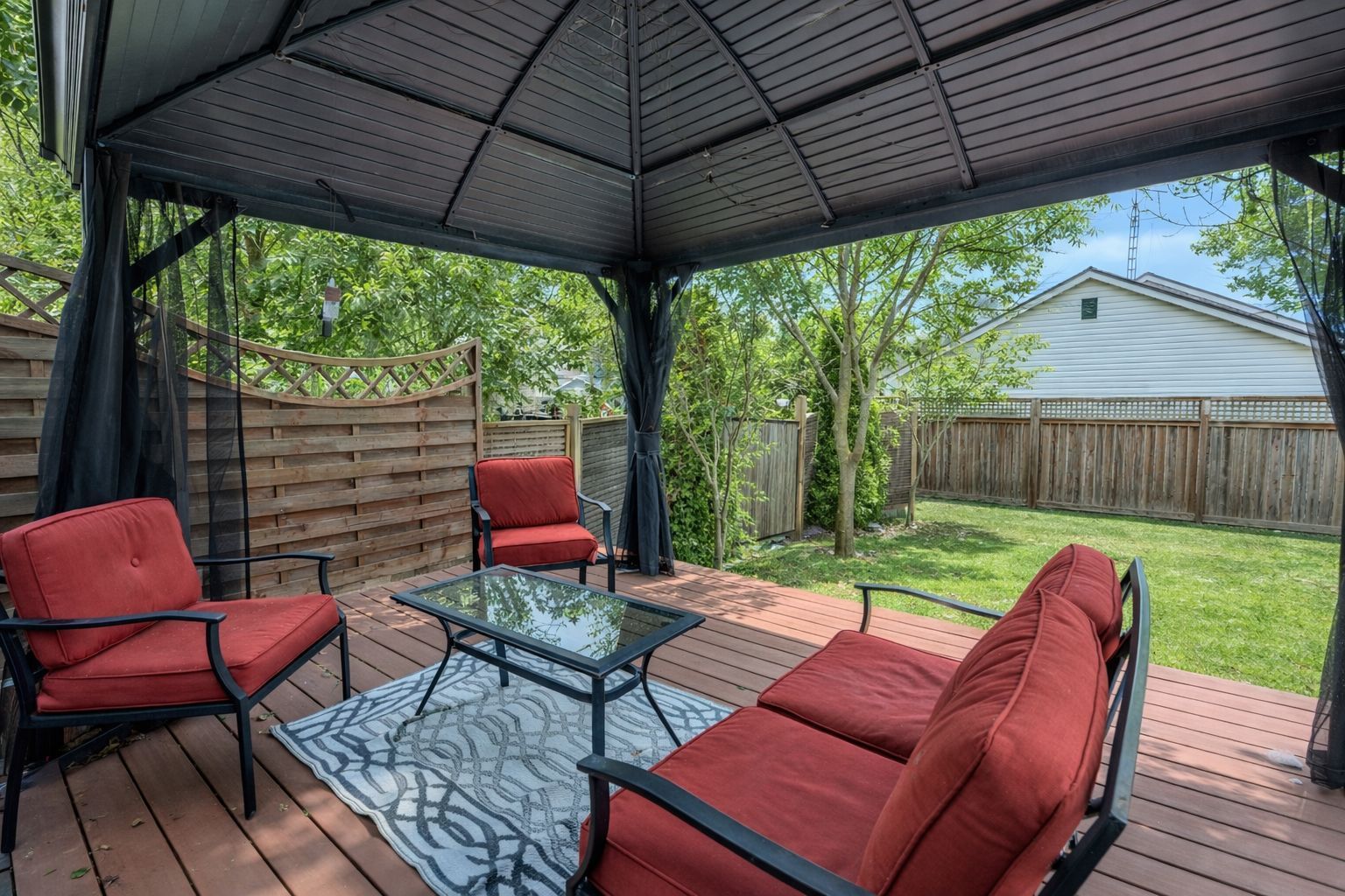 • Private fully fenced backyard with composite deck and covered gazebo.