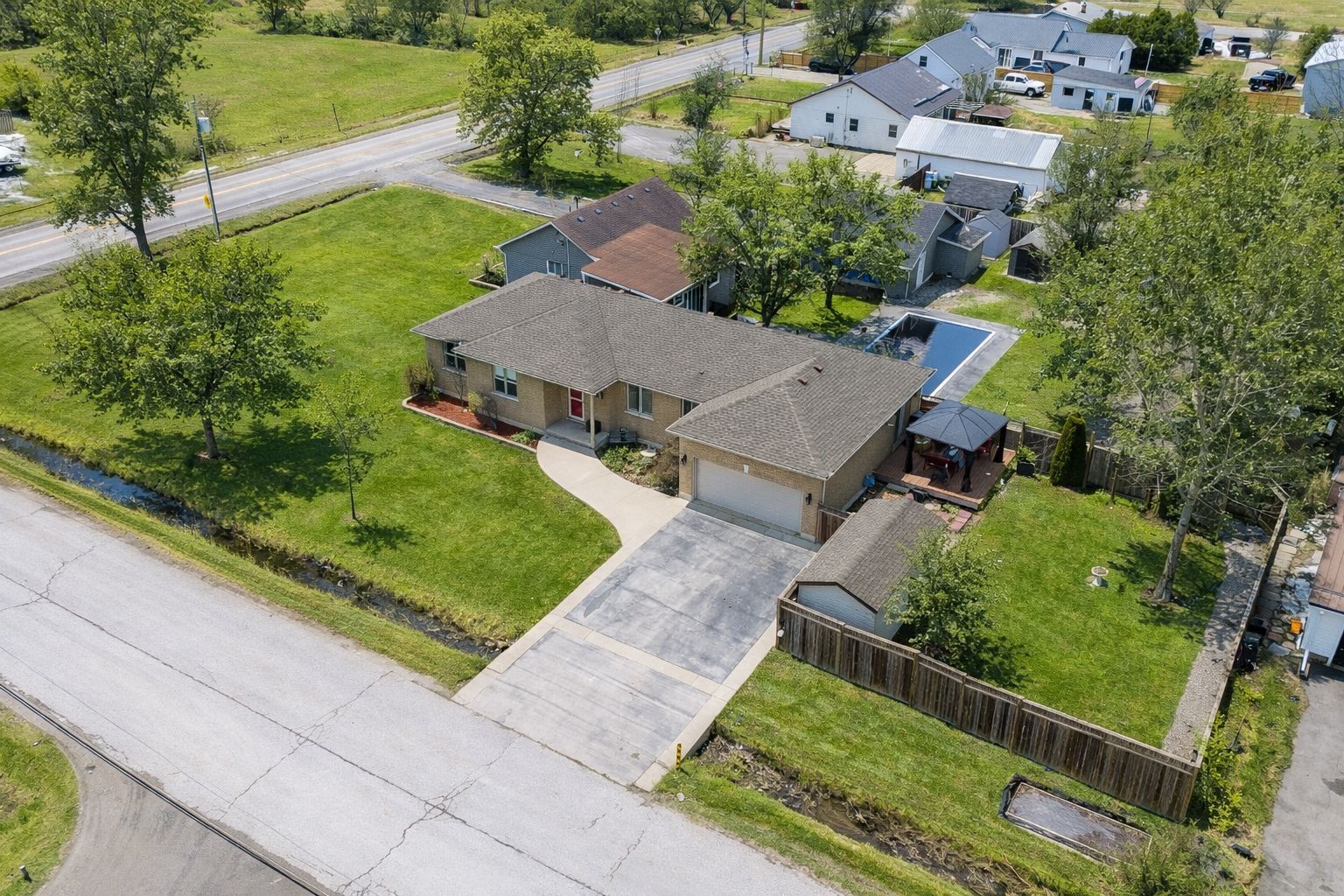 Beautiful all-brick bungalow offering over 1,620 sq ft of living space on a quiet corner lot in desirable stoney creek mountain near 3rd rd e. Built in 2002 by stoney brook custom homes, this well-maintained home features a bright layout with high ceilings, a rare attached double-car garage with heater, and parking for up to 6 vehicles. The spacious eat-in kitchen spans nearly 29 feet and offers abundant cabinetry, a large dining area, and patio doors leading to a composite deck with covered gazebo and gas bbq line-perfect for enjoying the private fully fenced backyard. The main floor includes three generous bedrooms, including a primary suite with walk-in closet and 3-piece ensuite. The fully finished basement provides a large recreation room, utility area, and ample storage. Additional features include 200-amp breaker panel with copper wiring, 2000-gallon cistern, roof shingles replaced in 2019, jet pump and sump pump replaced approximately 4 years ago, front bedroom windows updated, and washer/dryer approximately 3 years old. No rental items. A spacious family bungalow in a quiet, sought-after neighbourhood. Rsa.