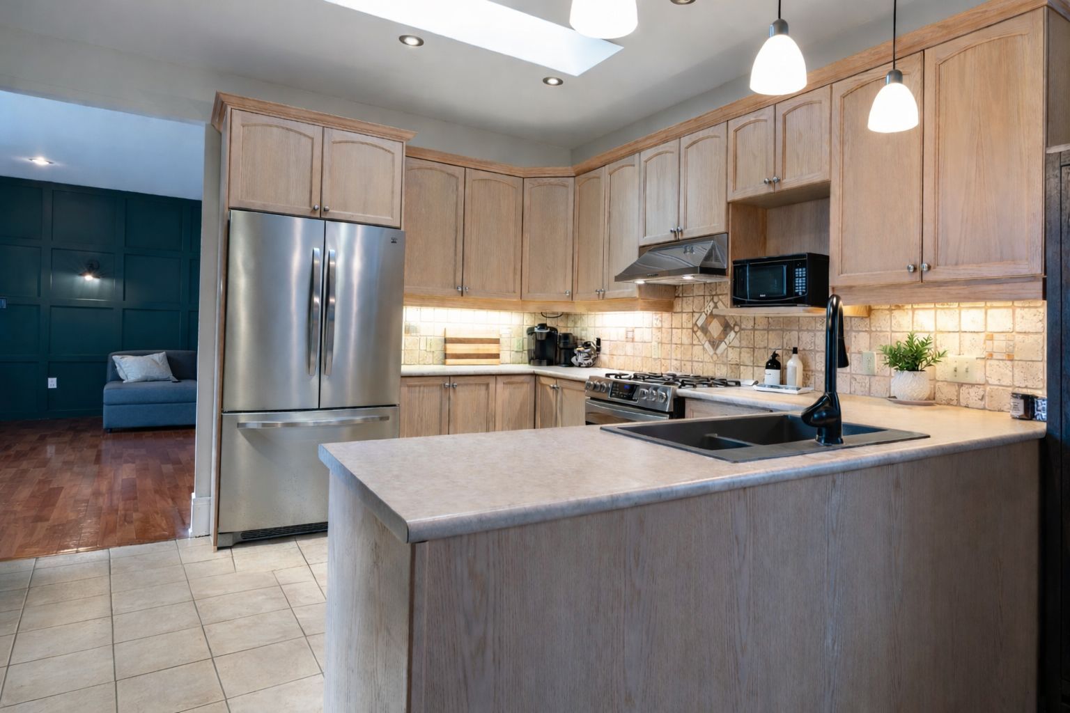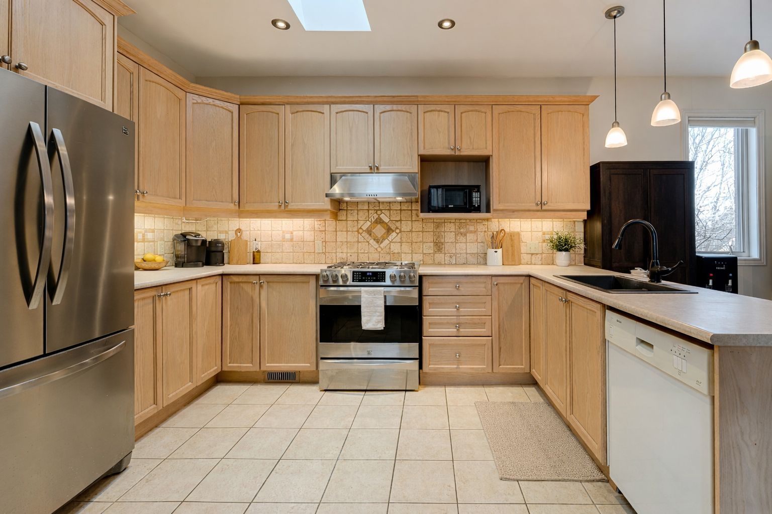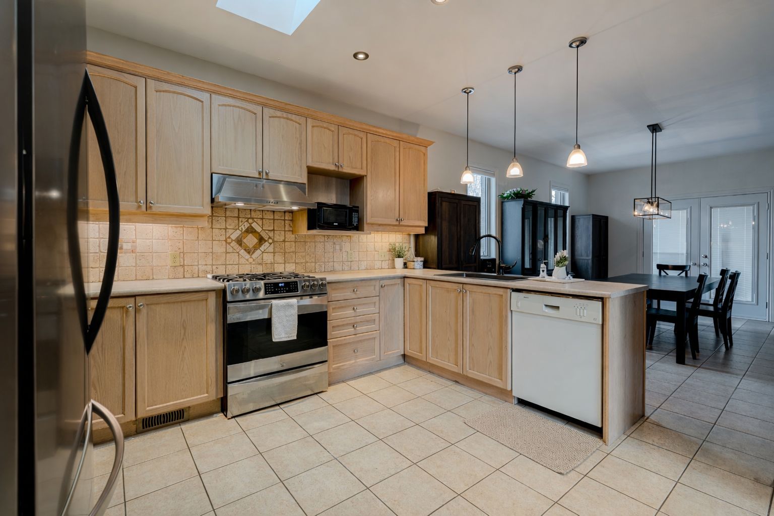 • Spacious eat-in kitchen with abundant cabinetry and patio doors to the deck.