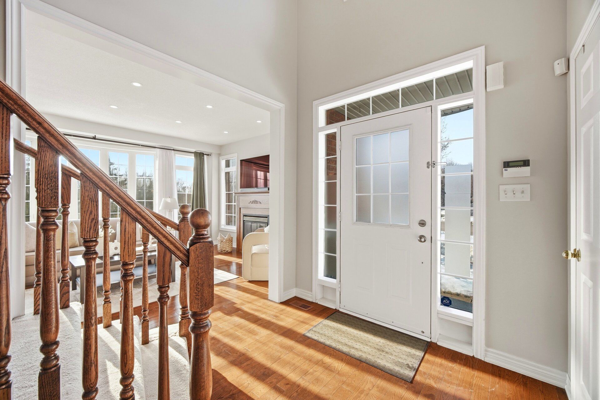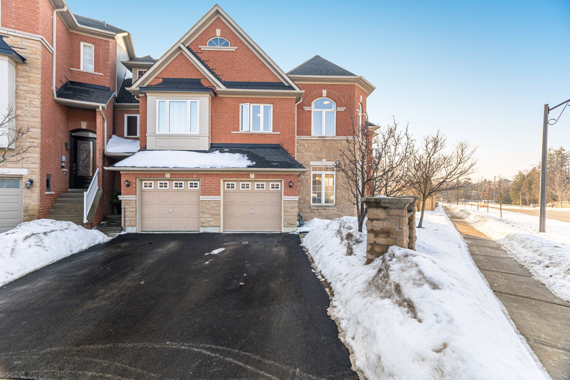 Rare end unit 3 bedroom 3 bath townhome in prestigious highbush community in pickering * almost 2000 sq. Ft. * steps to parks and trails * backs onto green space ** 76 ft. Wide rear ** 17 ft. Ceiling in grand foyer * 9 ft ceilings on main floor * hardwood flooring on main & second floor * spacious open-concept layout * living room features gas fireplace * dining room with coffered ceilings * spacious kitchen with granite countertop * kitchen gas line available* breakfast area with walk-out to balcony * primary bedroom with walk-in closet & 5-piece ensuite* walk out basement with separate entrance - easy to make basement apartment * convenient garage access * family-friendly neighbourhood close to top-rated schools, shopping & transit * ten minutes to hwy 401, 407 & go station * exceptional opportunity in a highly sought-after location * roof (6yrs) * furnace (2yrs)