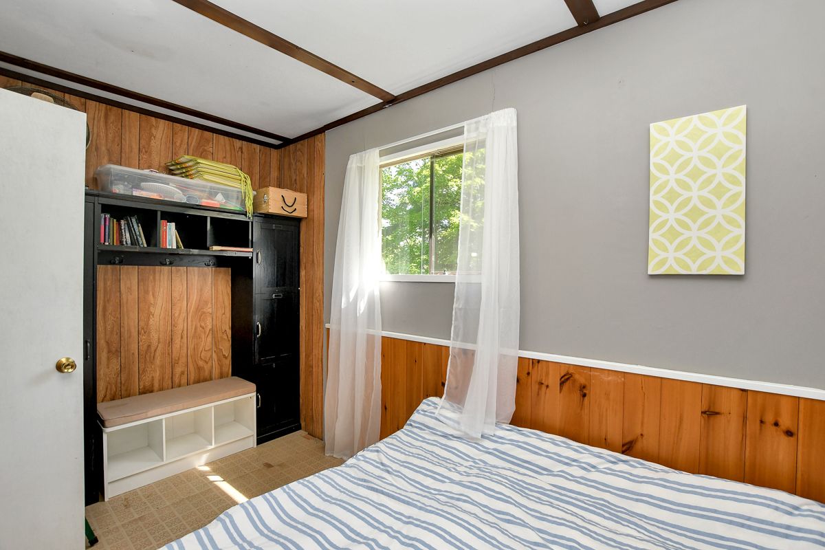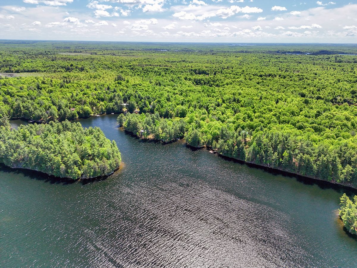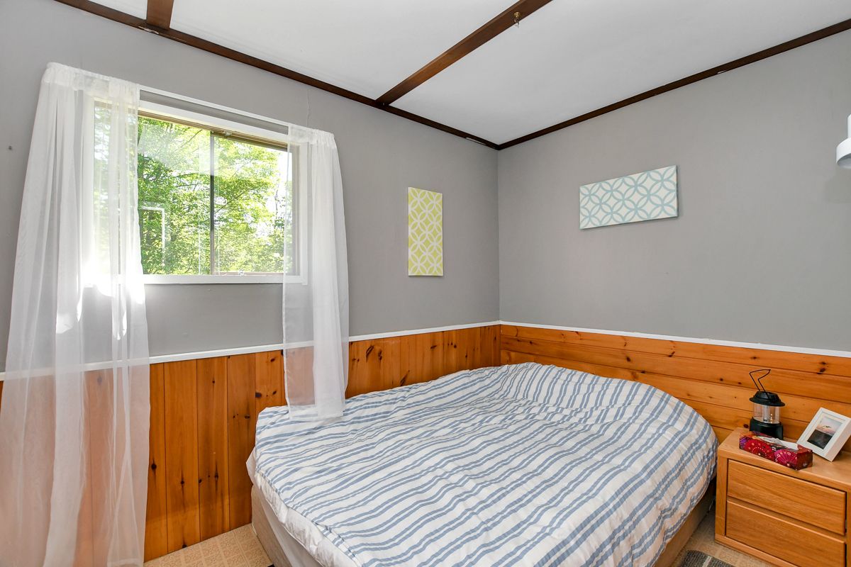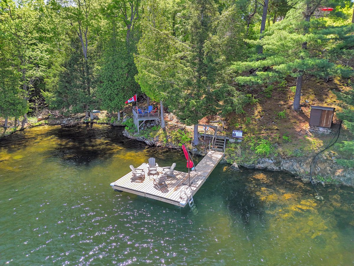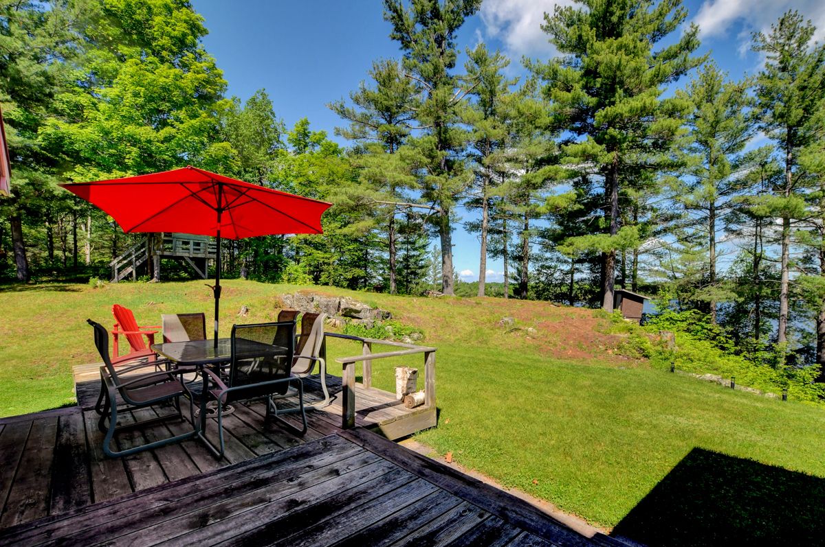 Rare opportunity to own 6. 9 acres of waterfront with approximately 850 feet of shoreline and mature mixed forest offering exceptional privacy. This rustic three-season cottage features tongue and groove pine ceilings, a durable metal roof, and an open-concept living area with expansive lake-facing windows. Three bedrooms provide cozy accommodations, while a screened sunroom and spacious deck are ideal for outdoor entertaining. Set slightly elevated, a newer staircase leads down to the water and a large dock in a private bay, perfect for swimming and boating. Property offers excellent future potential to enjoy as-is, build, or explore severance possibilities (buyer to complete due diligence with township). Water source is lake intake. Annual road maintenance fee $134. 24-hour irrevocable on all offers.