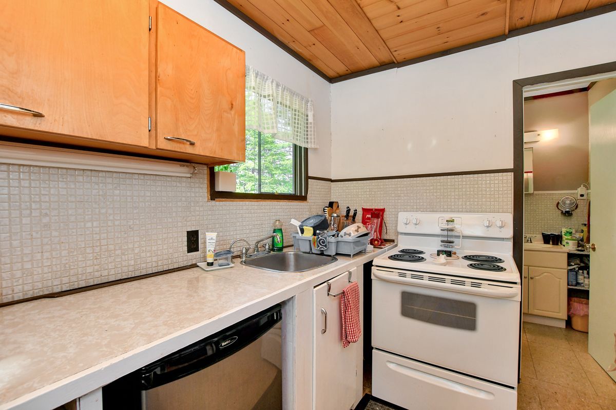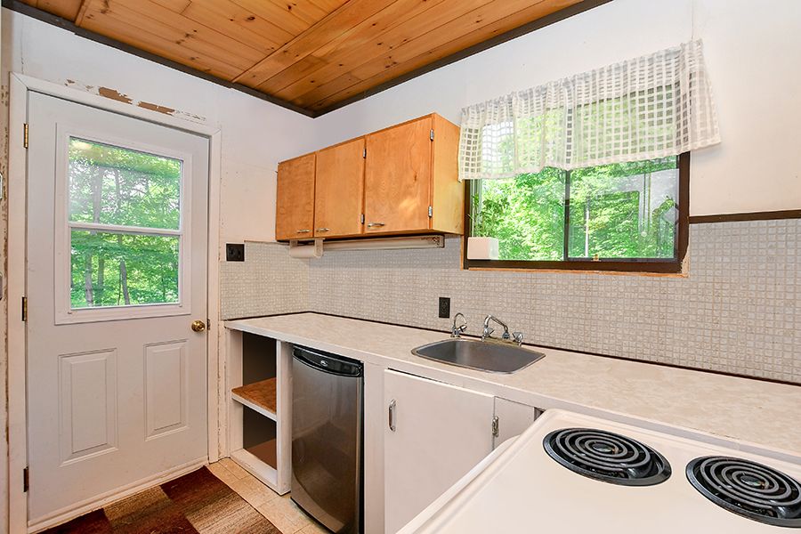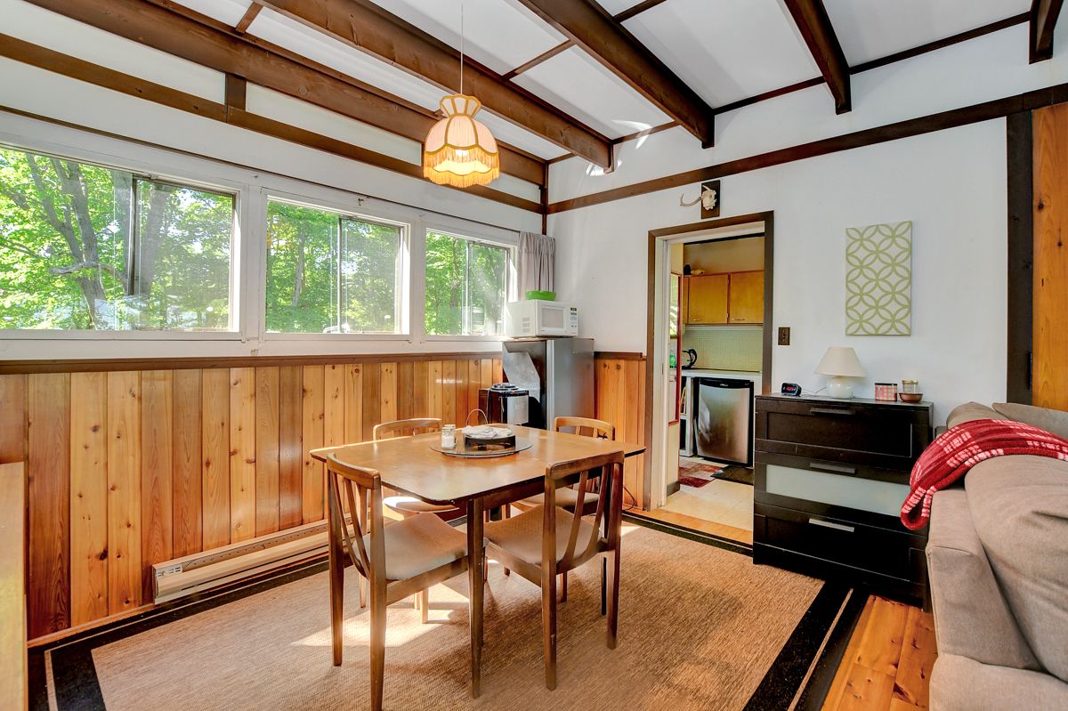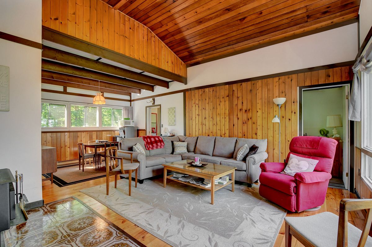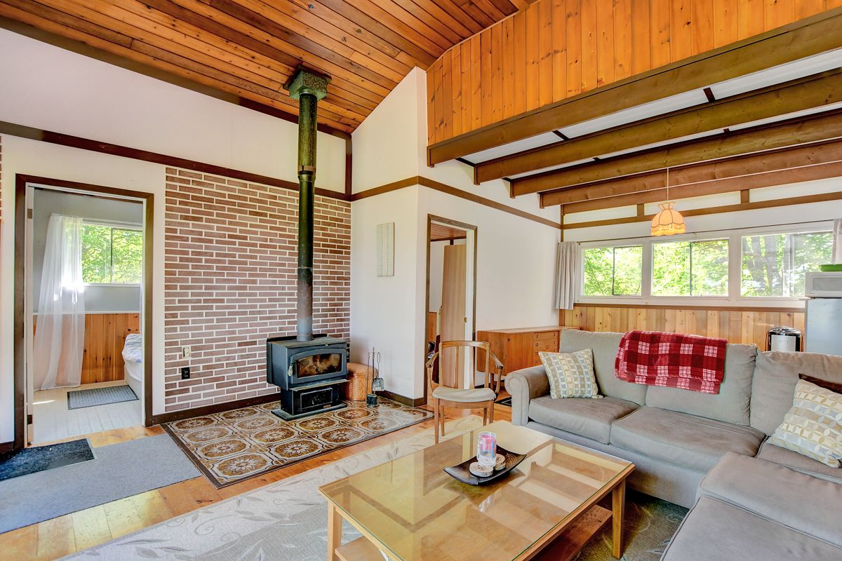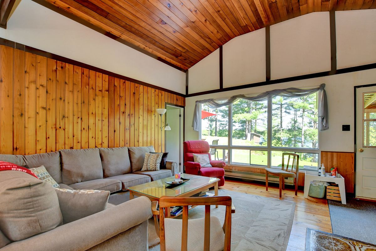 • Rustic three-season cottage with tongue and groove pine ceilings.