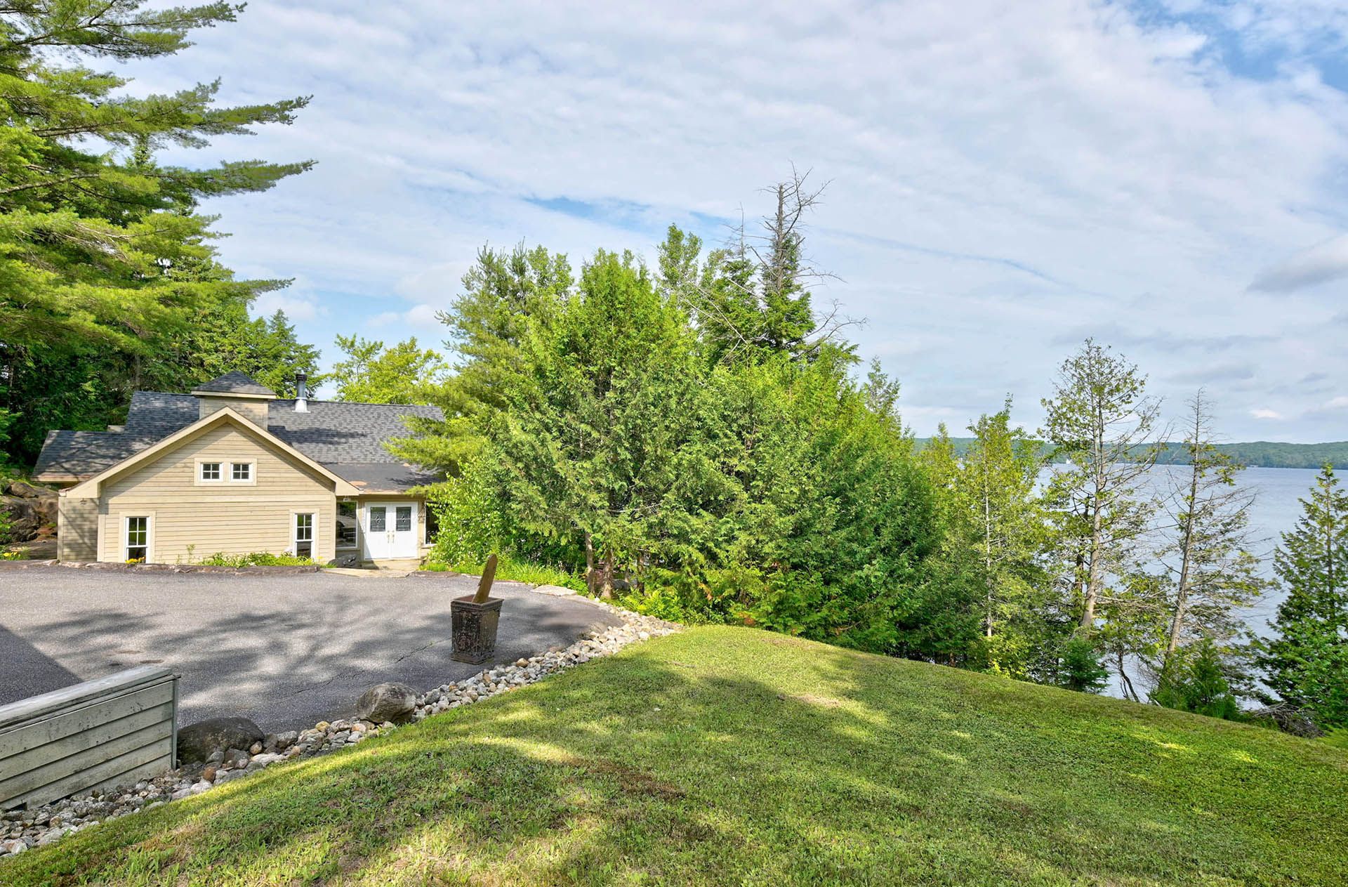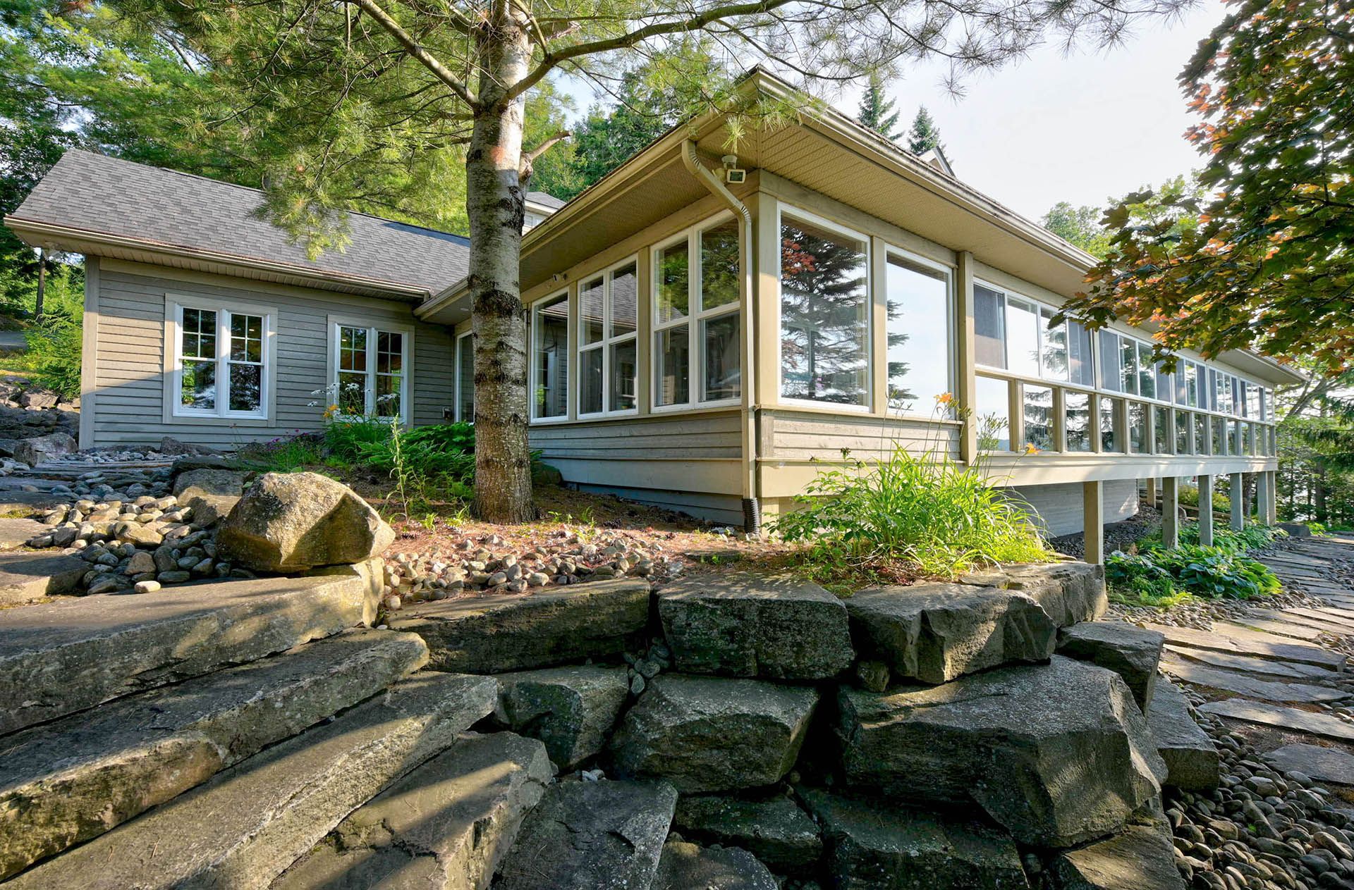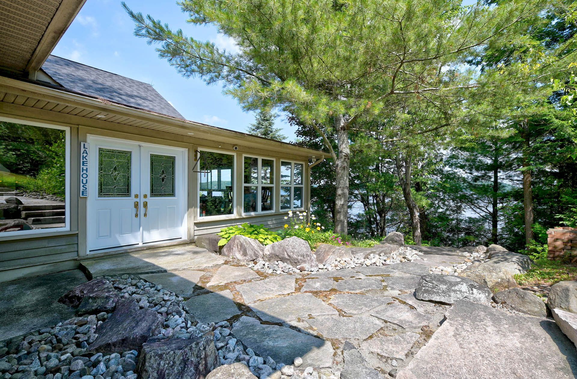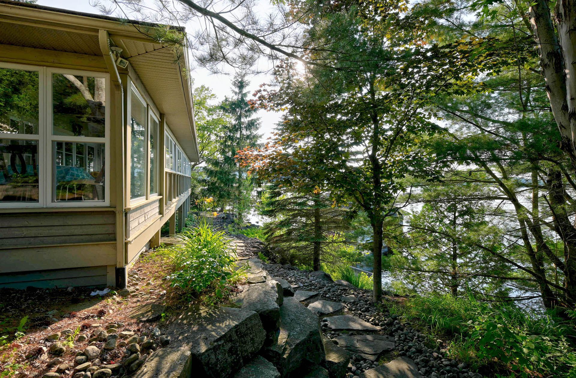 Prime lake of bays waterfront just outside baysville, only a two-hour drive from the gta, featuring 220 feet of pristine shoreline. This executive family compound offers two beautifully designed cottages. The main cottage boasts three bedrooms and two bathrooms, with a spacious open-concept great room that opens onto a 780 sq. Ft. Porch-perfect for entertaining or relaxing. The fully equipped two-bedroom and one bathroom guest cottage, complete with its own kitchen, is connected by professionally crafted stone pathways and patios, creating a seamless and inviting retreat for family and guests. Just steps from the water, the property includes a two-slip boathouse and generous dock, ideal for swimming, boating, and lakeside living. Enjoy breathtaking sunsets in this serene, private setting, while remaining just minutes from bigwin island.