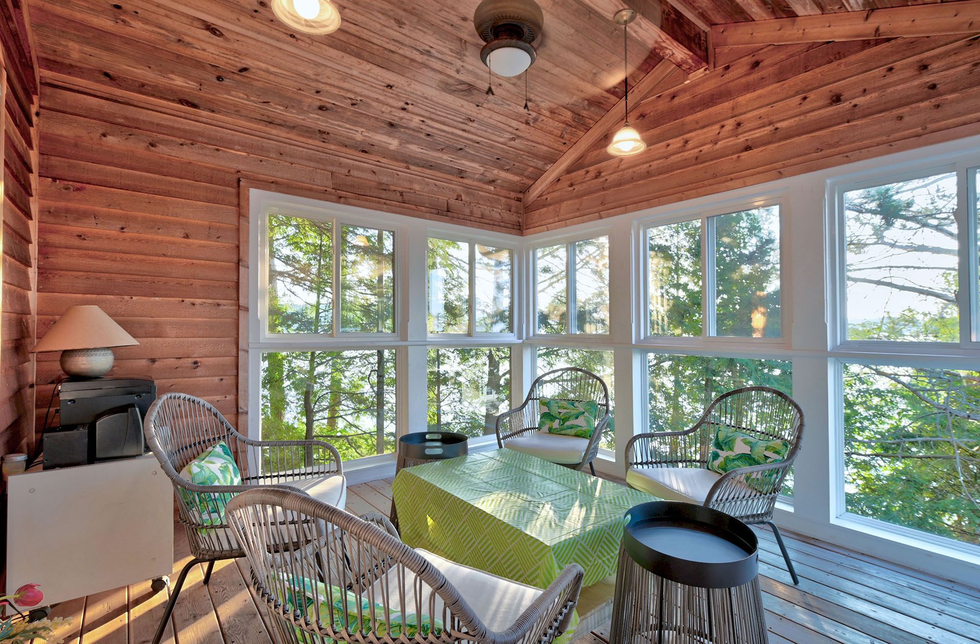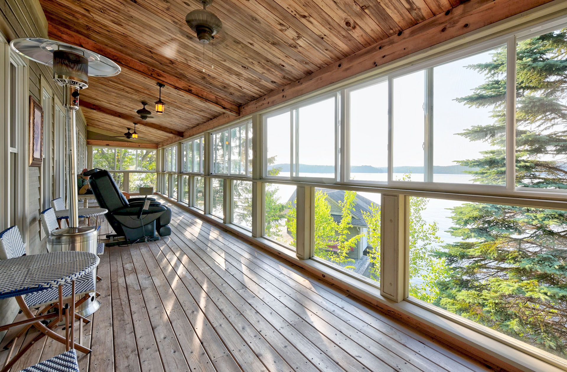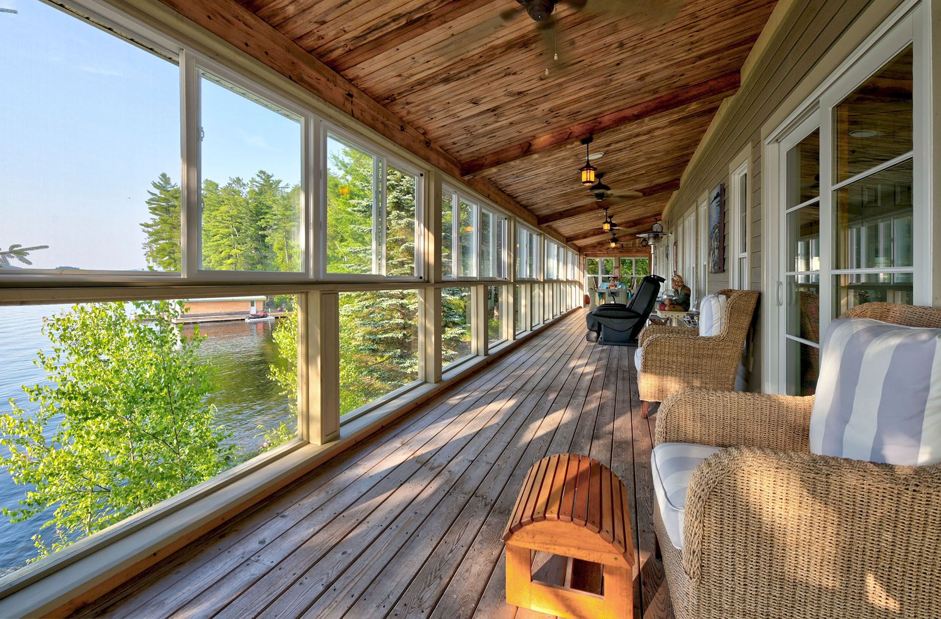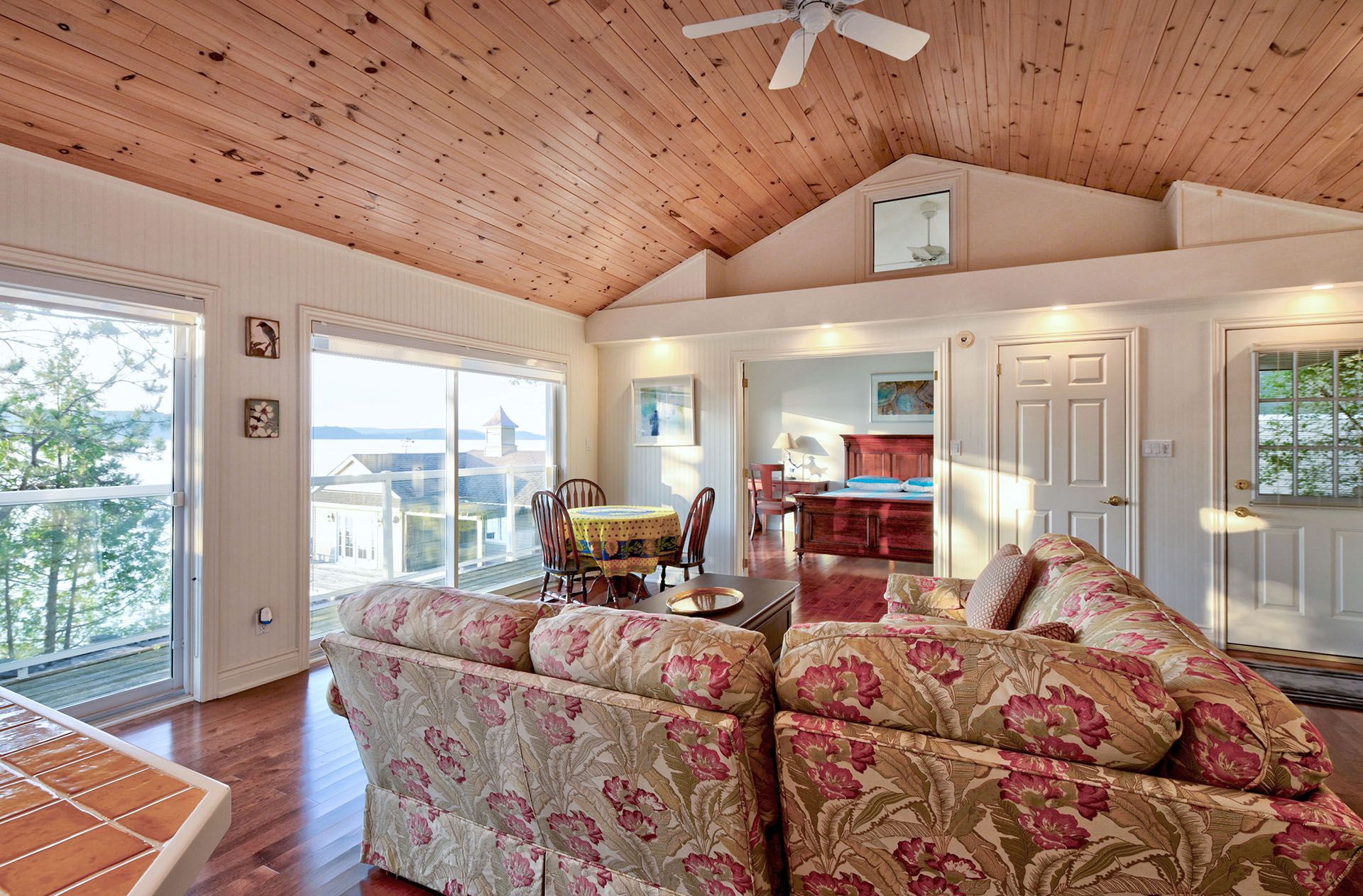 • Main cottage features open-concept living and large porch for relaxing.