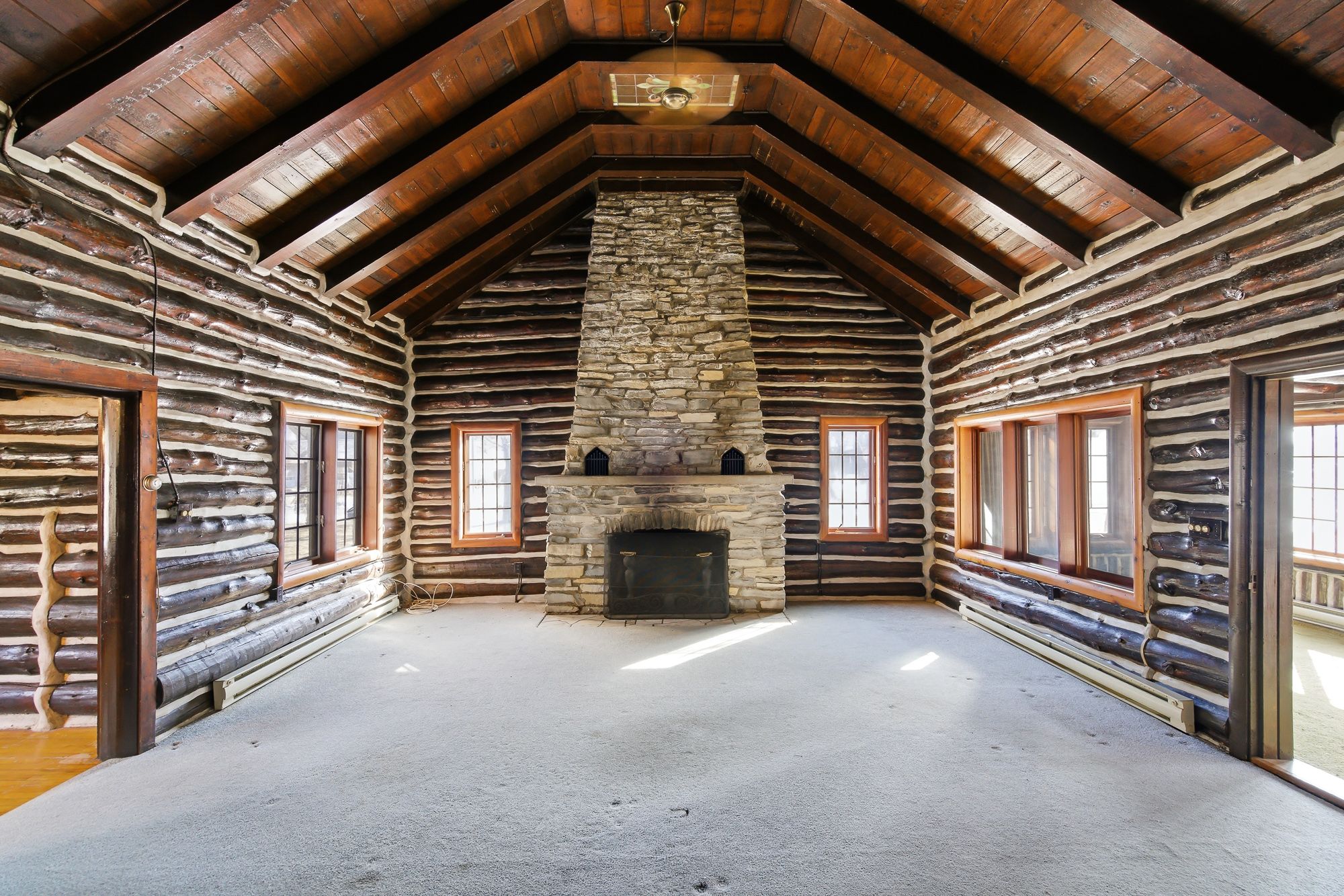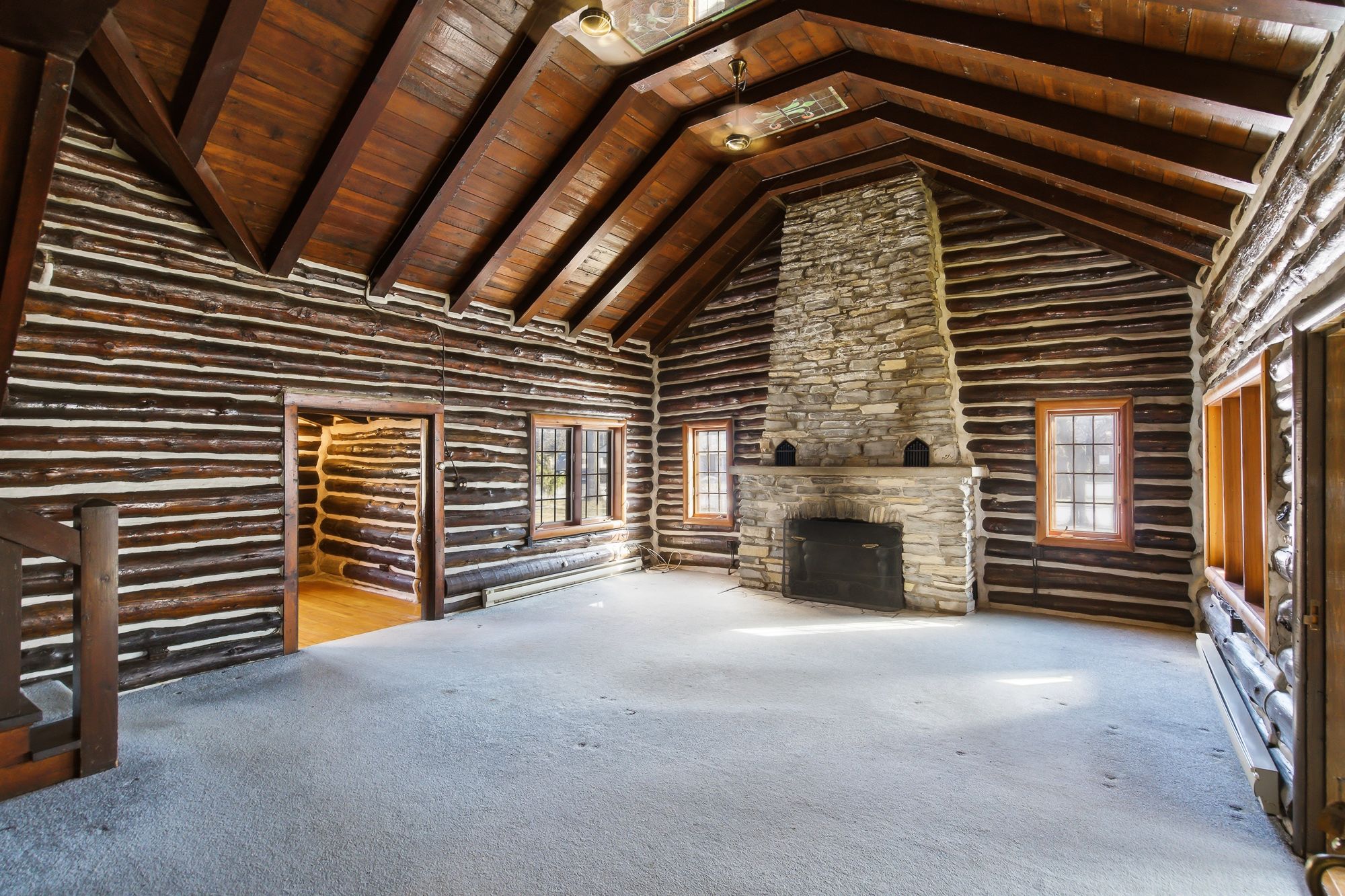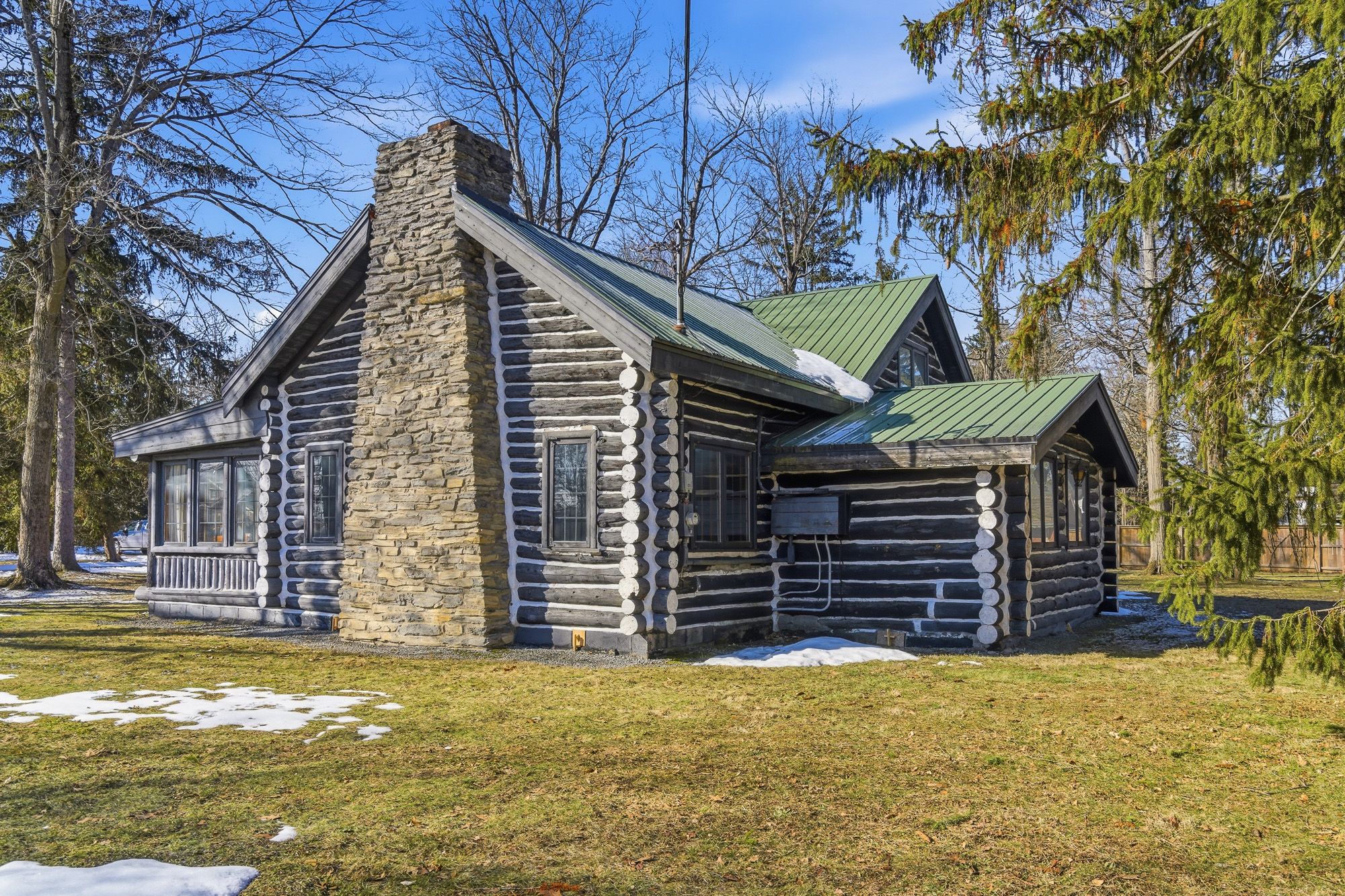 Tucked away in the cherished community of oakhill forest - perfectly positioned between ridgeway and fort erie - this original 1. 5-storey log cabin offers the kind of space and serenity that feels increasingly rare. Set on nearly an acre of land, this property invites a slower, more meaningful lifestyle. Mature trees. Room to roam. A setting that whispers privacy and possibility with a detached garage and parking for 6+ vehicles. Inside, character takes center stage. The main floor features two bedrooms, a 4-piece bath, kitchen, and a den/sunroom ideal for morning coffee or quiet evenings. But the true showpiece? The breathtaking great room. Soaring ceilings. Rich hardwood floors. And a dramatic, stone floor-to-ceiling original wood-burning fireplace that anchors the space with warmth and timeless charm. Upstairs, a stunning open balcony overlooks the great room below - a space that feels straight out of a classic lodge retreat. Two additional bedrooms with walk-in closets offer comfort and flexibility for family or guests. Additional highlights: hardwood flooring throughout, municipal water, septic system (no sewer plans for the area, helping preserve the rural integrity of the community) yes, there are updates to consider - but homes like this aren't built anymore. The bones. The craftsmanship. The atmosphere. With vision, this property becomes something truly extraordinary. If you've been waiting for character, space, and a lifestyle that feels grounded and authentic - this is it.