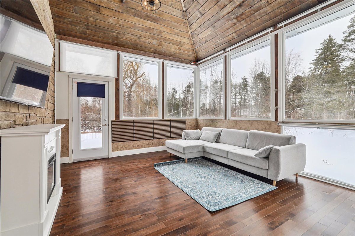 • Relax in the beautiful 3-season sunroom with views of the private pond.