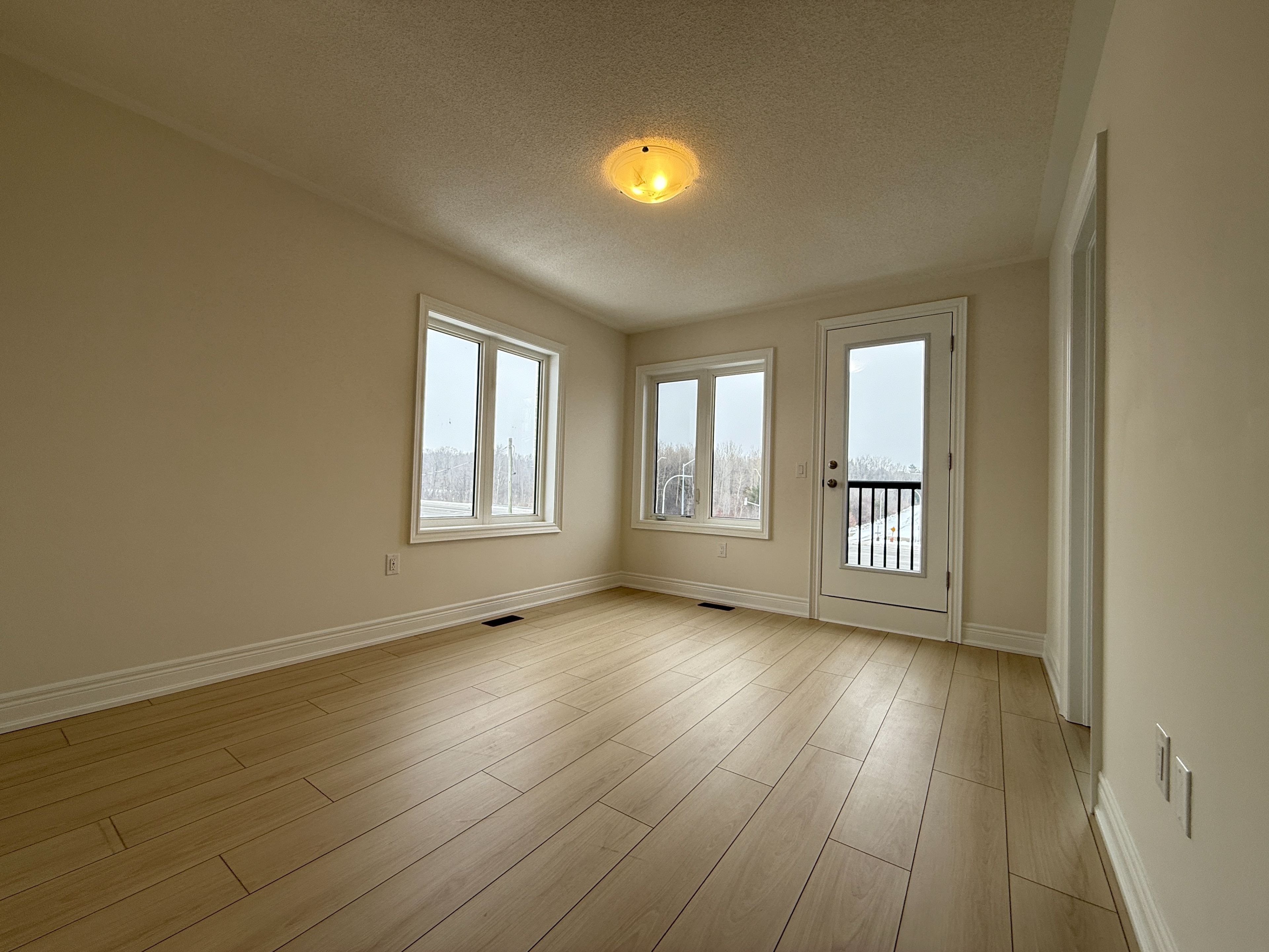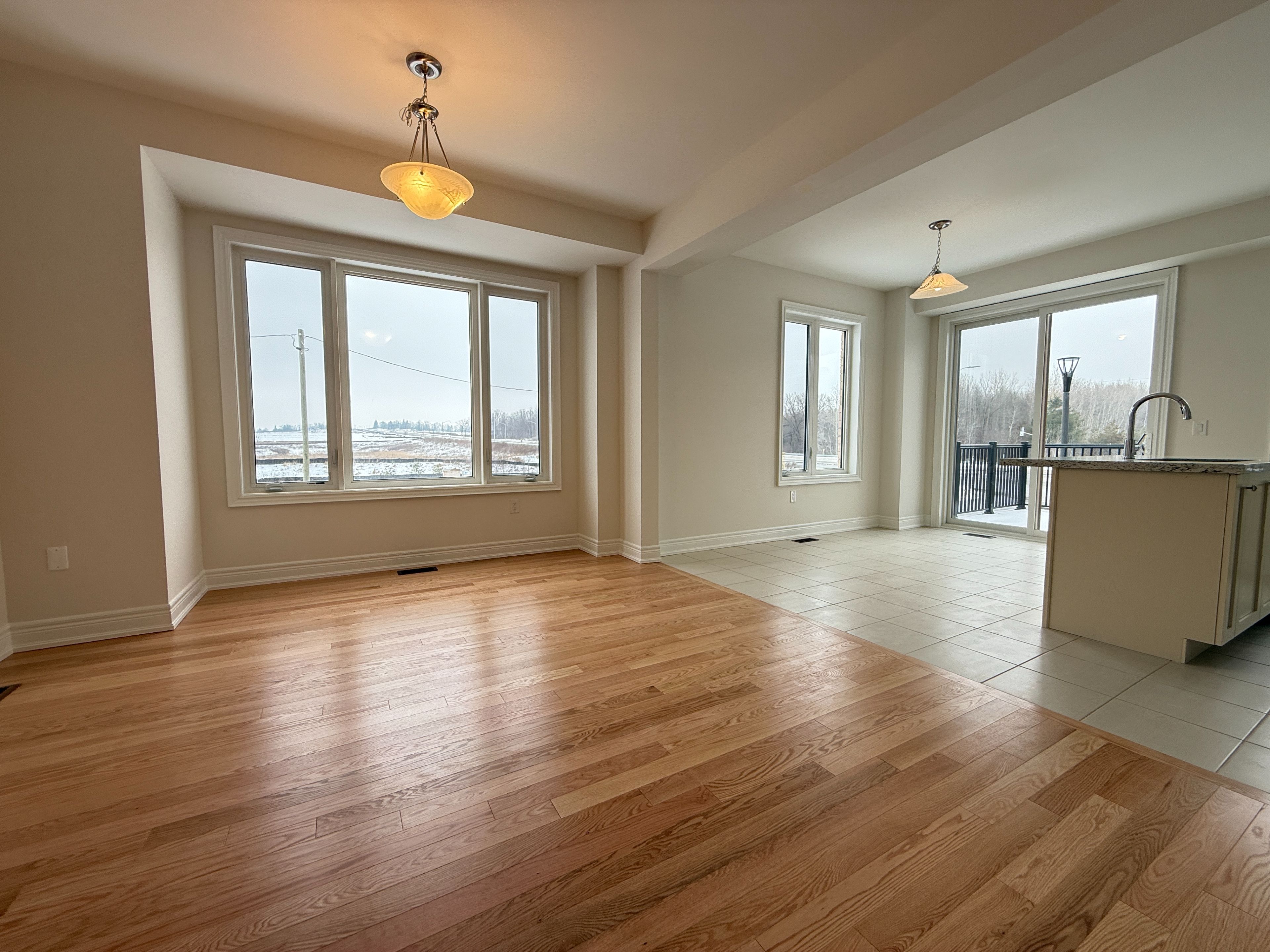 Brand new, never lived in bright & spacious 4+1 bedroom, 2249 sq. Ft. Corner end-unit on premium lot overlooking park! Discover an incredible opportunity in one of pickering's most coveted neighborhoods surrounded by elegant detached family homes. This bright, spacious corner end-unit freehold townhome sits on a premium corner lot. Bathed in natural light from three sides, the thoughtfully designed layout includes convenient garage access and a versatile main-floor office or 5th bedroom with its own 4-piece ensuite. Ideal for guests, in-laws, or a private workspace. At the heart of the home is a stunning open-concept kitchen, complete with granite countertops, a large center island, and generous space to accommodate a growing family. Step outside onto your private balcony. Perfect for effortless outdoor entertaining. Hardwood flooring flows throughout the main and second, enhancing the warm, welcoming atmosphere of the spacious dining room and inviting great room. Designed for seamless hosting and day-to-day living. The upper level boasts four generously sized bedrooms, including a luxurious primary suite with a walk-in closet and a spa-like 3-piece ensuite featuring an oversized glass shower. Enjoy peace of mind with a tarion transferable warranty and an unbeatable location close to parks, trails, schools, shopping, and quick access to highways 401, 407, and go transit. Experience the best of contemporary living in this stunning, upgraded home backing onto nature in the vibrant new seaton community of pickering.