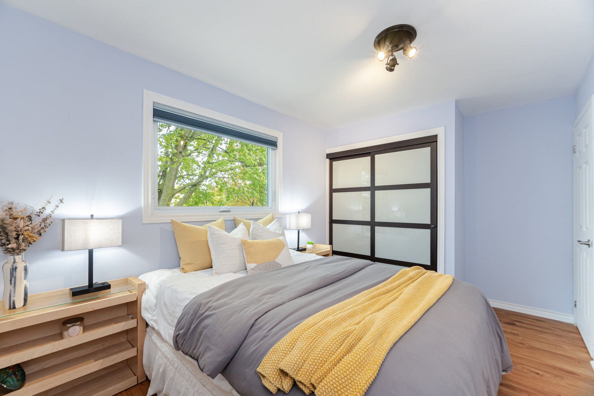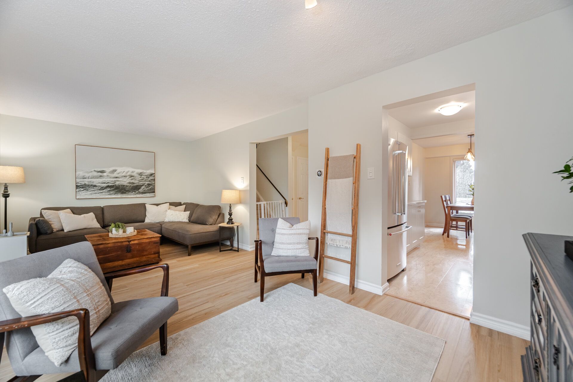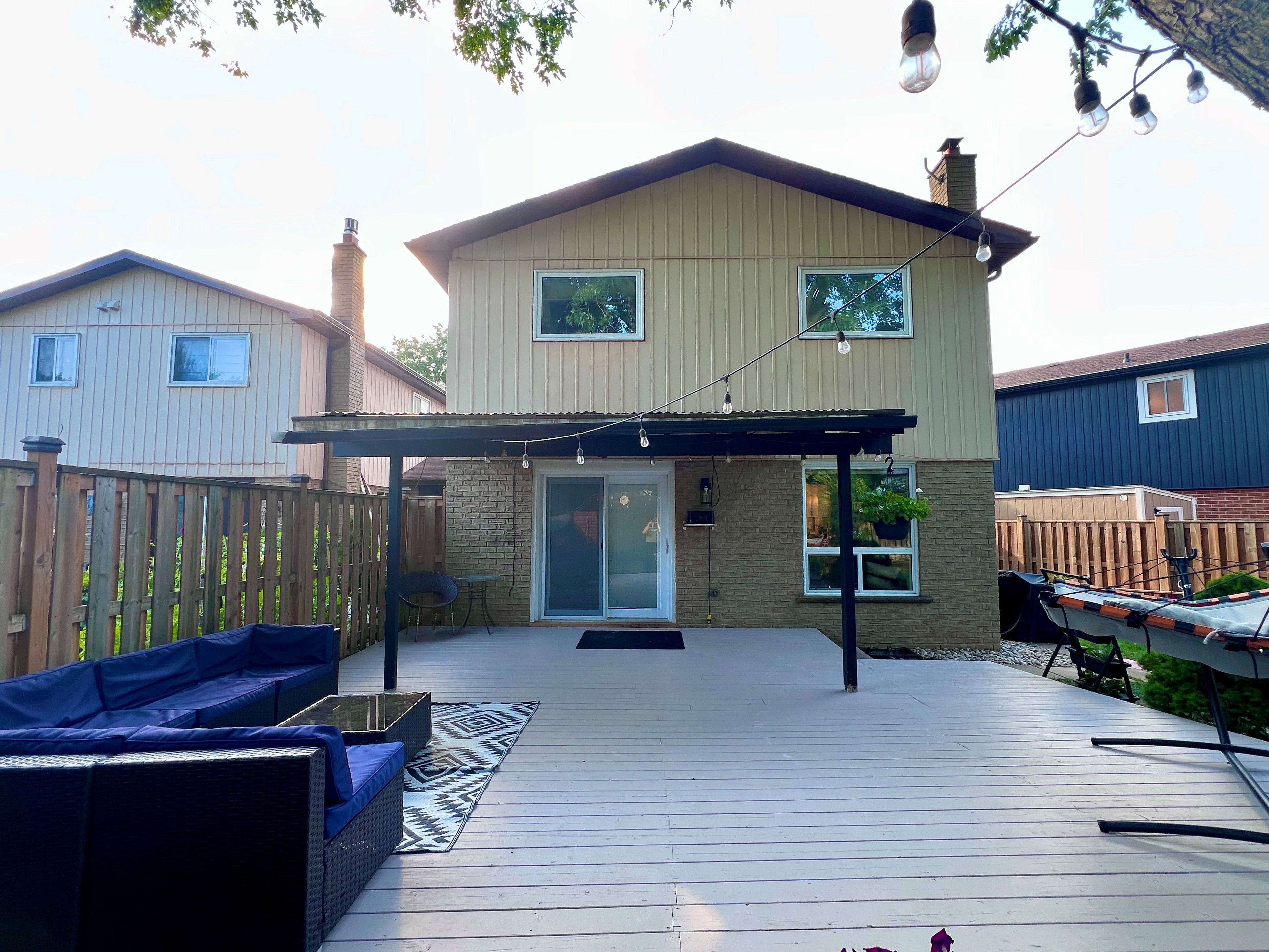 Nestled in a serene, family-friendly quiet cul de sac, this gorgeous 4-bedroom detached home, (linked only by the garage), offers the perfect blend of privacy, comfort, modern living & the feel of a detached property. Flooded with natural light, this home has been fully renovated over the past six years and features a welcoming enclosed entry foyer addition, and a thoughtfully designed layout to suit modern living. The spacious living room is large enough to be split into separate living and dining areas, offering flexibility for family life and entertaining. The heart of the home is the stunning renovated kitchen, complete with quartz countertops, modern cabinetry, and a cozy breakfast table area perfect for casual meals and morning coffee. Upstairs, you'll find four generous bedrooms and an updated bathroom with elegant finishes. The finished basement adds valuable extra living space, ideal for a rec room, home office, gym or play area. Outside, enjoy your own private retreat in the large pie-shaped backyard, featuring a deck, garden shed, and plenty of room to relax, garden, or entertain. Located close to go transit, schools, parks, and all amenities.