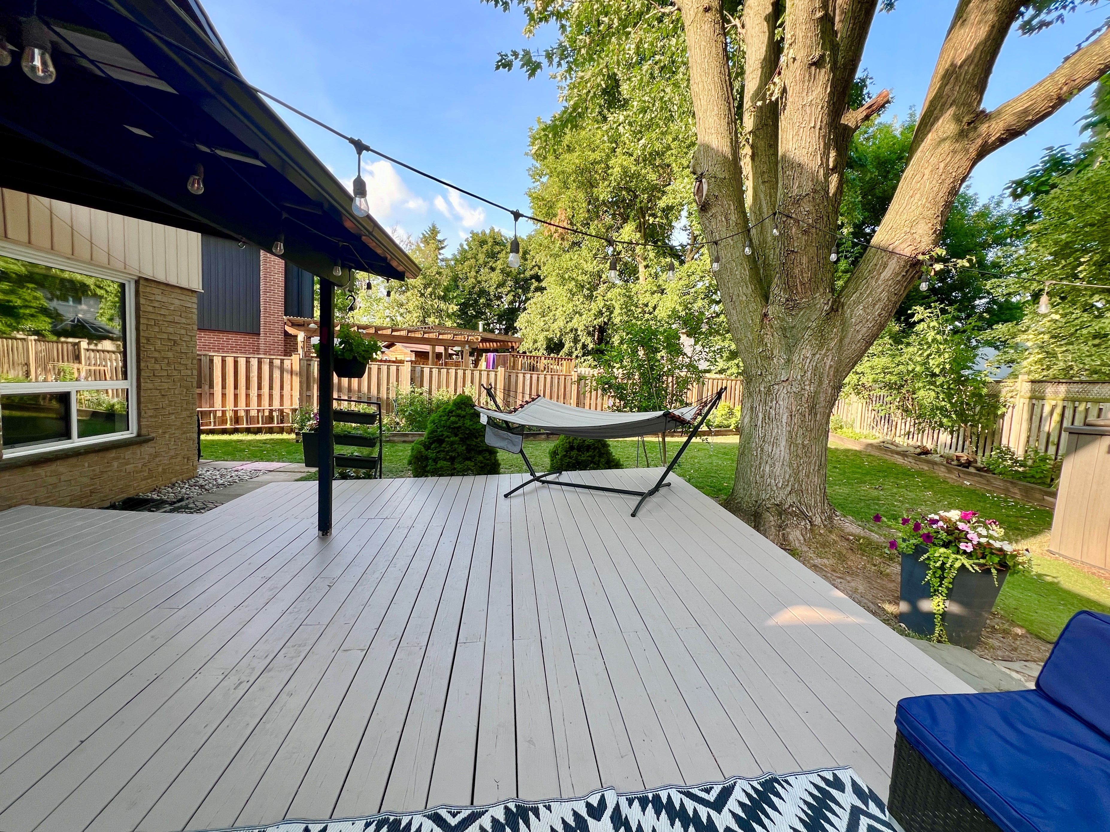 • Large backyard includes a deck and garden shed for outdoor enjoyment.