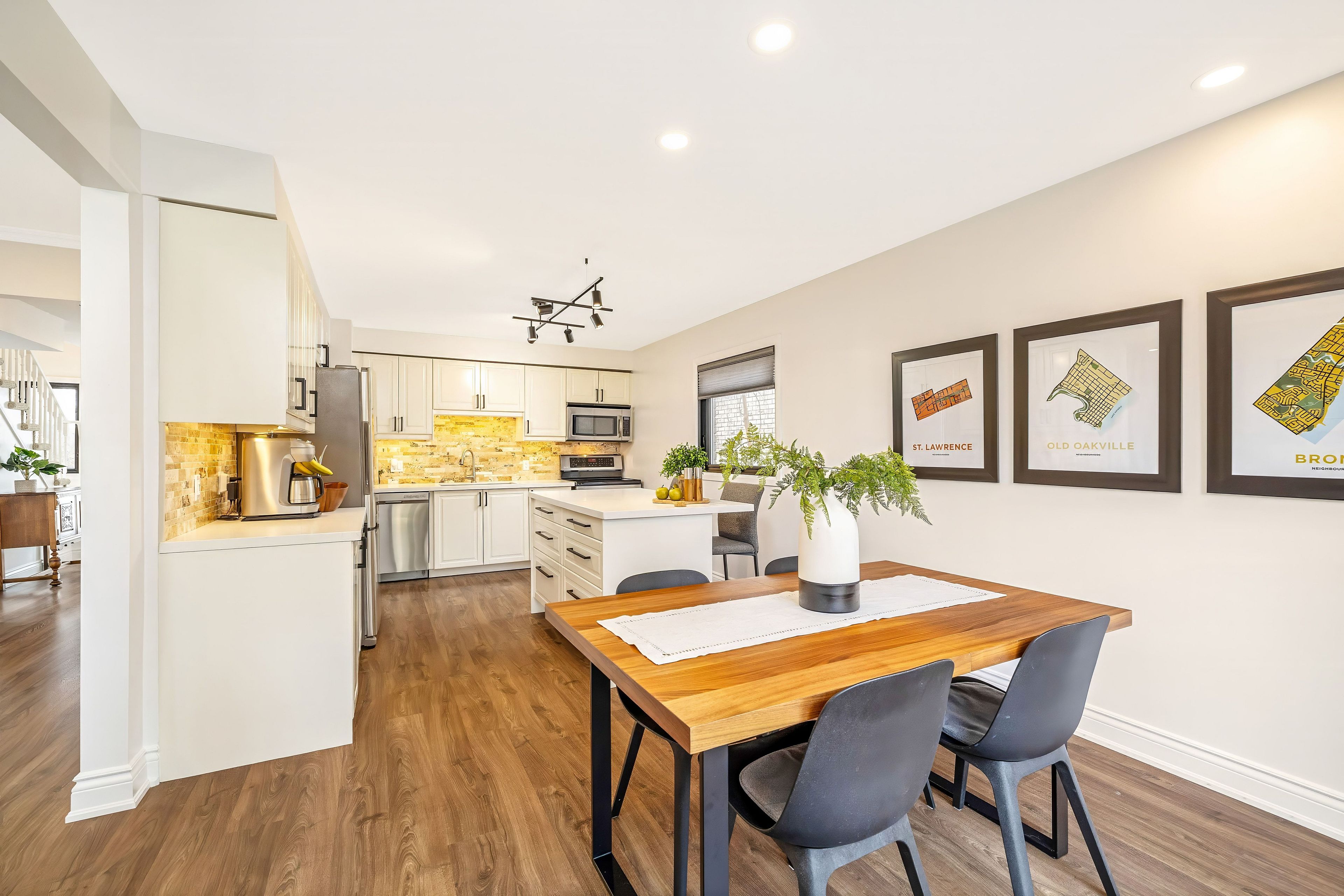 In a sought after pocket of oakville, this beautifully maintained family home backs directly onto bronte creek, offering a rare ravine setting with peaceful views and exceptional privacy. Set on a premium pie shaped lot with an impressive 47 ft rear width, this home blends nature, comfort, and thoughtful upgrades in one inviting package. Enjoy direct access to a fantastic trail system right from your backyard, perfect for walking and cycling, while being just minutes to bronte harbour, known for its waterfront charm and great local restaurants. The updated kitchen is both stylish and functional, featuring quartz countertops, custom cabinetry, a centre island, stainless steel appliances, a stone backsplash, and double sink. It opens seamlessly into the bright family room, where hardwood flooring, pot lights, crown moulding, and a cozy wood burning fireplace create a warm and inviting space, all overlooking the landscaped backyard. The main level also offers a spacious breakfast area with hardwood flooring and an updated powder room, ideal for both everyday living and entertaining. Upstairs, the primary bedroom features a walk in closet and a 3 piece ensuite, along with peaceful views of the fully fenced yard and surrounding greenery. Two additional bedrooms plus a versatile fourth bedroom provide flexible space for a home office, nursery, or guest room. The fully refinished basement adds a bright and comfortable recreation room along with a dedicated laundry area, offering additional space for family living. Step outside to a beautifully landscaped backyard with perennial gardens, interlock patio, and gas barbecue hookup, perfect for entertaining or relaxing in a private natural setting. Freshly painted in 2023 with updates including furnace and ac (2022), windows and exterior doors including garage doors (2021), and professional landscaping from front to back. Close to bronte harbour, parks, shops, amenities, qew and go transit.