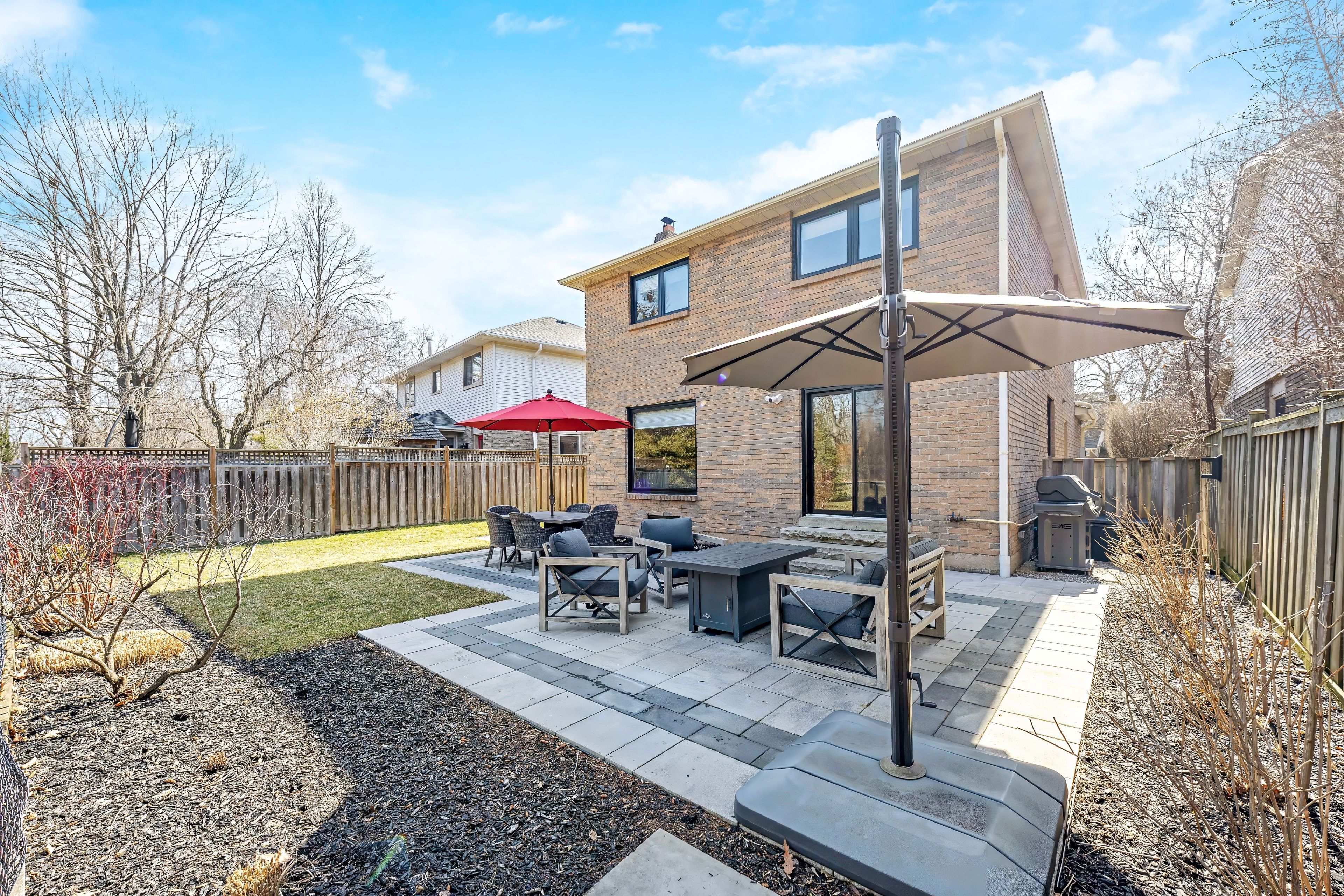 • Landscaped backyard with interlock patio, perfect for gatherings.