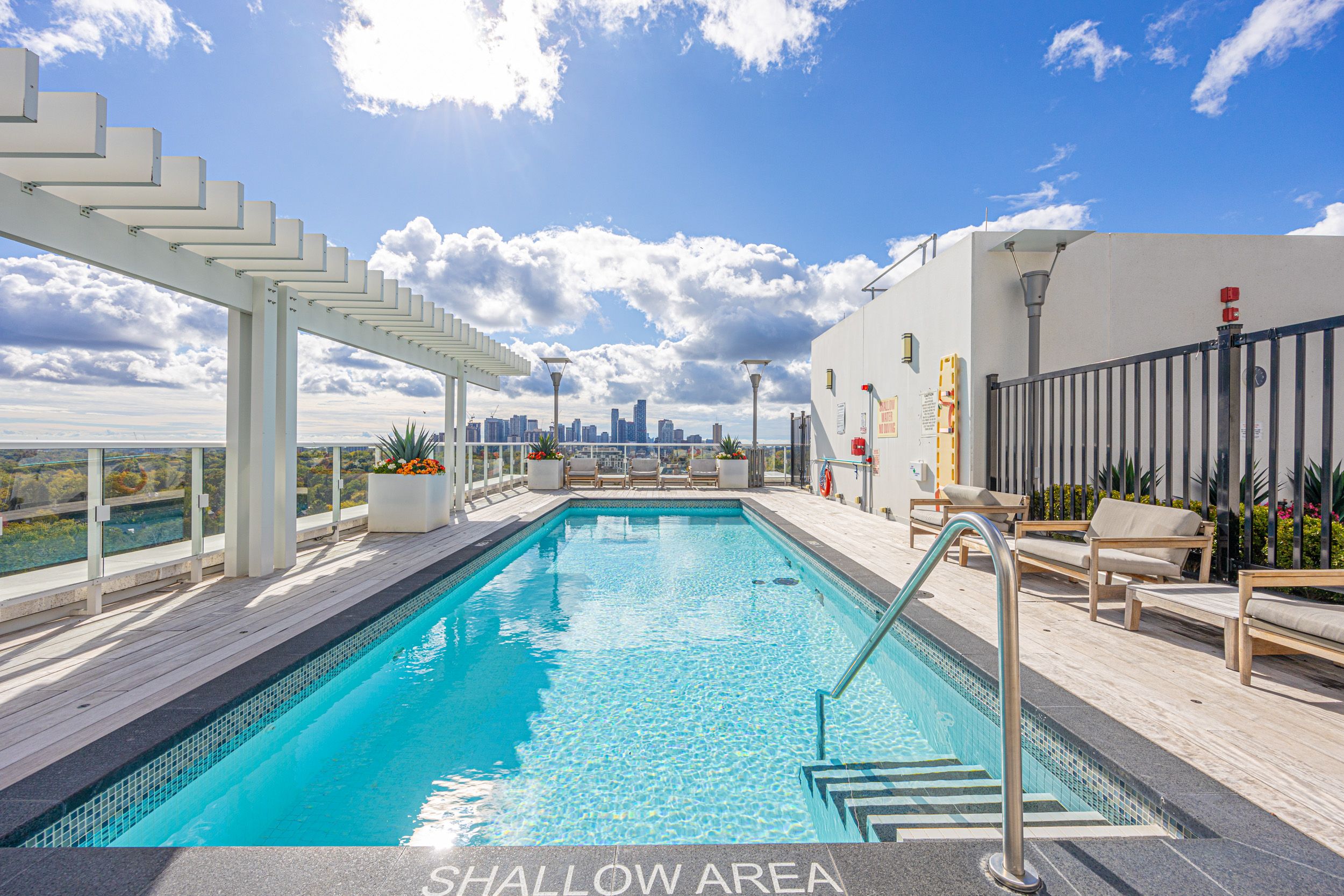 • Rooftop gym, pool, and hot tub enhance urban convenience and leisure.
