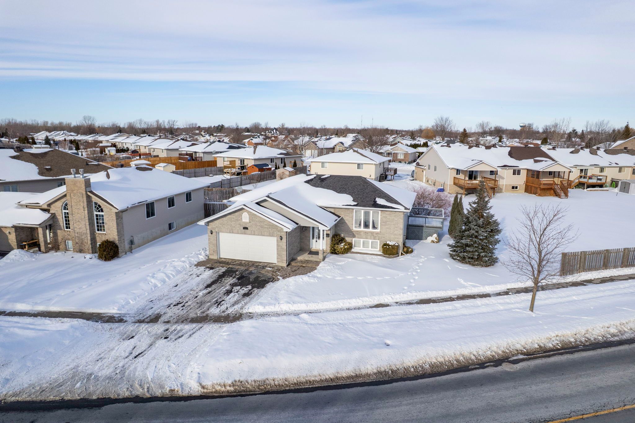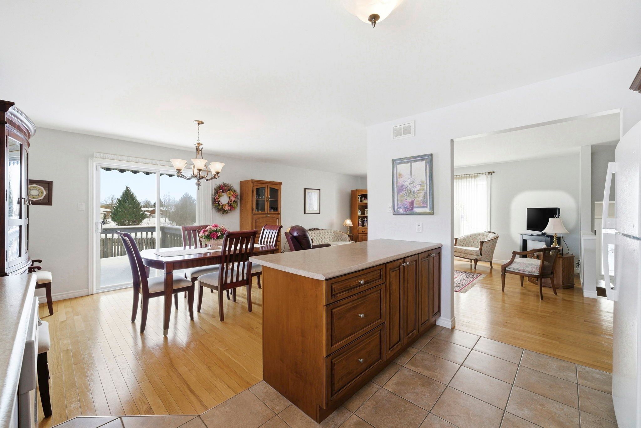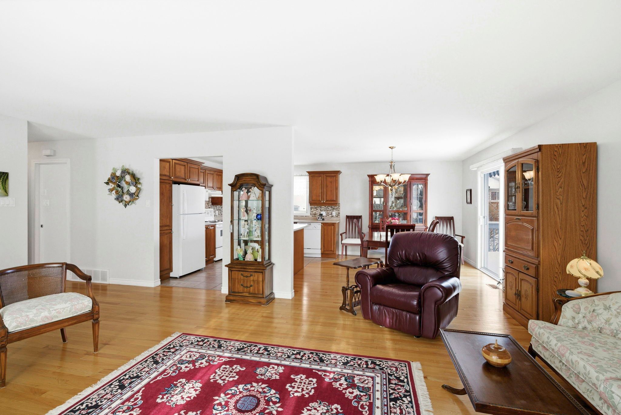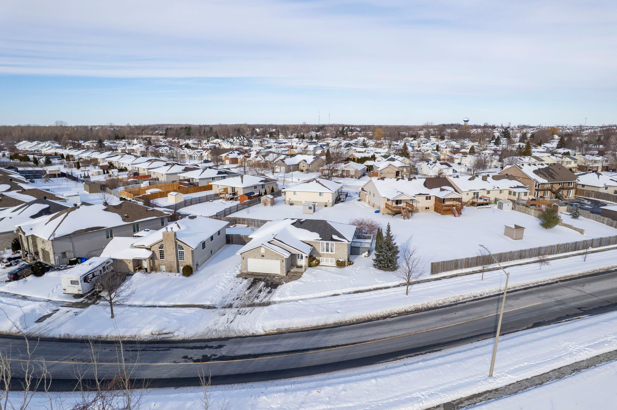 This meticulously maintained raised bungalow is truly move-in ready and reflects pride of ownership throughout. Bright and welcoming, the home offers just over 1,300 sq ft of well-designed living space and is nestled on a generously sized lot. The main floor features a beautiful kitchen with ample cabinetry and counter space, complete with appliances, and flows seamlessly into the open-concept dining and living areas--perfect for everyday living and entertaining. Hardwood floors extend through the living space, hallway, and into two well-sized bedrooms. A four-piece main bathroom offers both a tub and a separate shower for added comfort and convenience. Main floor laundry ensures everything you need is easily accessible on one level. The lower level is partially finished and provides excellent potential to customize to your needs, with a bathroom rough-in already in place and plenty of storage space. Additional highlights include a double car garage, natural gas heating, central air conditioning, alarm system, and a lovely deck with awning accessed from the dining room. Conveniently located close to shopping, schools, public transit, and other amenities. This home offers comfort, functionality, and an excellent location. Click on the multi-media link for virtual tour & floor plan.