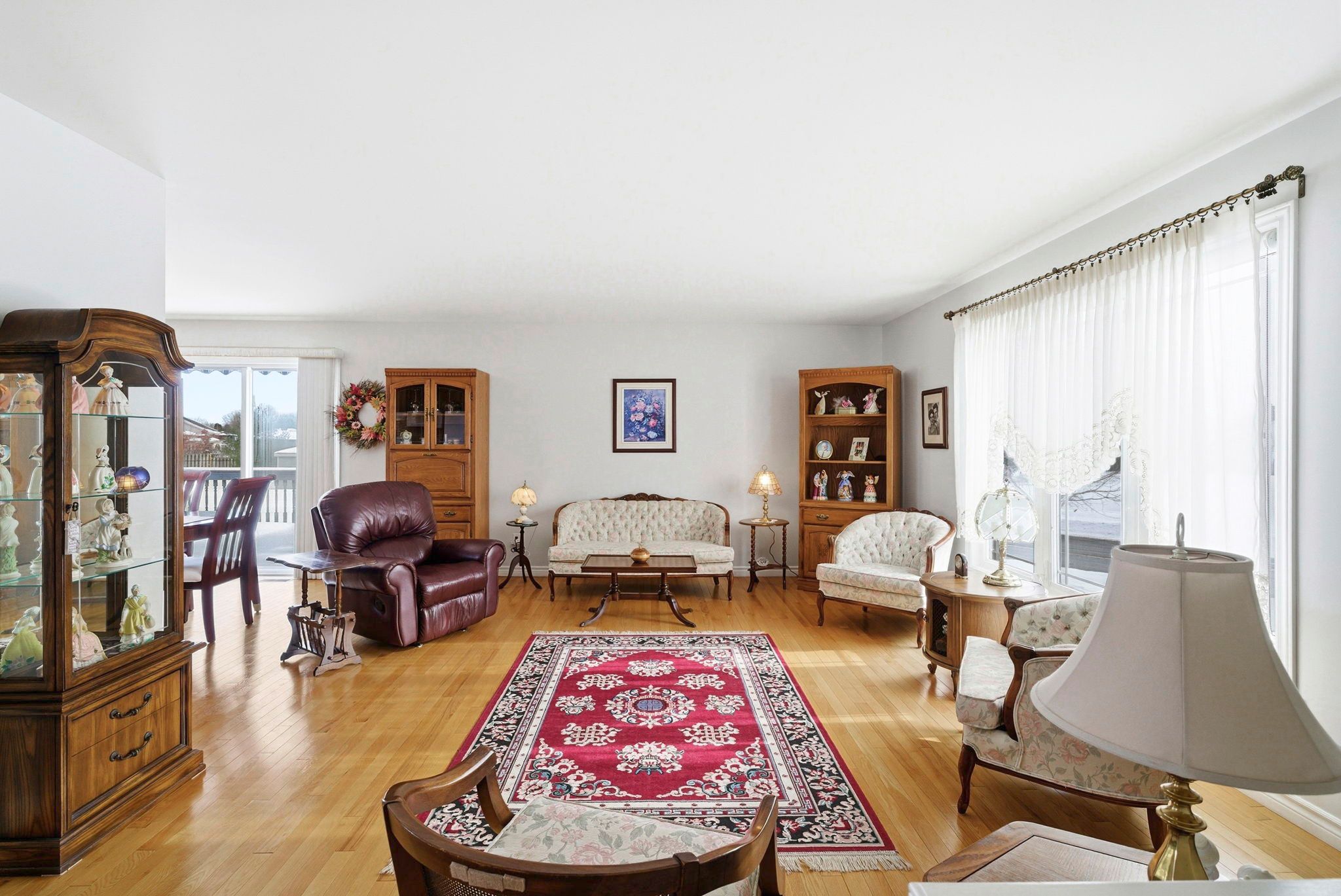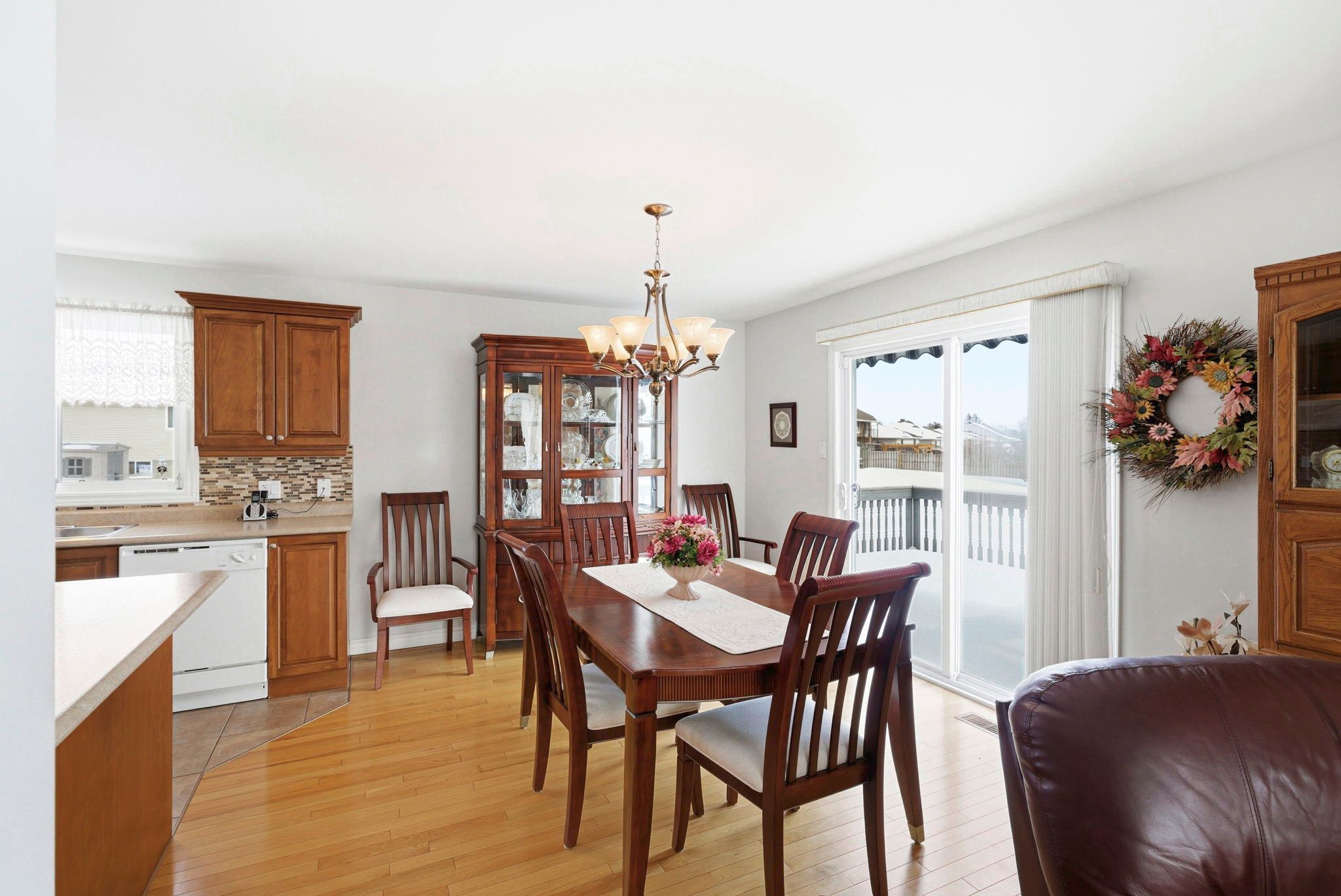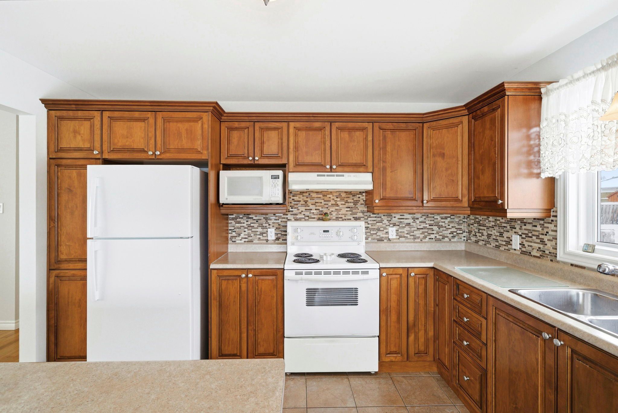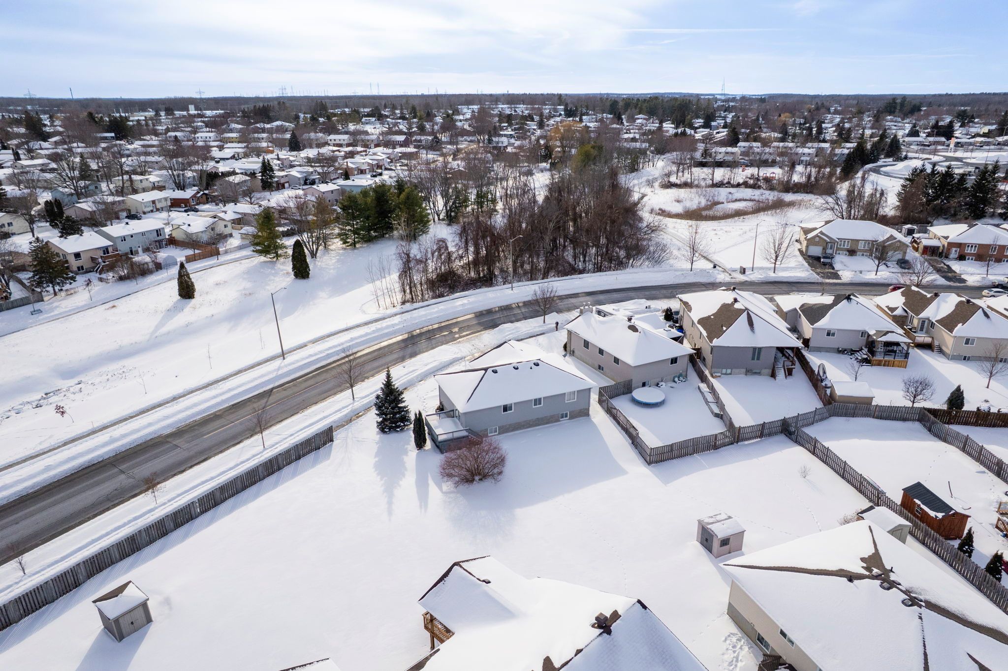 This meticulously maintained raised bungalow is truly move-in ready and reflects pride of ownership throughout. Bright and welcoming, the home offers just over 1,300 sq ft of well-designed living space and is nestled on a generously sized lot. The main floor features a beautiful kitchen with ample cabinetry and counter space, complete with appliances, and flows seamlessly into the open-concept dining and living areas--perfect for everyday living and entertaining. Hardwood floors extend through the living space, hallway, and into two well-sized bedrooms. A four-piece main bathroom offers both a tub and a separate shower for added comfort and convenience. Main floor laundry ensures everything you need is easily accessible on one level. The lower level is partially finished and provides excellent potential to customize to your needs, with a bathroom rough-in already in place and plenty of storage space. Additional highlights include a double car garage, natural gas heating, central air conditioning, alarm system, and a lovely deck with awning accessed from the dining room. Conveniently located close to shopping, schools, public transit, and other amenities. This home offers comfort, functionality, and an excellent location. Click on the multi-media link for virtual tour & floor plan.
