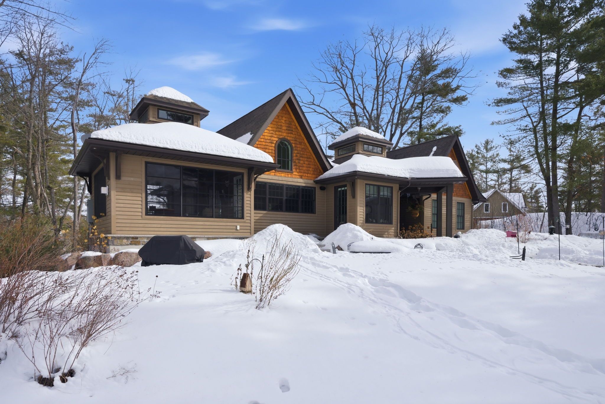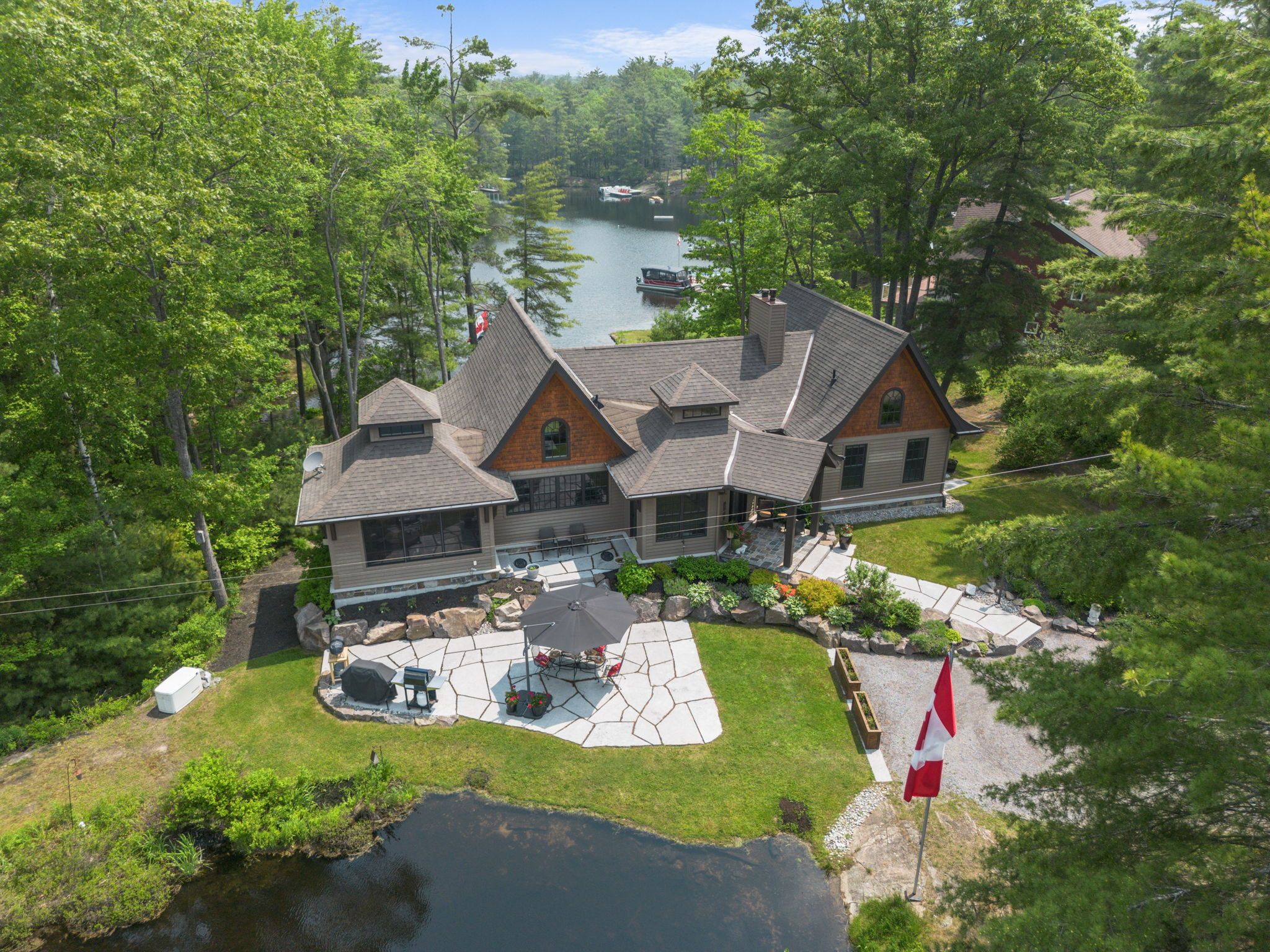 Escape to your own 21. 25-acre sanctuary on the shimmering shores of lake kasshabog, where untouched wilderness seamlessly meets luxurious waterfront living. This stunning custom home, built in 2014, offers the ultimate private retreat with 238 feet of direct lake access, beautifully adjoining acres of pristine crown land. Outdoor enthusiasts will love the close and easy access to snowmobile and atv trails, as well as the private walking trails right on the property. Unwind by your own private pond, which is the perfect spot for enjoying nature and gorgeous sunsets. As an added financial benefit, the property is part of a managed forest plan, making a direct impact on lower taxes. Offering the perfect space for entertaining and family gatherings, this 3-bedroom, 3-bathroom raised bungalow features quality finishes inside and out. You are welcomed by a beautiful stone entry and gorgeous landscaping, including a lakeside stone patio and a bright, modern kitchen made for gathering. Luxurious extras include a generac generator for peace of mind, a propane line for your bbq, built-in speakers throughout, and cozy floor heating. Retreat to the primary suite, which boasts an ensuite with electric floor heating and a massive 300-square-foot storage loft directly above it. The property also features a 768 sq. Ft. Detached double garage complete with its own woodstove. Renowned for being primarily spring-fed with exceptional water clarity, lake kasshabog is famous for phenomenal muskie, bass, and perch fishing. Enjoy the ultimate private getaway that remains incredibly accessible-just 35 minutes to the village of lakefield and only 2 hours to toronto.