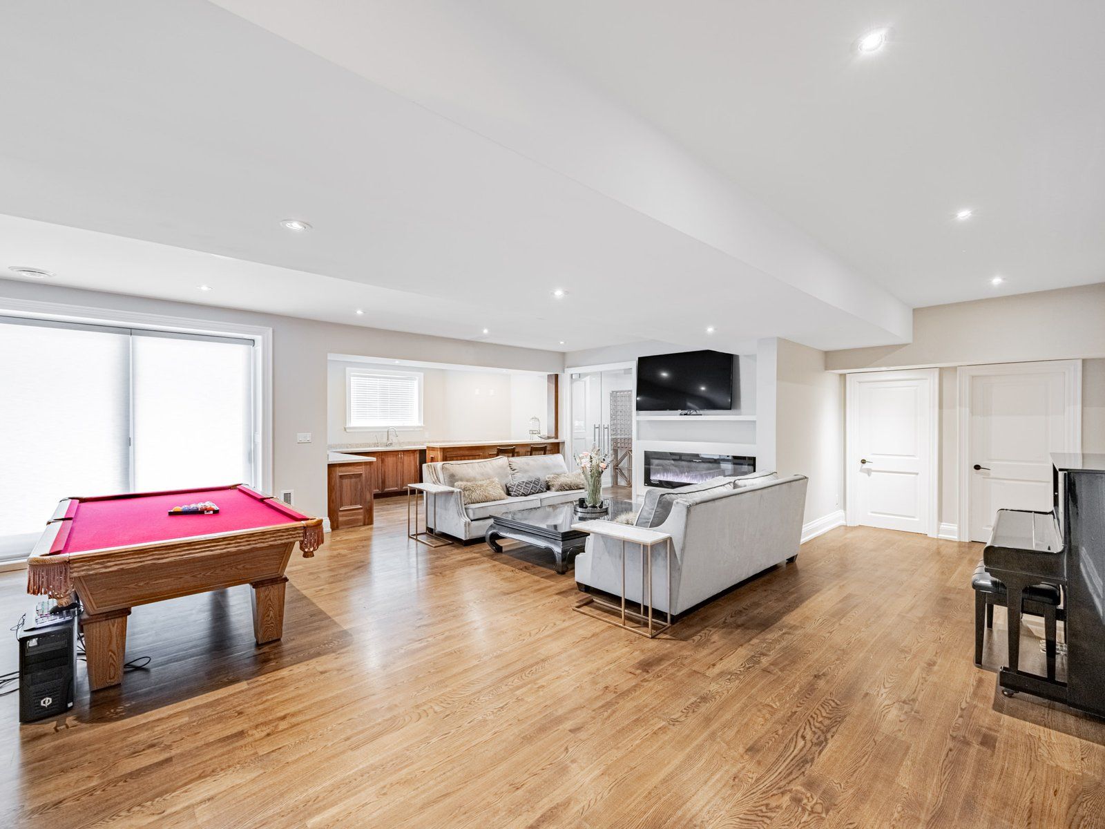 • Lower level features potential extra bedrooms, screening room, and gym.