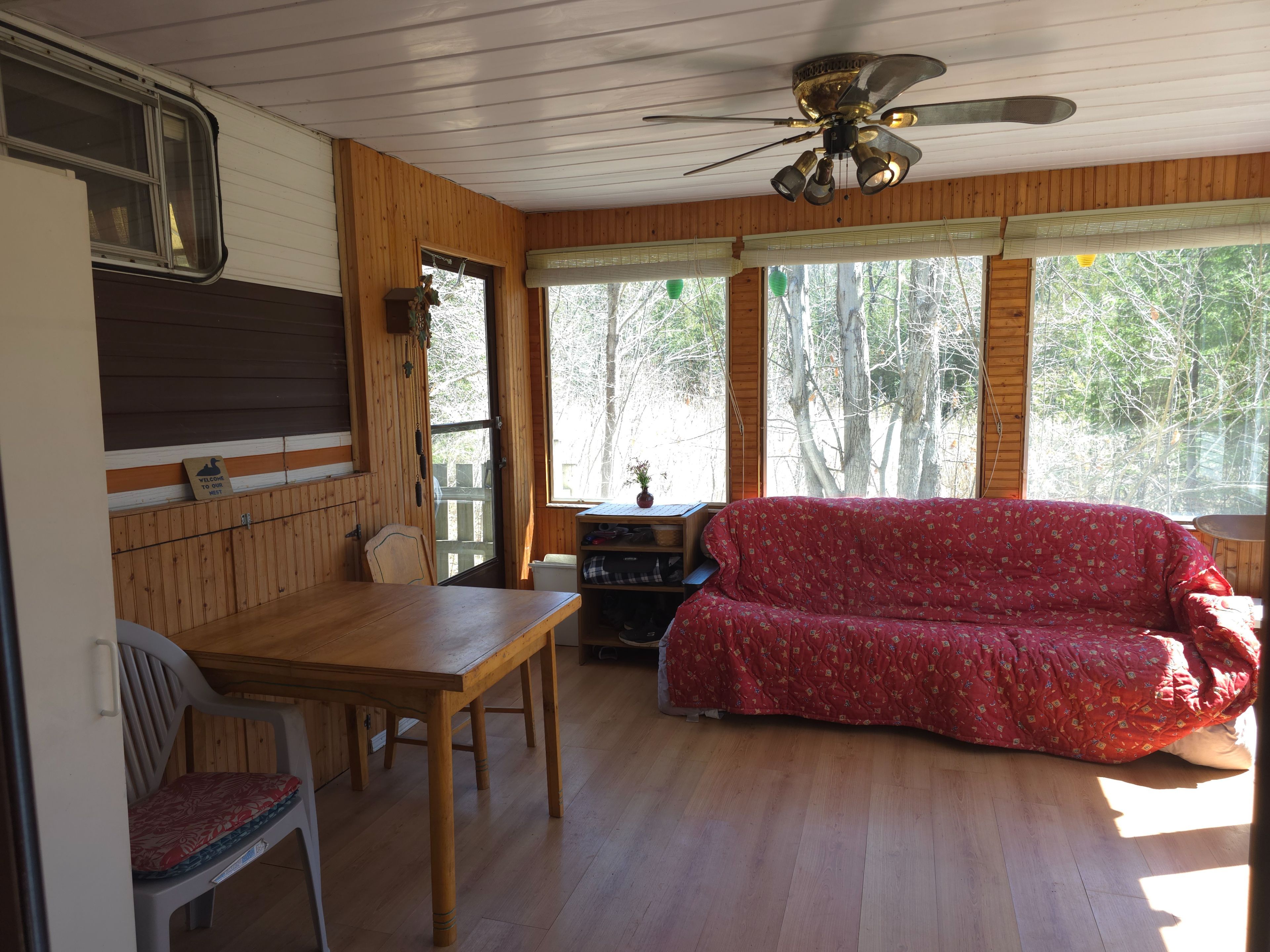 Relish the experience of cottage living at a reduced price! This 32 ft mobile home, which includes three extensions for enhanced living areas, is set on a very private, larger lot, ensuring the highest level of privacy within the loon lake family resort community. Inside, you will find a furnished 2-bedroom configuration along with two living room spaces that are ideal for relaxation and taking a break from the daily routine. Moreover, you can enjoy a secluded view of the woods instead of facing neighboring homes, allowing you to savor your barbecue meals in peace! Additionally, there is a large shed connected to hydro for storing your outdoor toys and a sufficiently spacious workshop. Exceptional amenities for three-season living include multiple playgrounds for children, a new inground swimming pool, a community center for events like dances, a beach volleyball court, a canteen at your own community beach on the crystal-clear sandy waters, a baseball field, and a private dog park. Bring your clothing, kayak, and paddle boat. Create new memories and own a piece of this remarkable paradise, whether it be fishing, swimming, kayaking, or being part of the community, or simply relaxing with a book at loon lake resort. Enjoy being part ownership of this wonderful corporation and being able to have a say. Potential purchaser must complete cpic. *note* full lot fees have been paid for 2026.